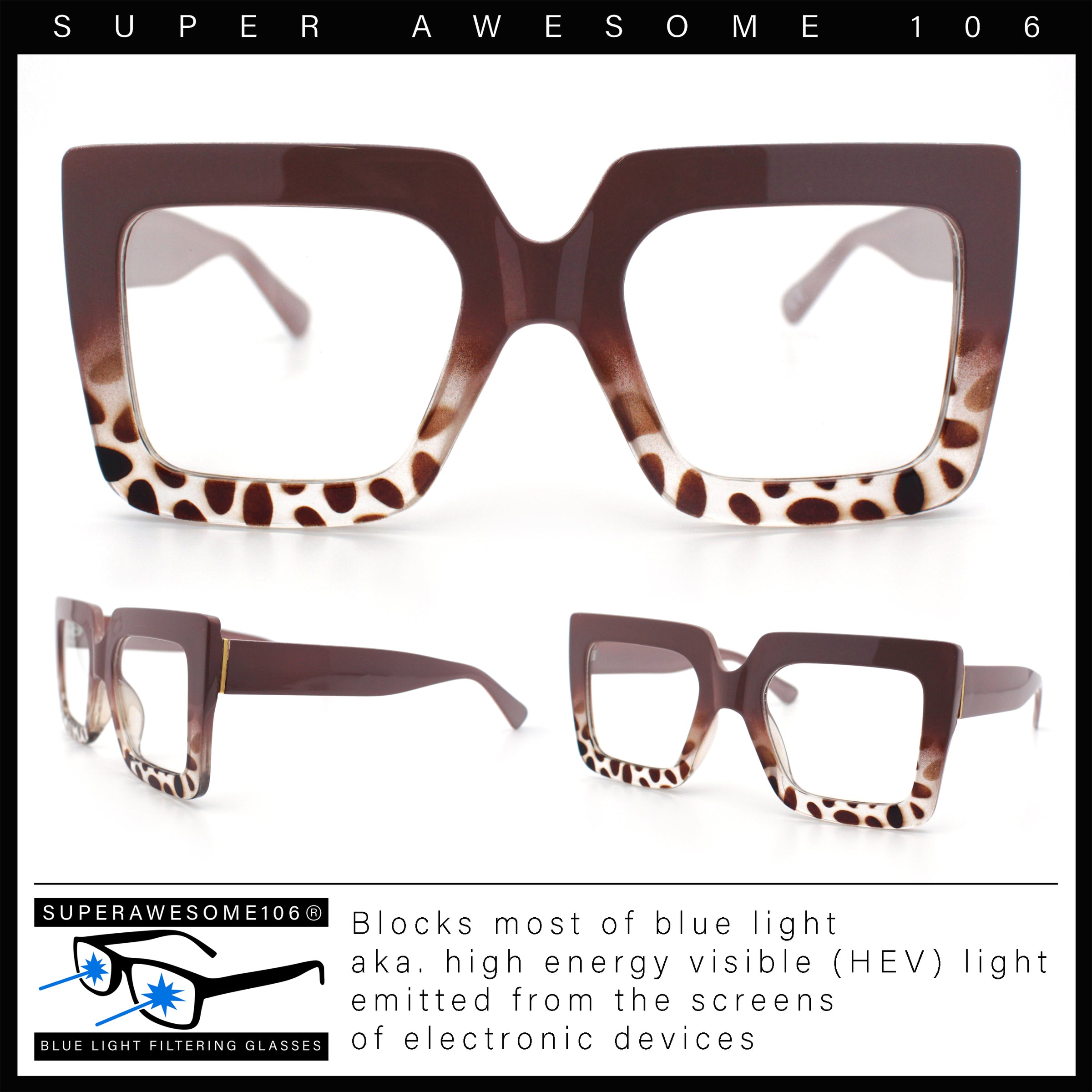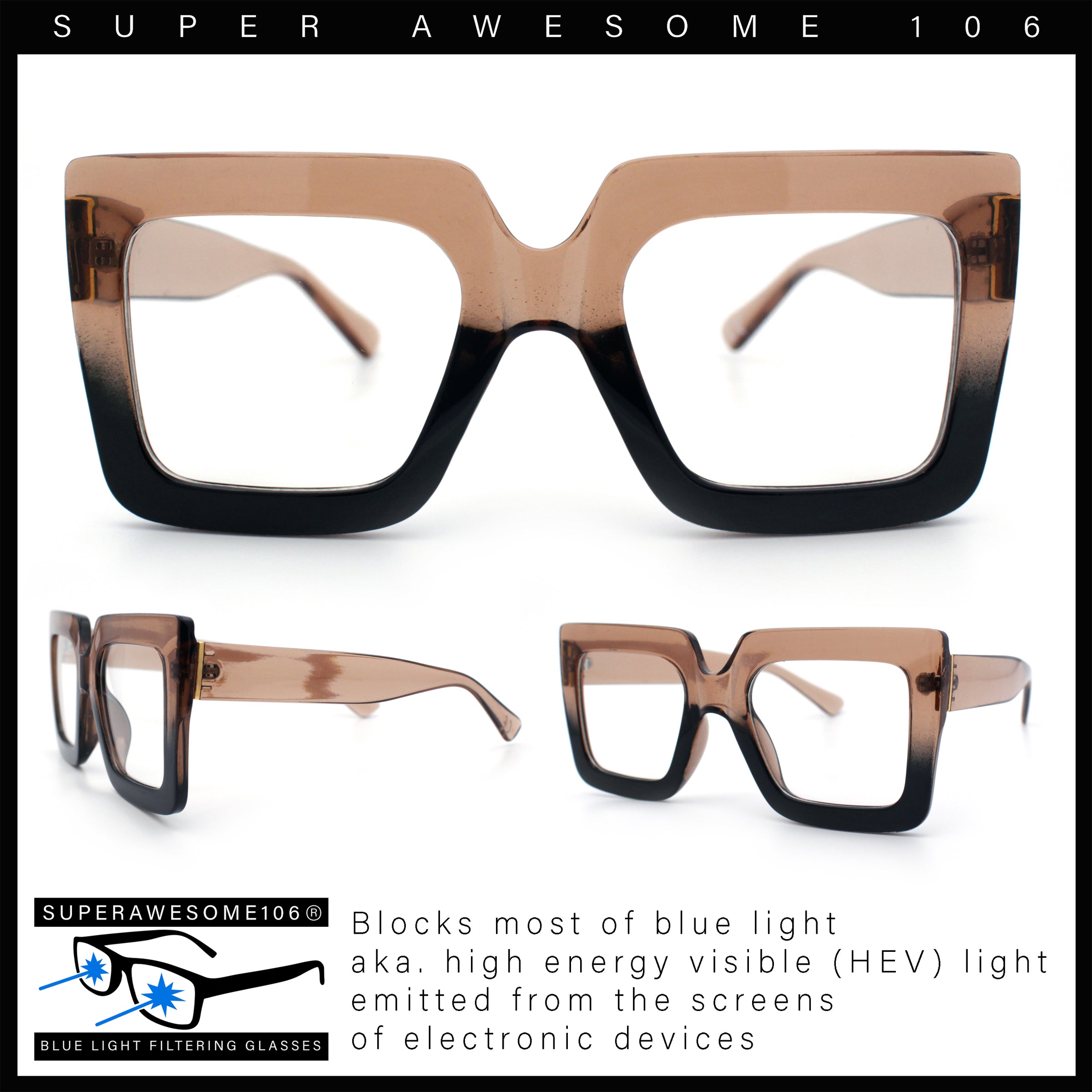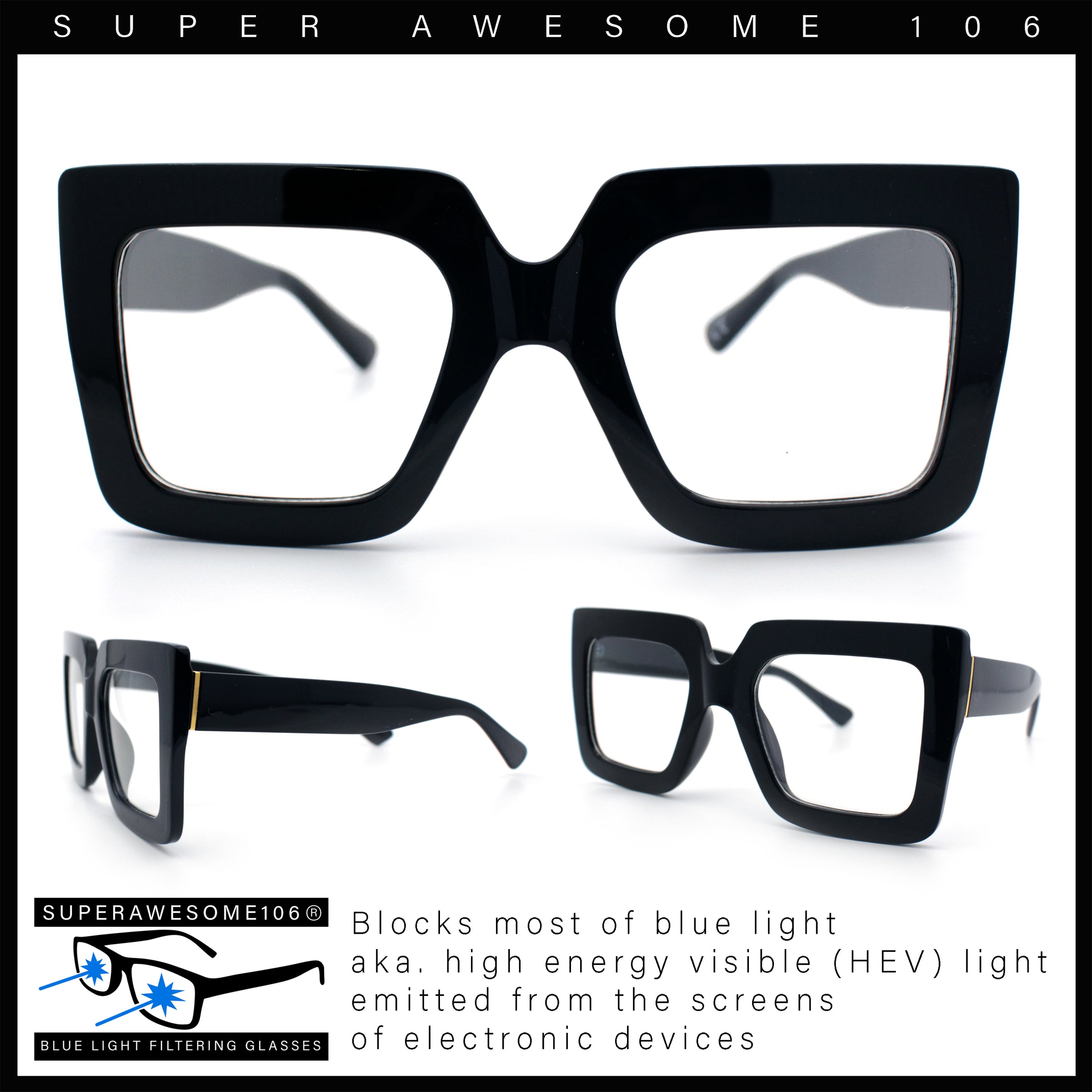 Maintain your style without sacrificing performance. These iconic, bold, mod-fashion glasses feature thick, rectangle plastic frames and clear, blue light filtering lenses, making them the perfect complement to any everyday office-chic ensemble. Their trendy, generous sizing provides excellent coverage and versatility. Constructed with a durable plastic-based frame, metal hinges, and ultra blue-violet ray filtering polycarbonate lenses, these glasses protect your eyes from the harmful effects of screen-emitted blue light while ensuring you look great. (d278)