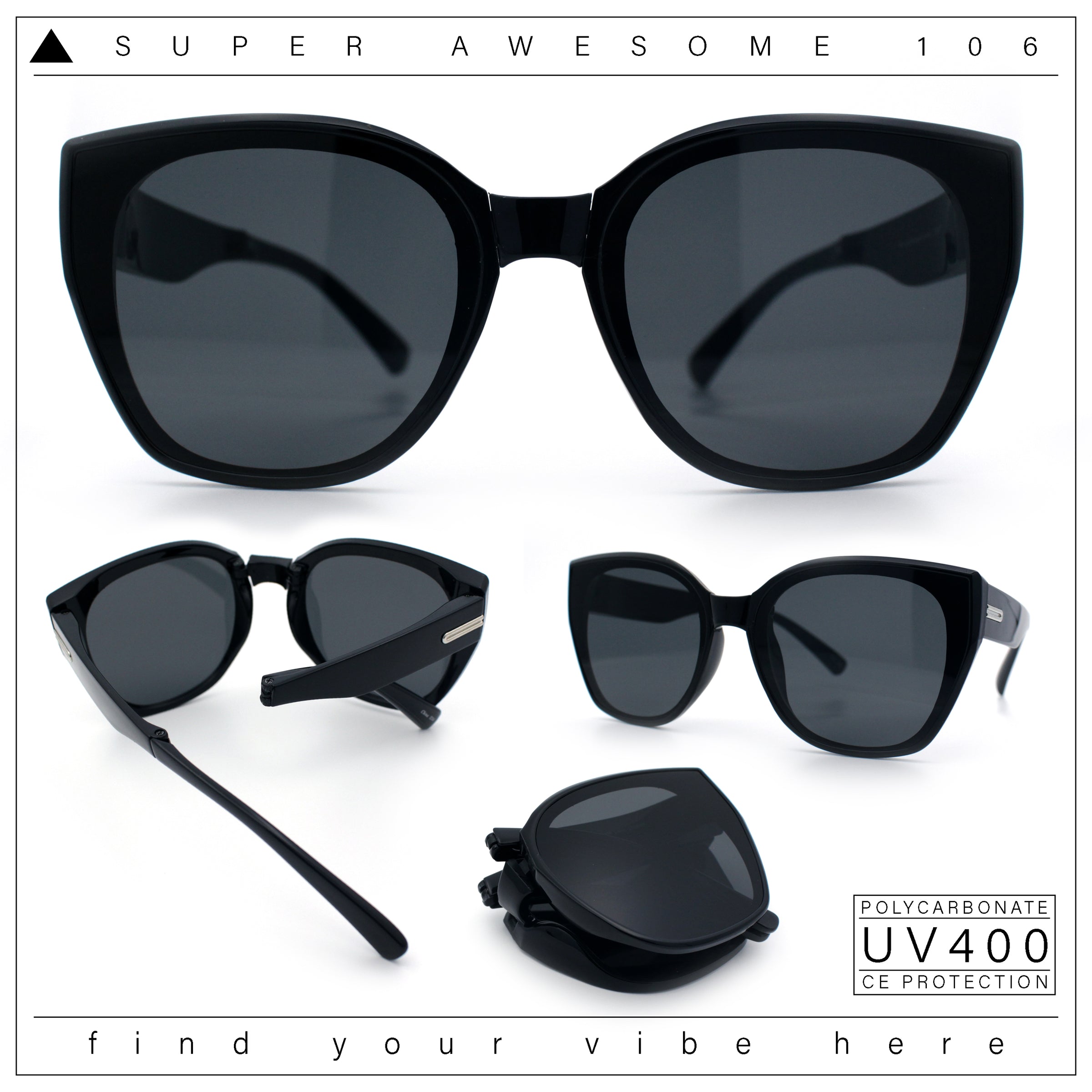 Womens Collapsible Folding Oversized Cat Eye Plastic Sunglasses