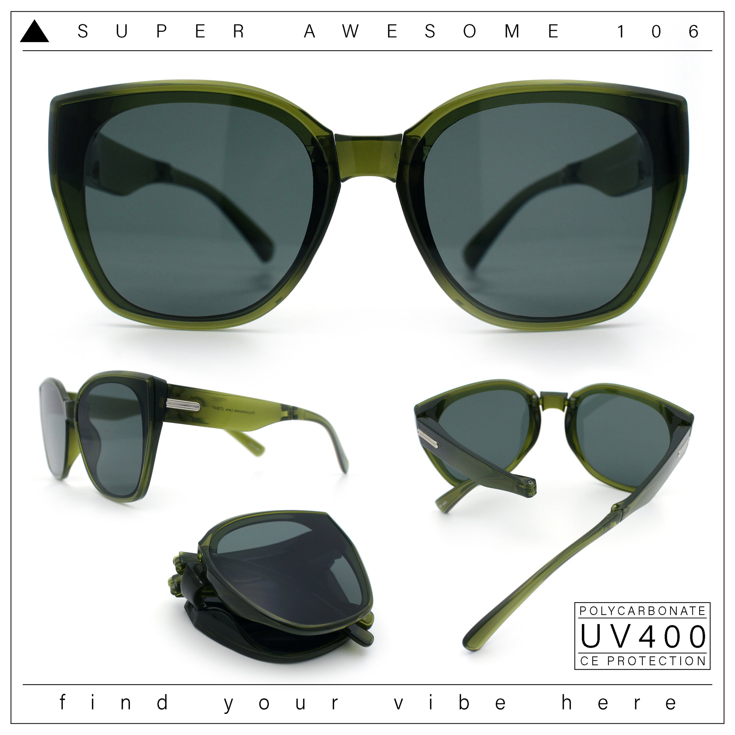 Another vintage vibe gem. Classic large squared plastic oversized cat eye sunglasses with a twist. Uniquely portable, easy to carry, tri fold collapsible sunglasses. These are light weight, made with a premium composite plastic frame, and UV400 polycarbonate lenses. (d224)
