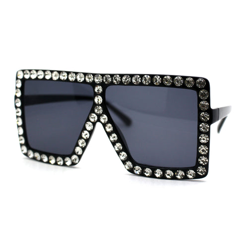 Womens Geometric Square Bevel Rectangle Rhinestone Jewel Plastic Sunglasses