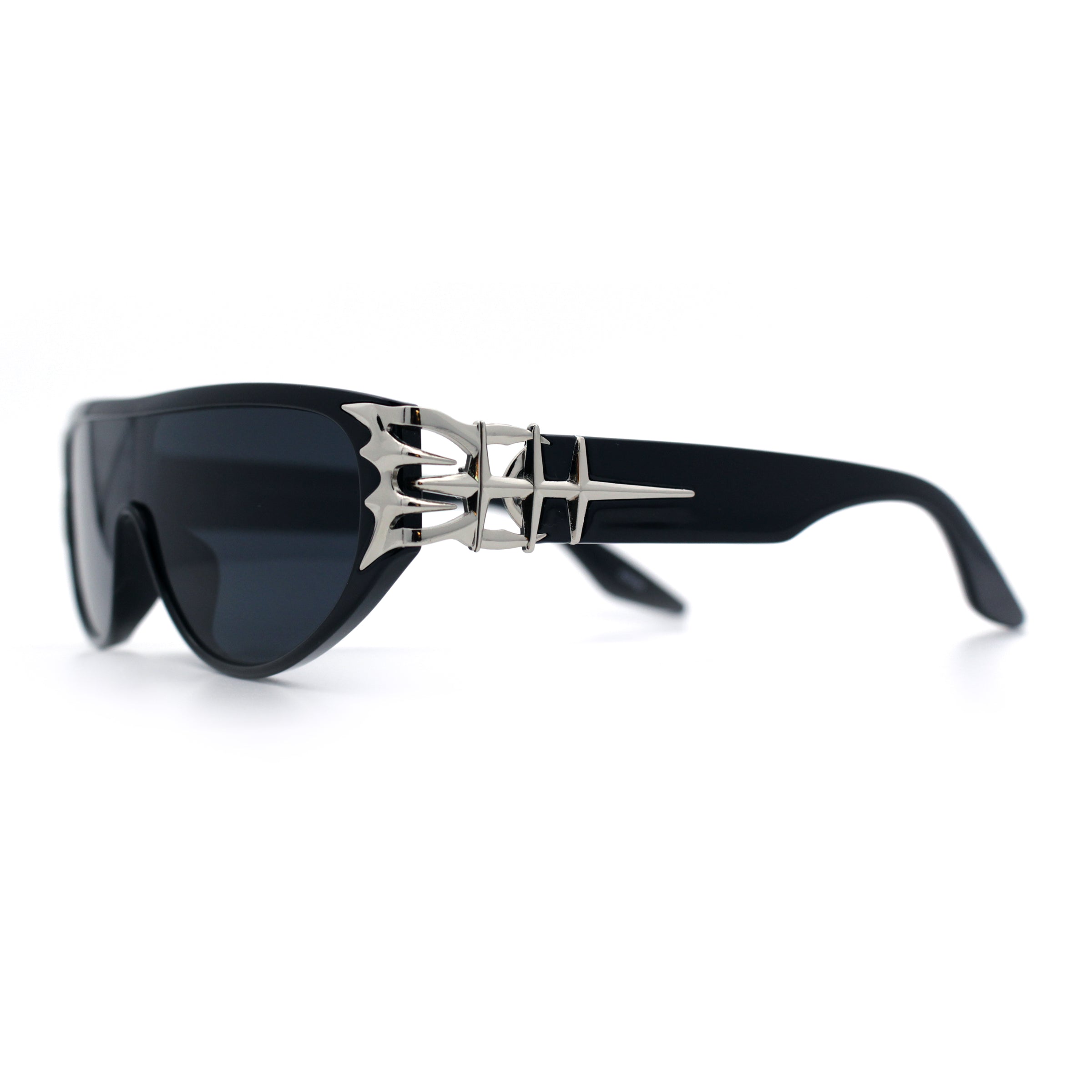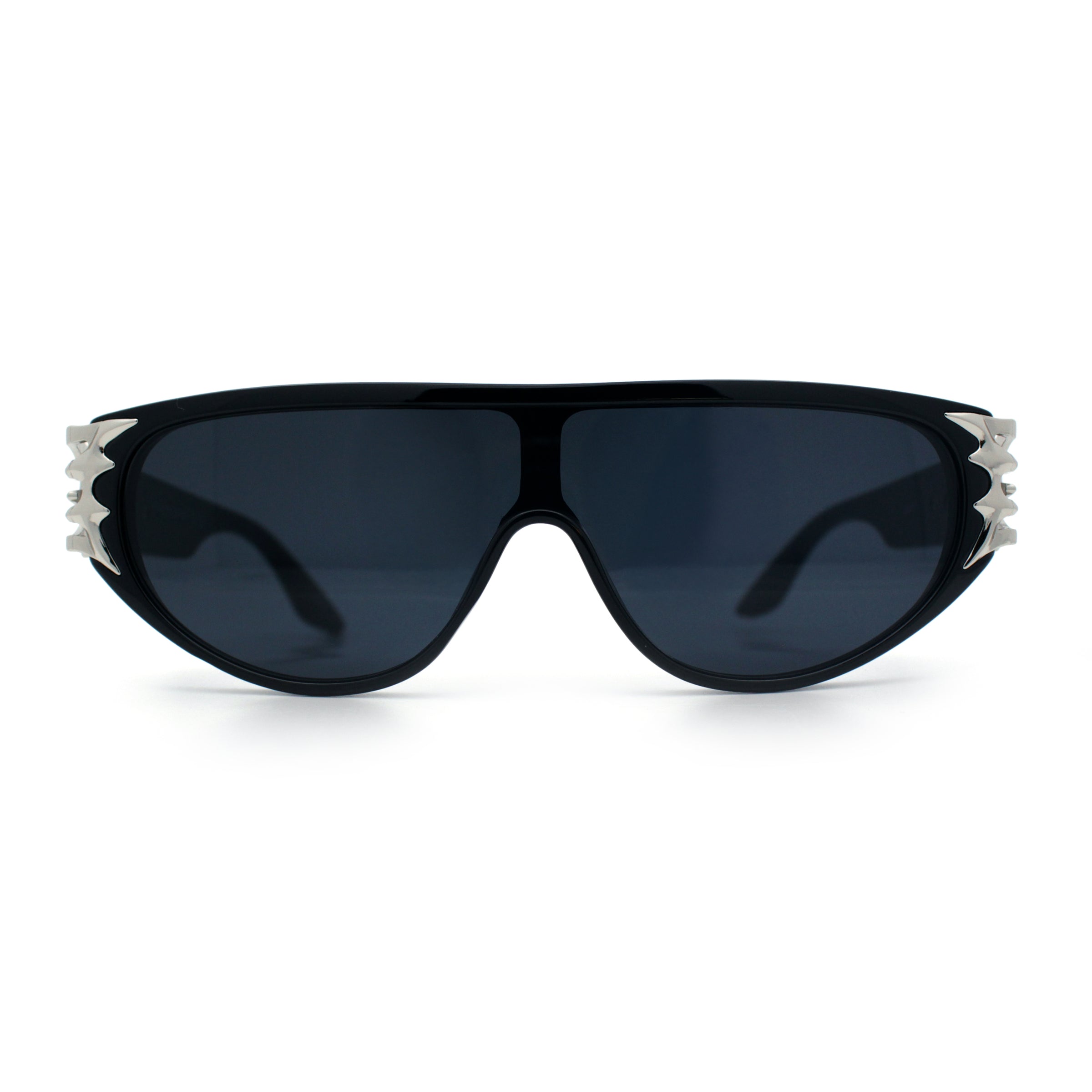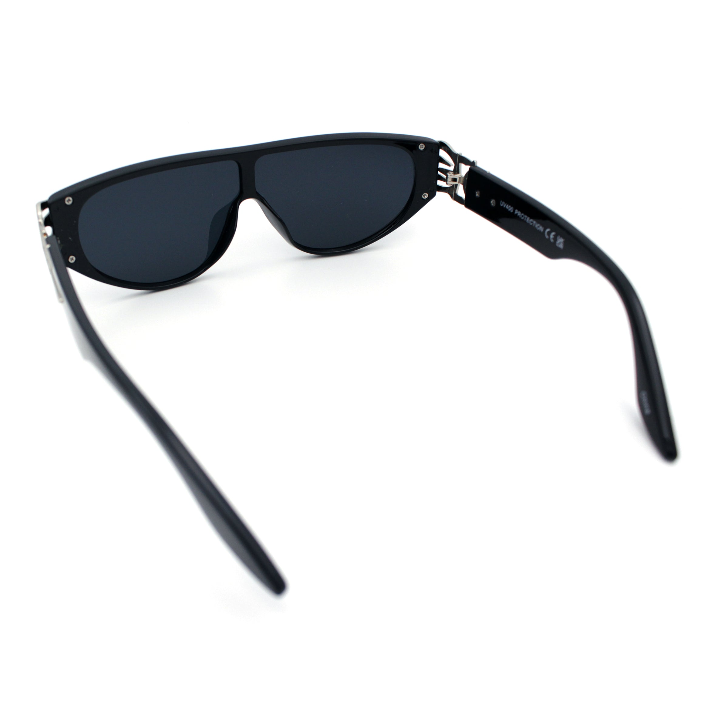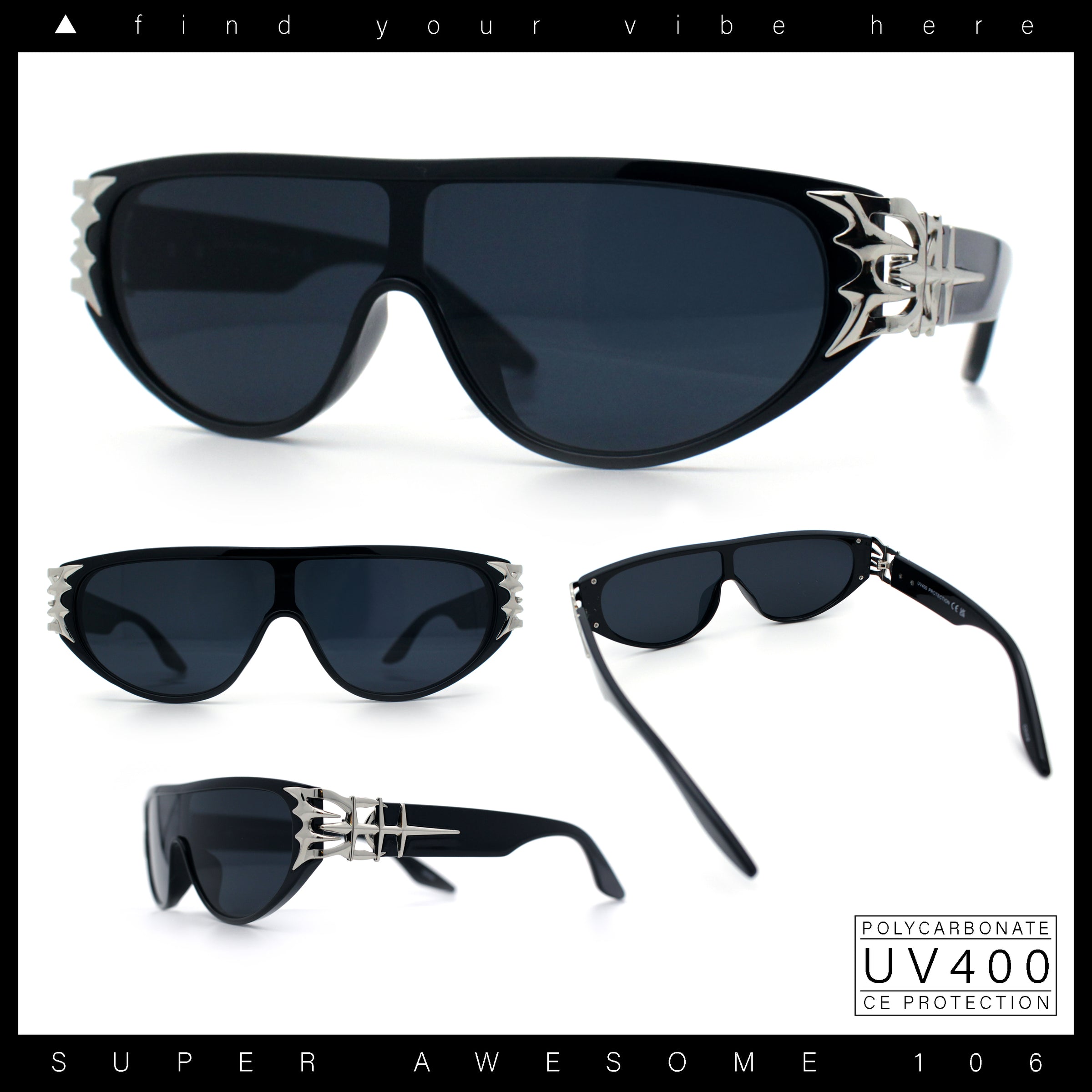 Super hard diva vibe fancy plastic frame rectangular shield sunglasses for urban fashionista! These bold gaudy elaborate bling hinges will settle nicely with trendy urban goth fashion. Made with 100% UV400 polycarbonate lenses fitted in a plastic frame. (d273)