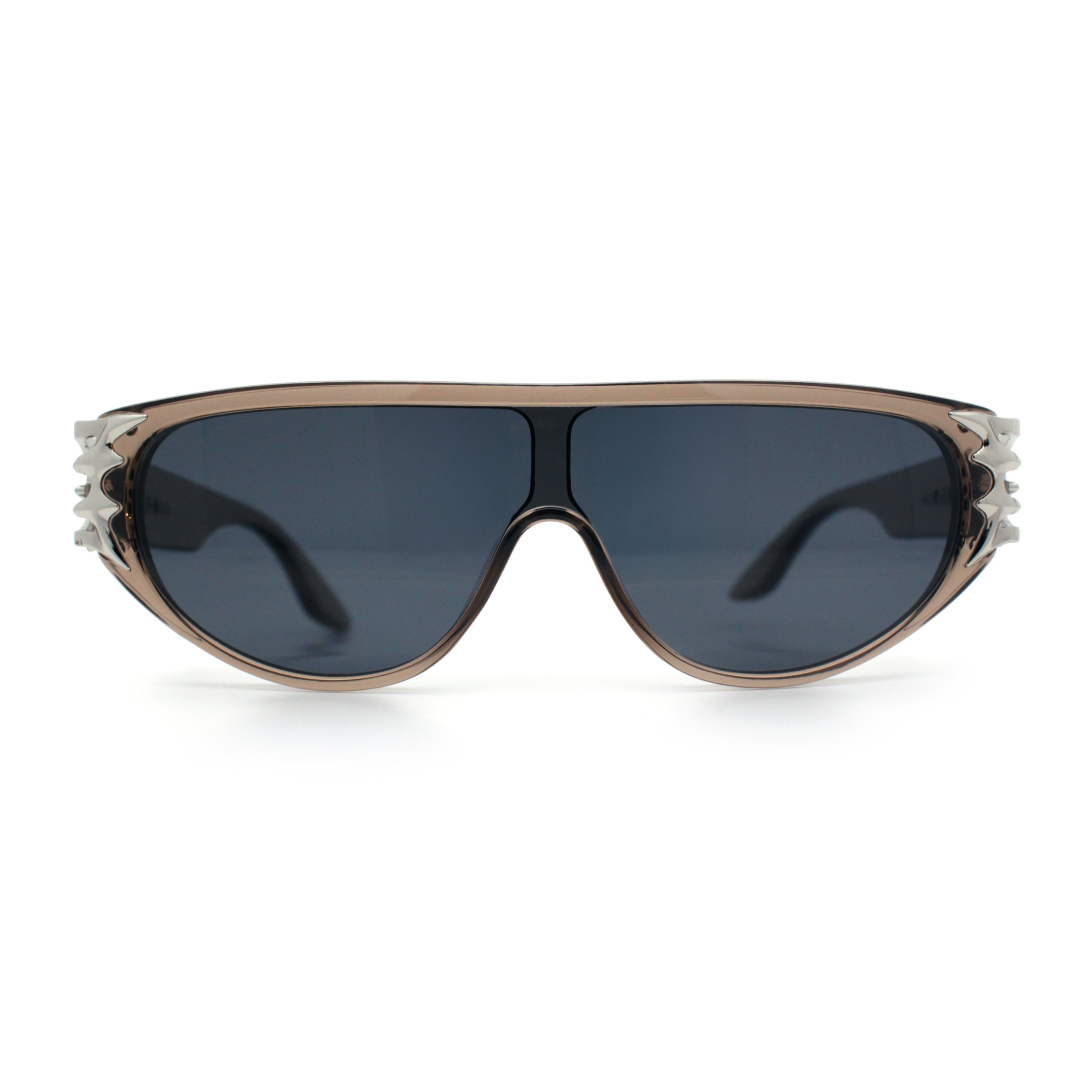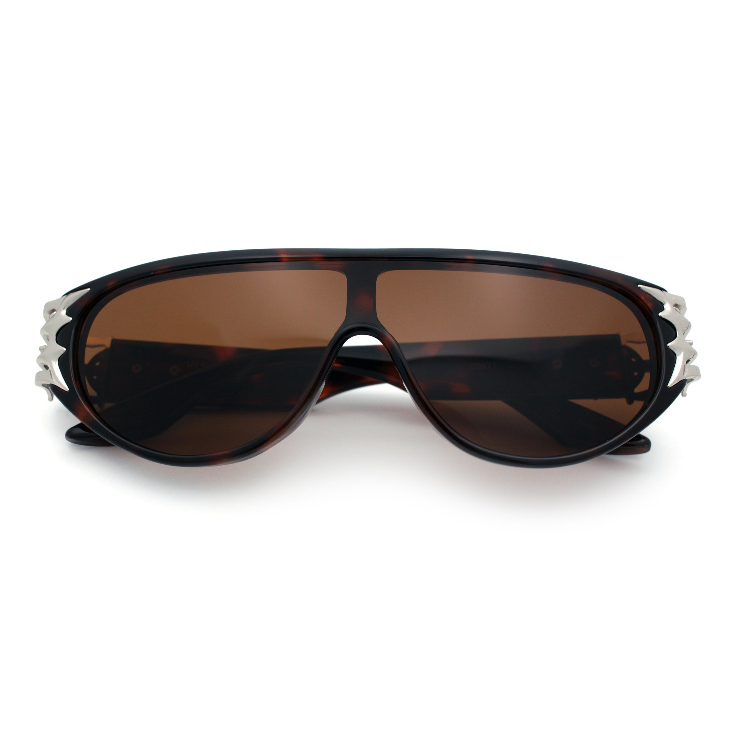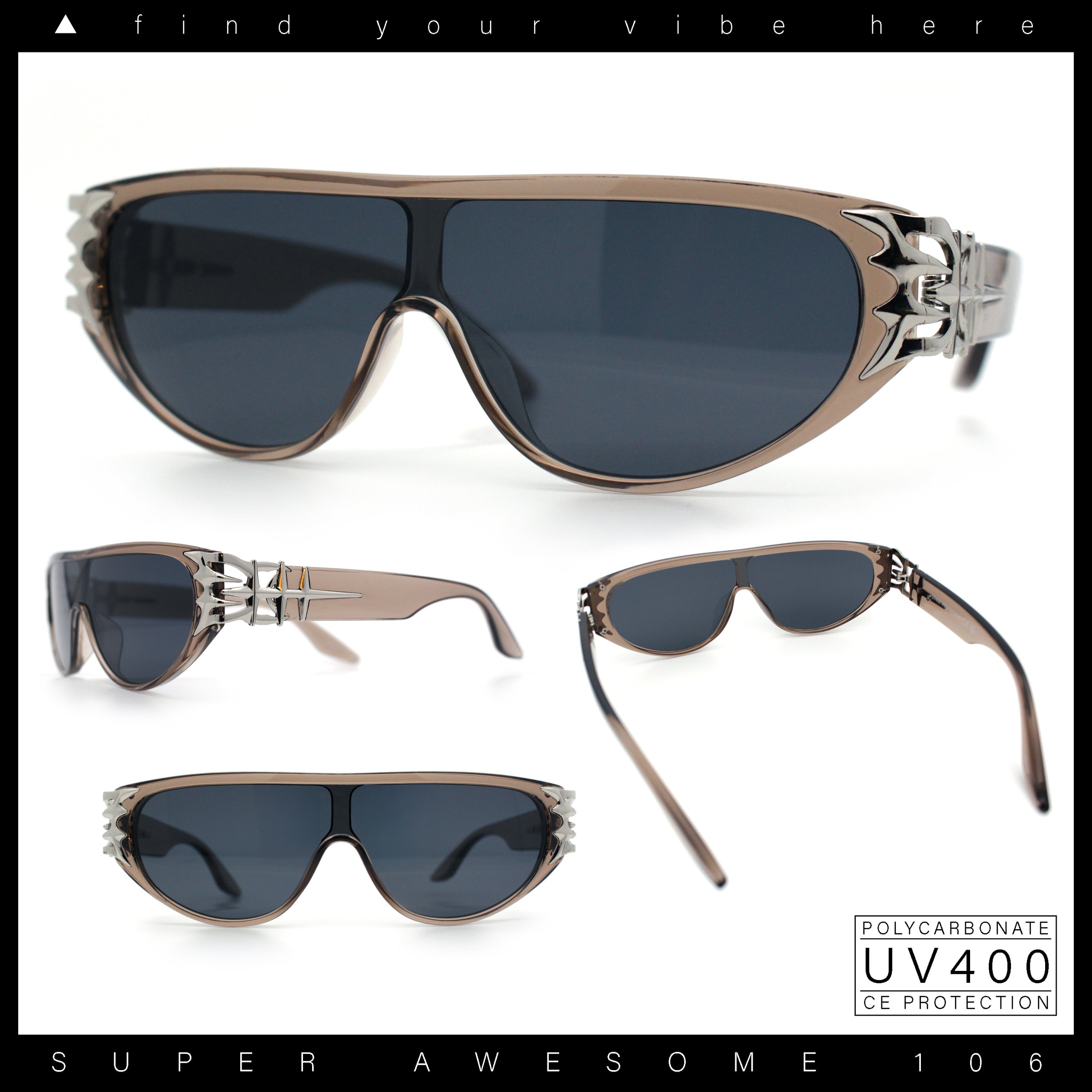 Super hard diva vibe fancy plastic frame rectangular shield sunglasses for urban fashionista! These bold gaudy elaborate bling hinges will settle nicely with trendy urban goth fashion. Made with 100% UV400 polycarbonate lenses fitted in a plastic frame. (d273)