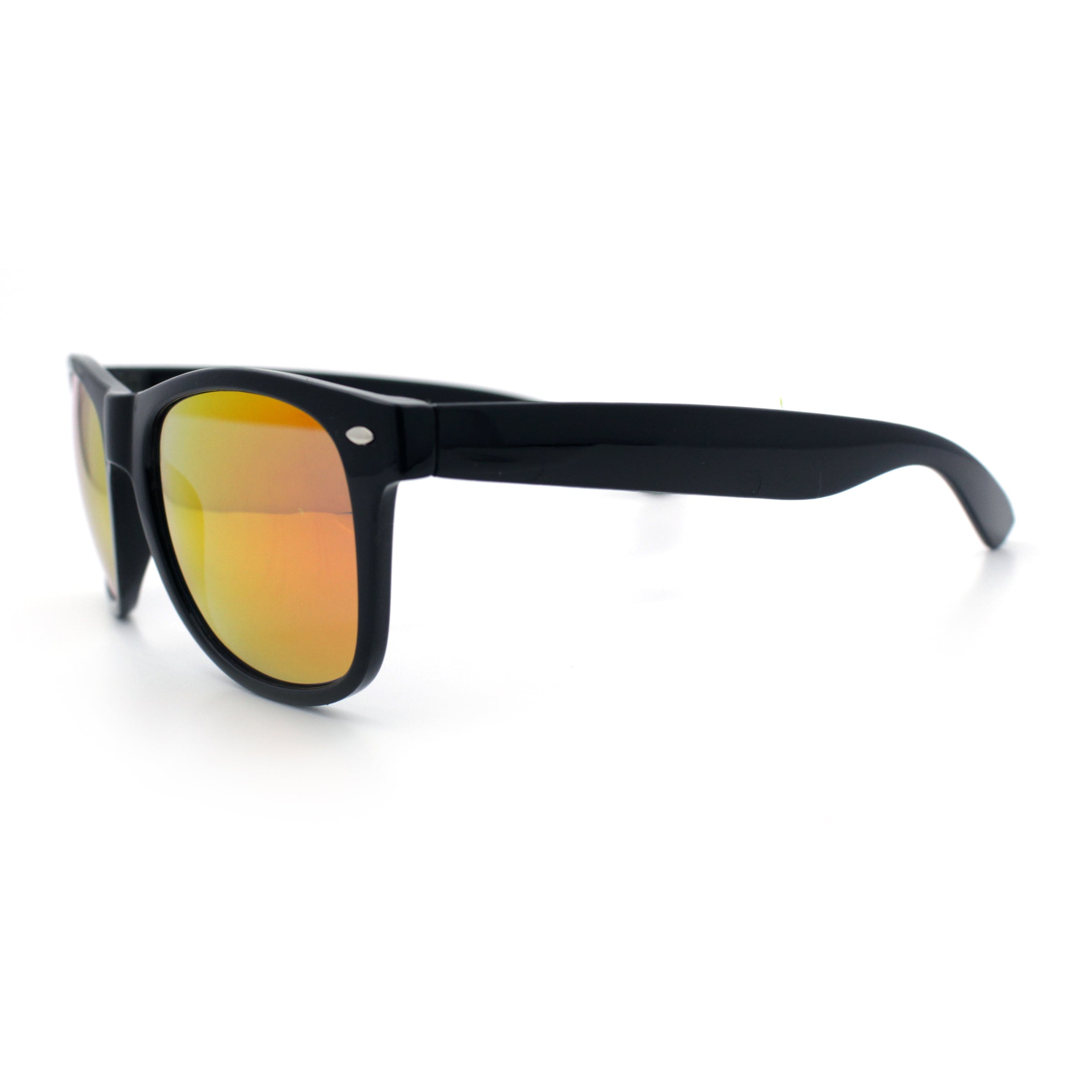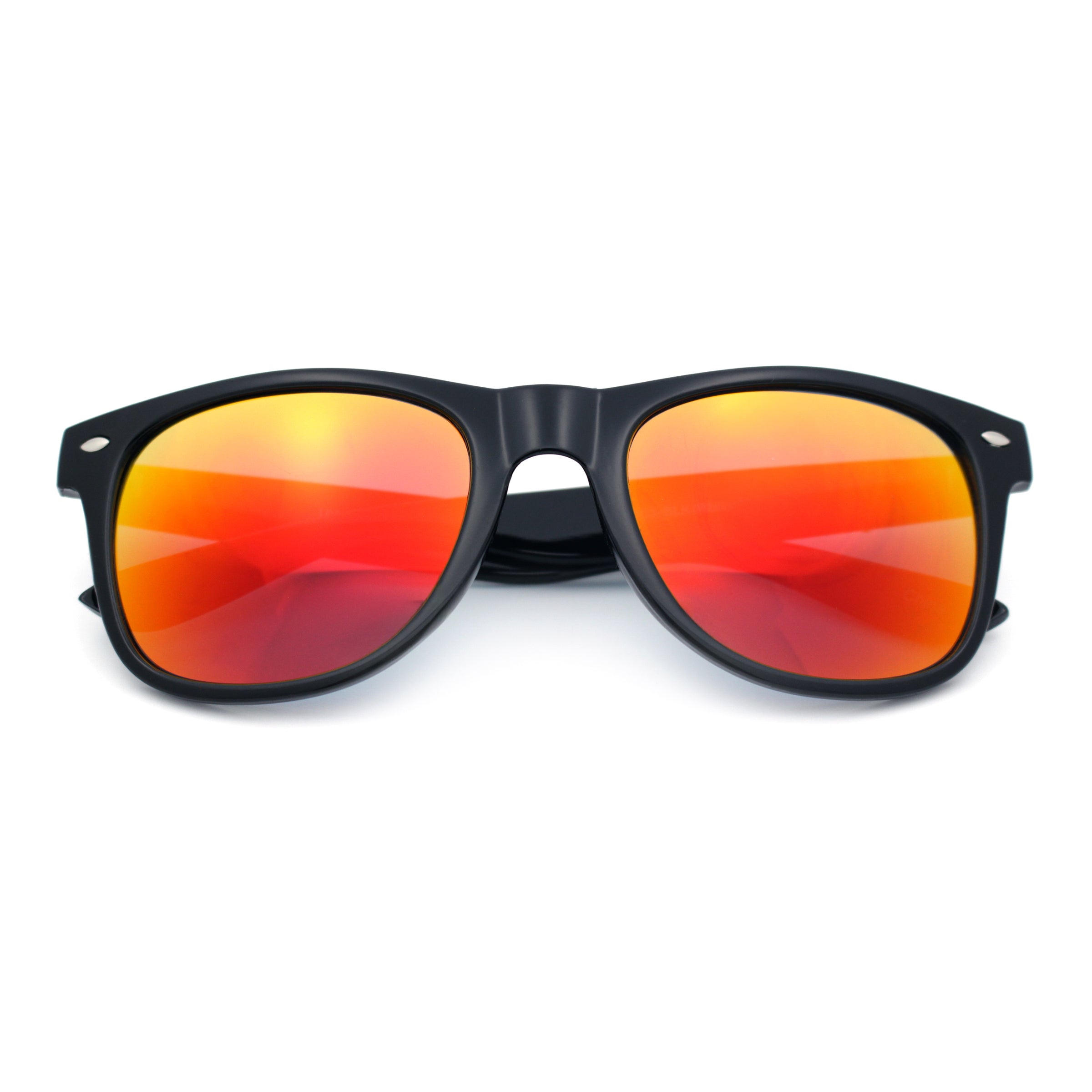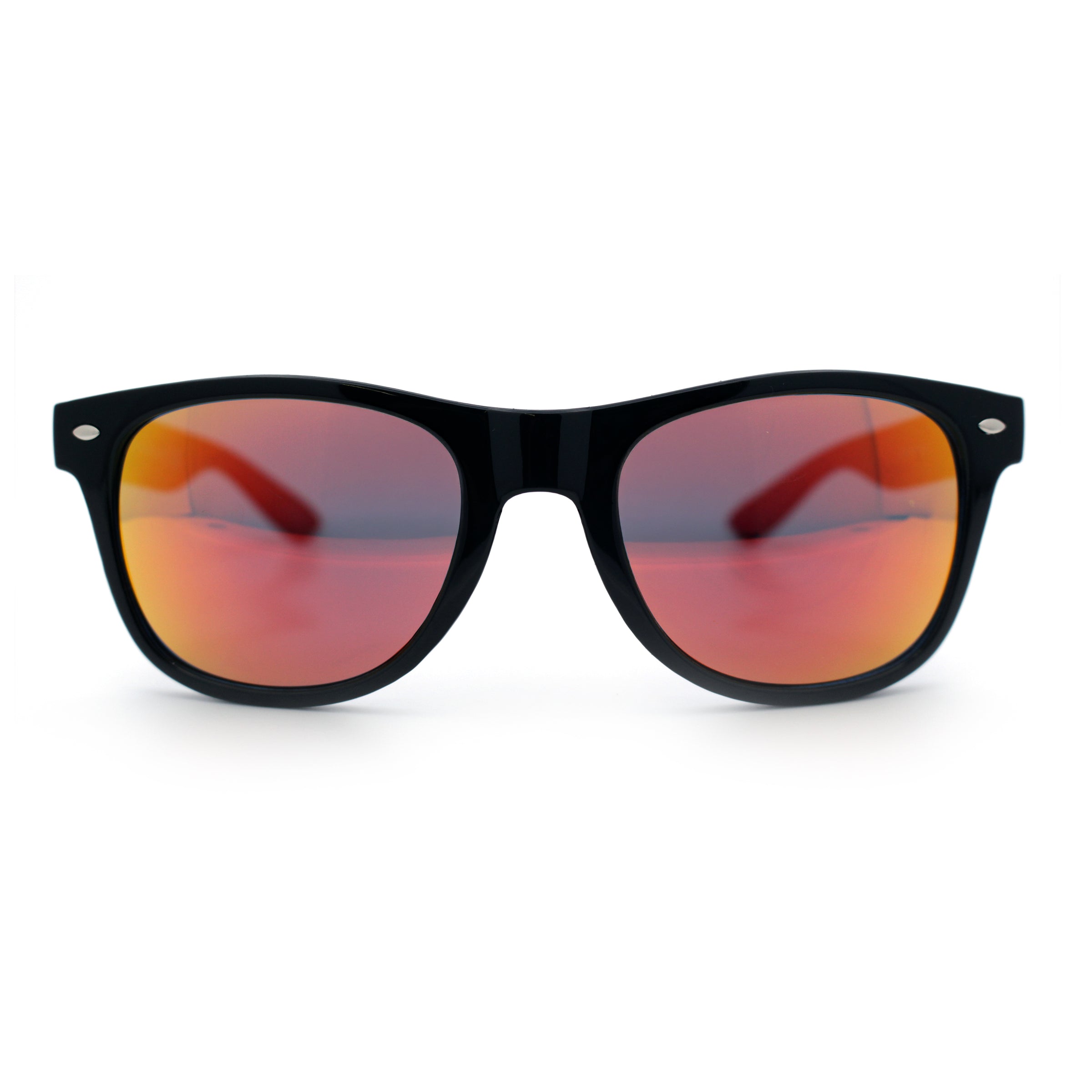 These iconic horn-rimmed sunglasses feature a classic, refined rounded rectangular lens set in a durable plastic horn-rim frame. Perfect for the man seeking a stylish yet timeless aesthetic, they add a touch of nostalgia to any outfit. The red colored mirror lenses further enhance their luxury and value, making them an excellent choice. (d282, d283, d284)