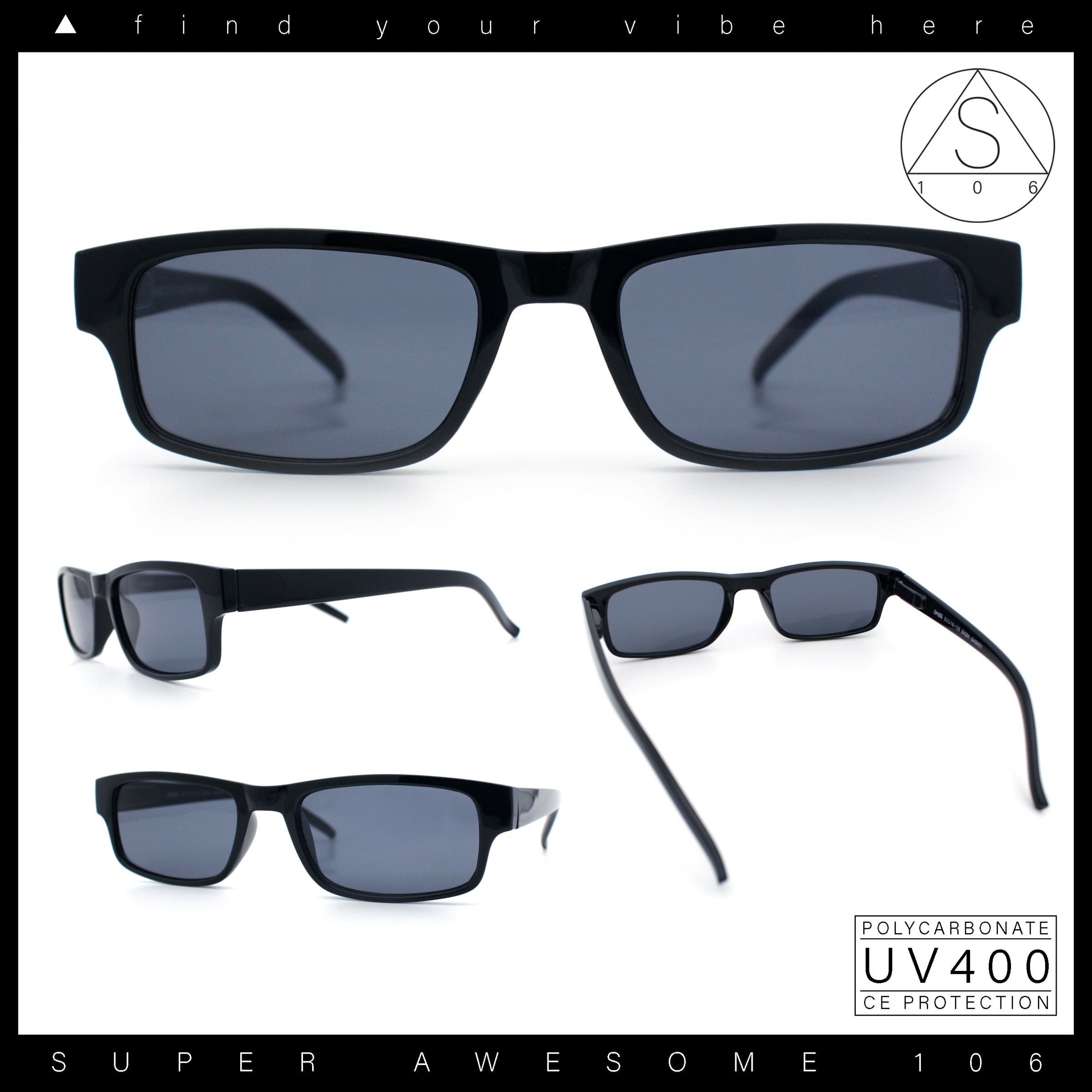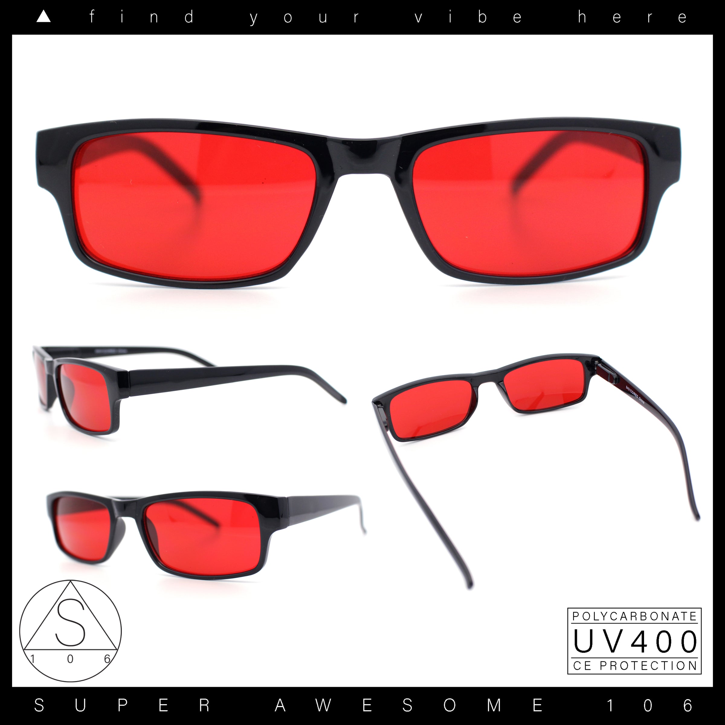 Achieve a subtle hipster vibe. Definite trending item. Retro vintage sizing, with hustler daddy narrow rectangular shape snug shade. Luxuriously minimal narrow horn rim, fitted with premium quality polycarbonate lenses (100% UV400). Comes with retro hippie pop color lenses. (sb9401)