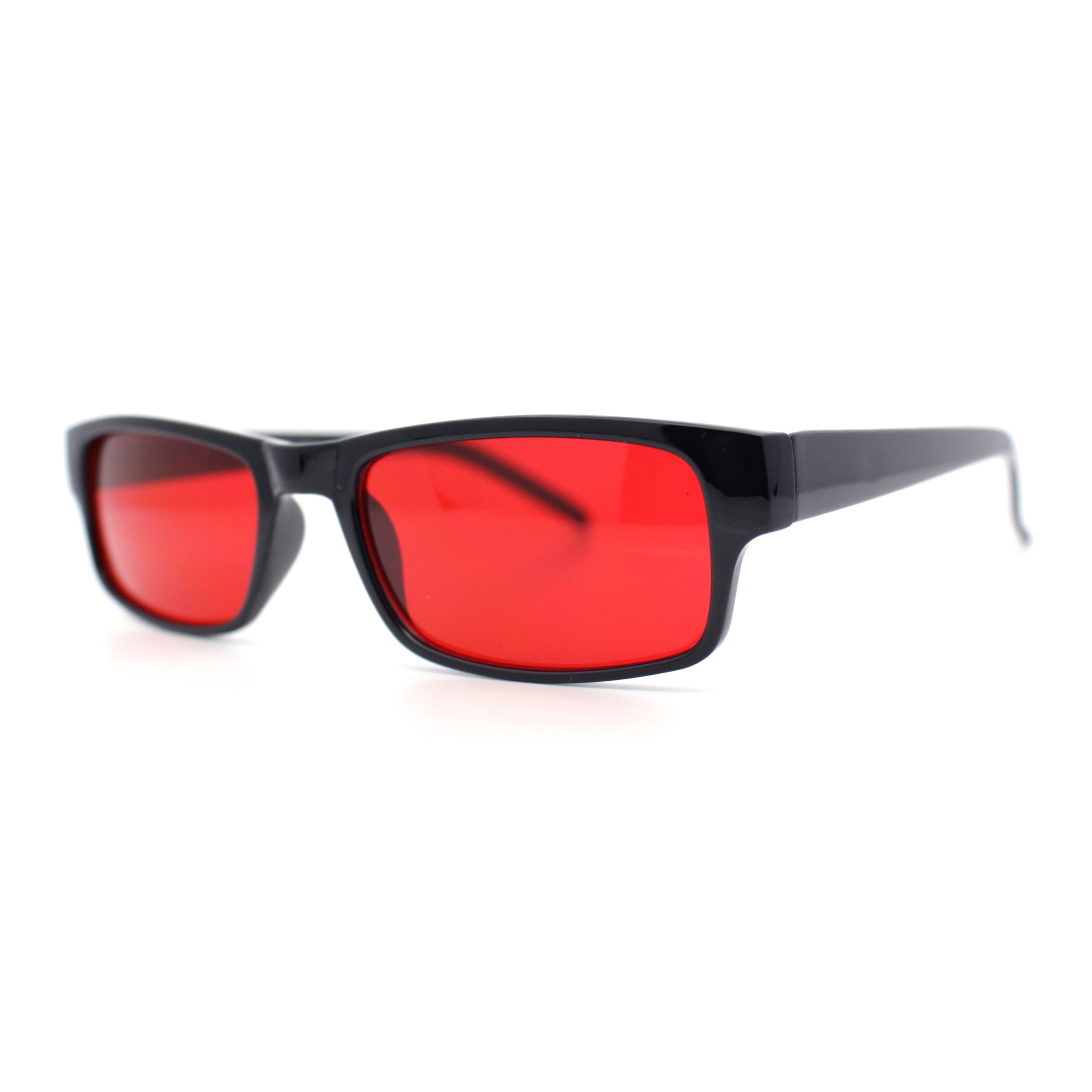 Mens Small Face Snug Fit Color Lens Rectangular Plastic Frame Sunglasses