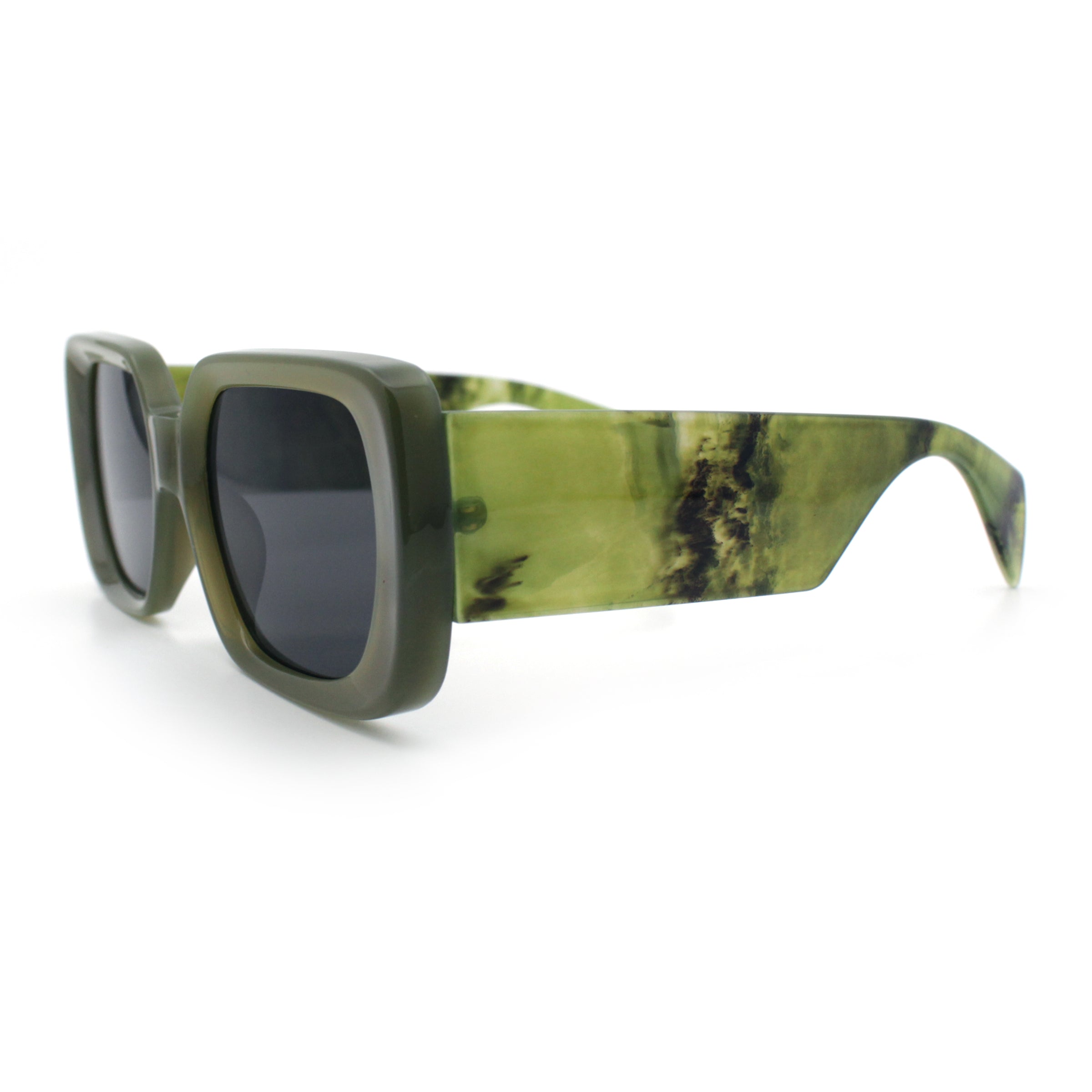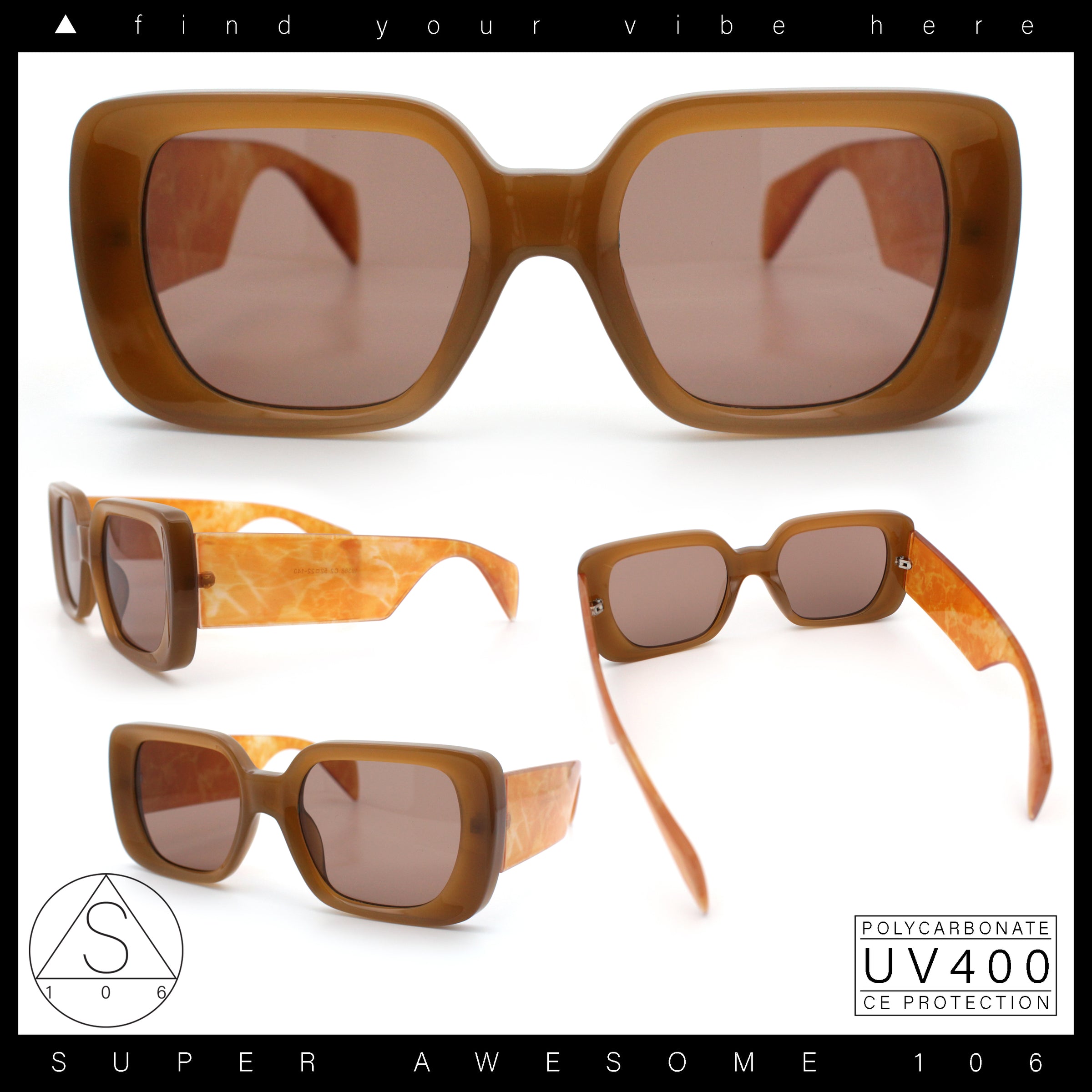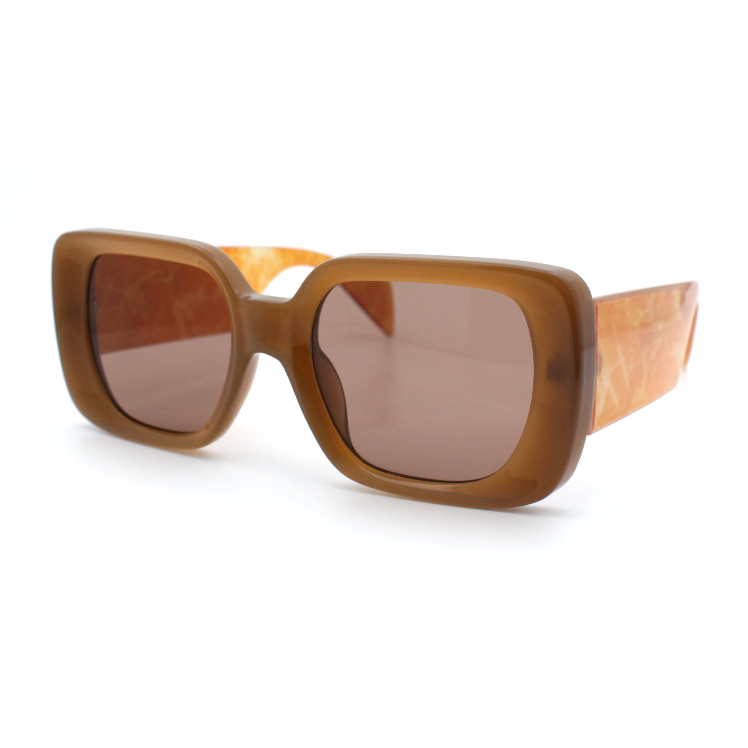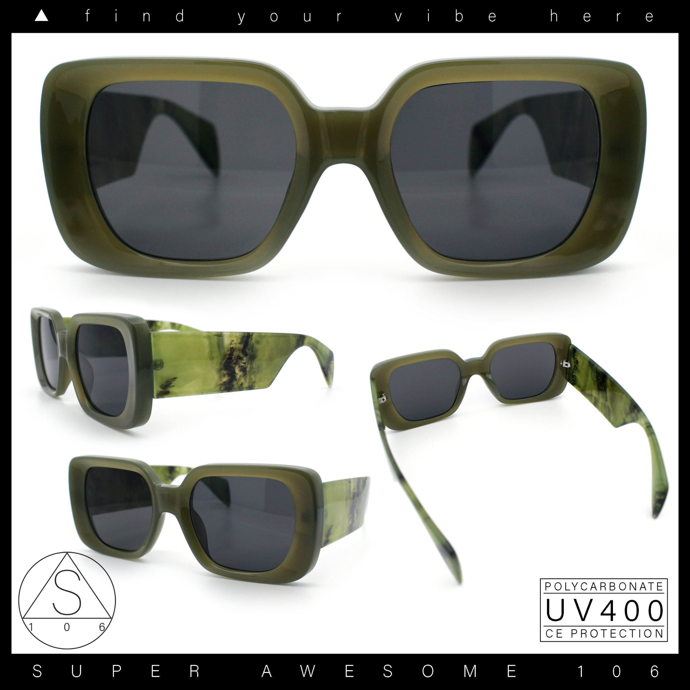 A retro inspired pair of mod rectangular sunglasses. These thick rectangular sunglasses come in sophisticated subdued color options and compliments retro trend mod fashion rectangle silhouettes, with unique thick temples. The exquisitely crafted frame with luxurious rectangle shape will give a mod appeal. Made with a plastic based frame, metal hinges, and 100% UV protected lenses. (d279)