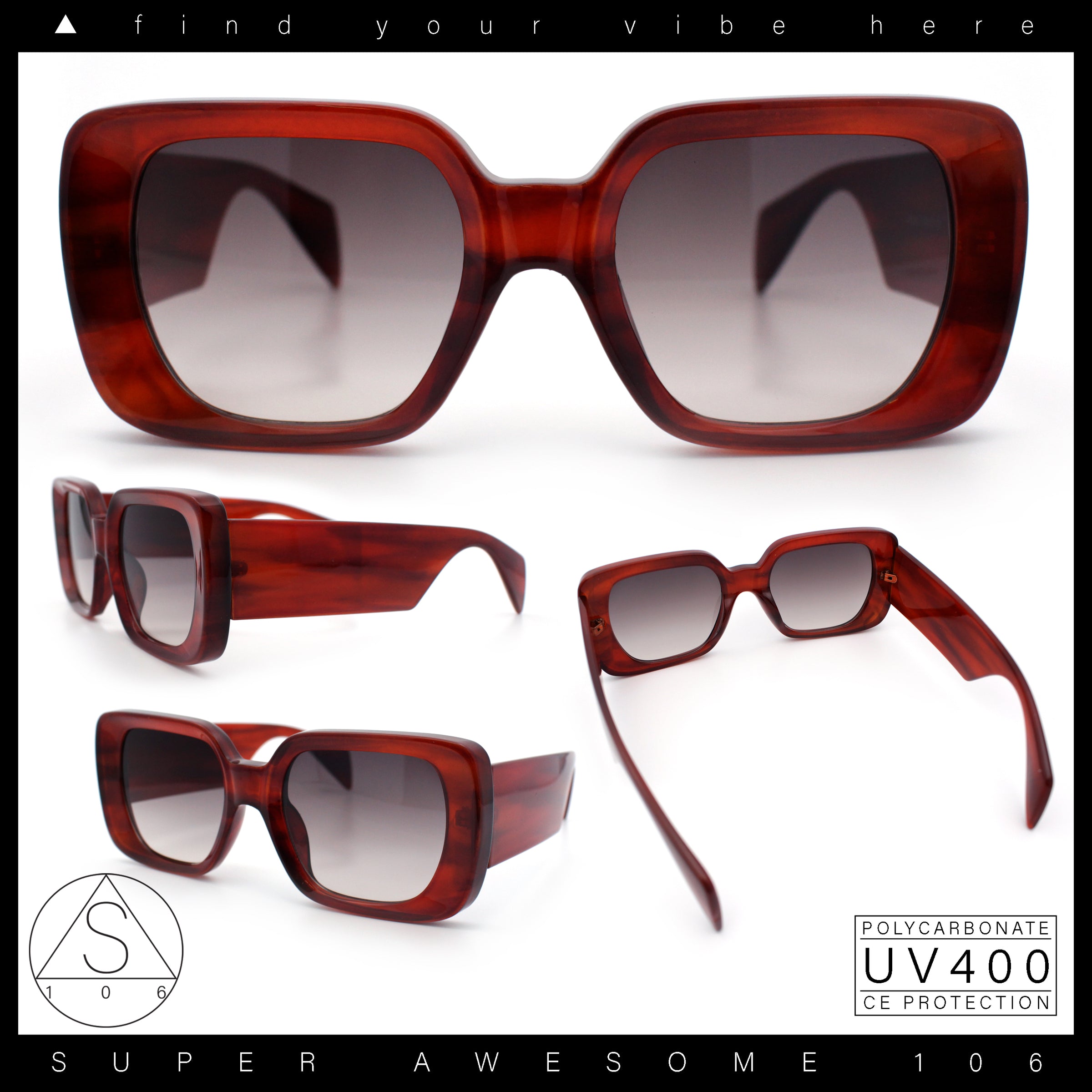 Womens Mod Beveled Thick Plastic Rectangular Fashion Sunlgasses