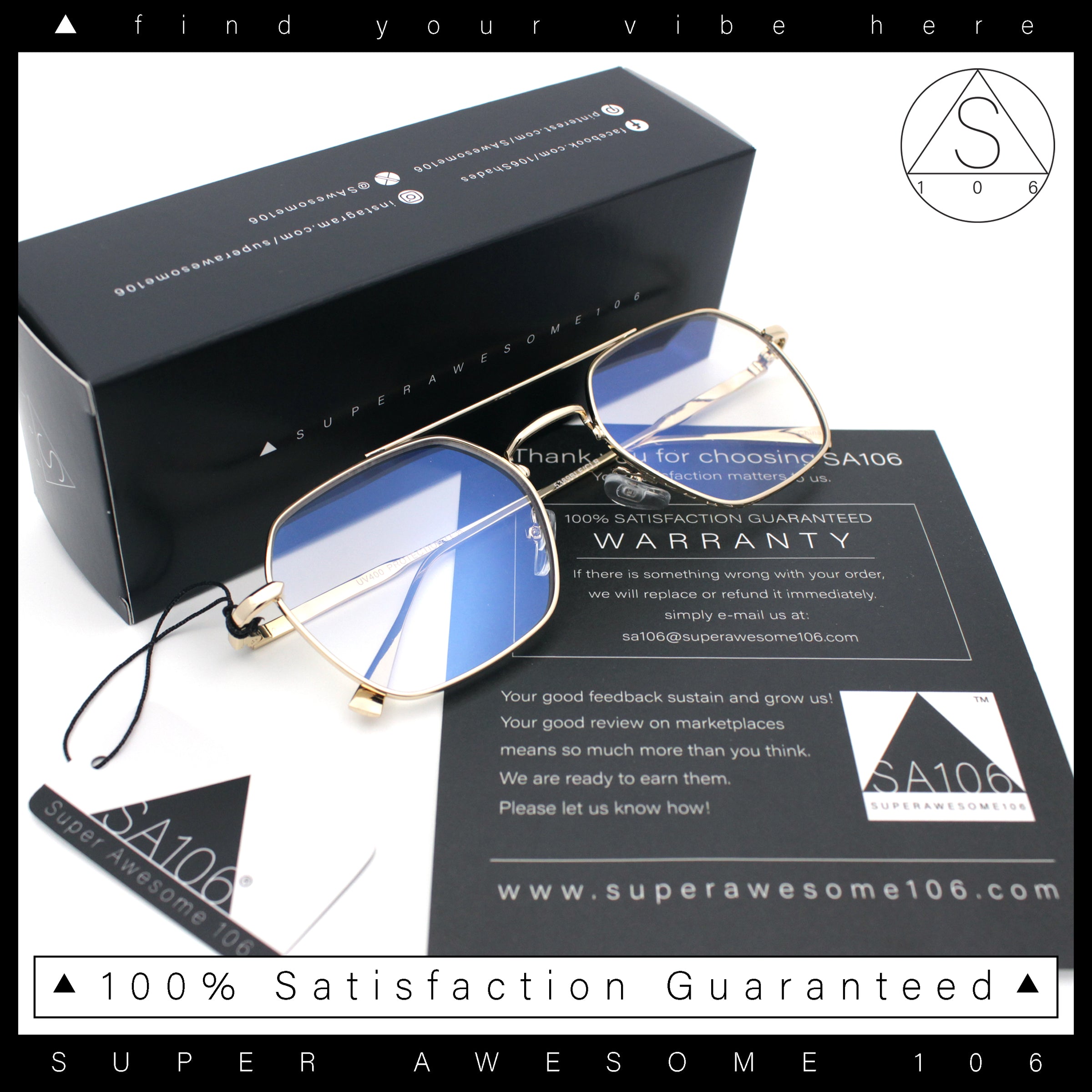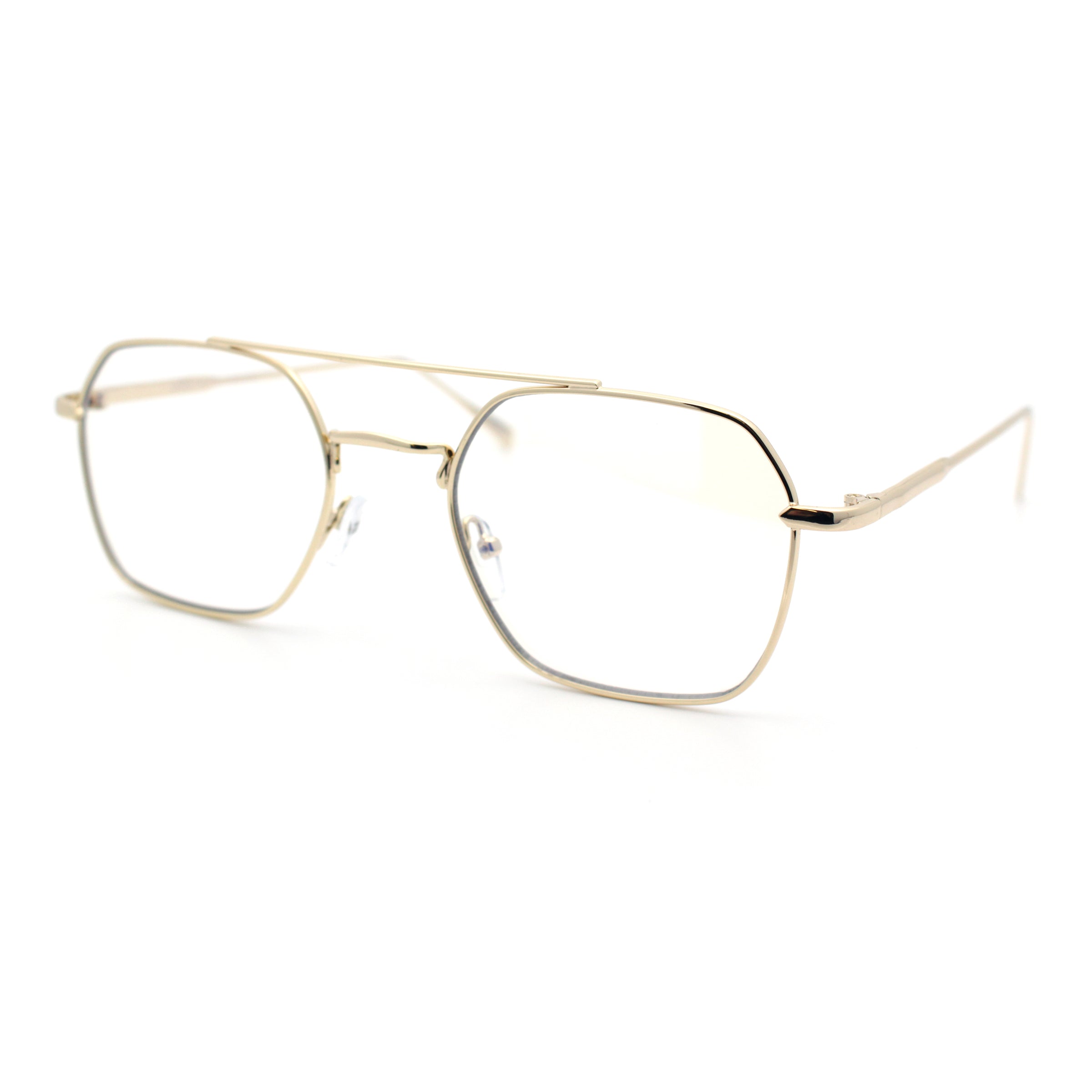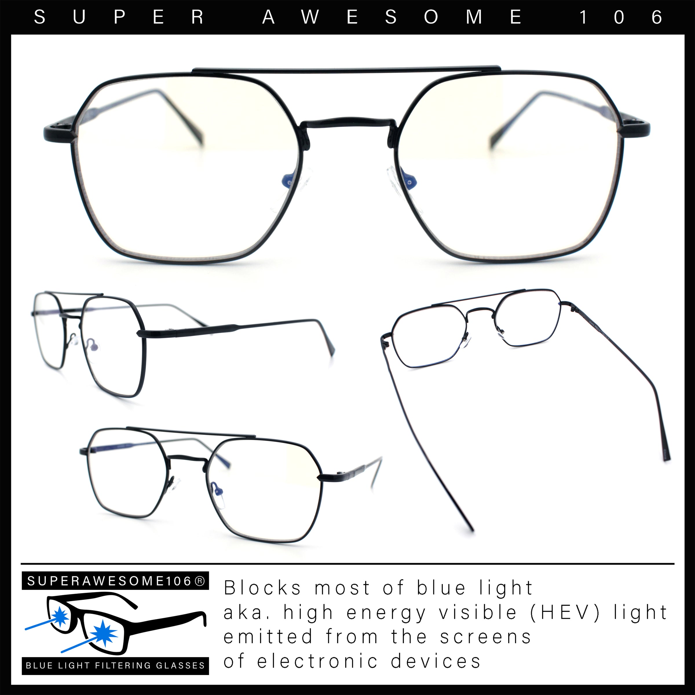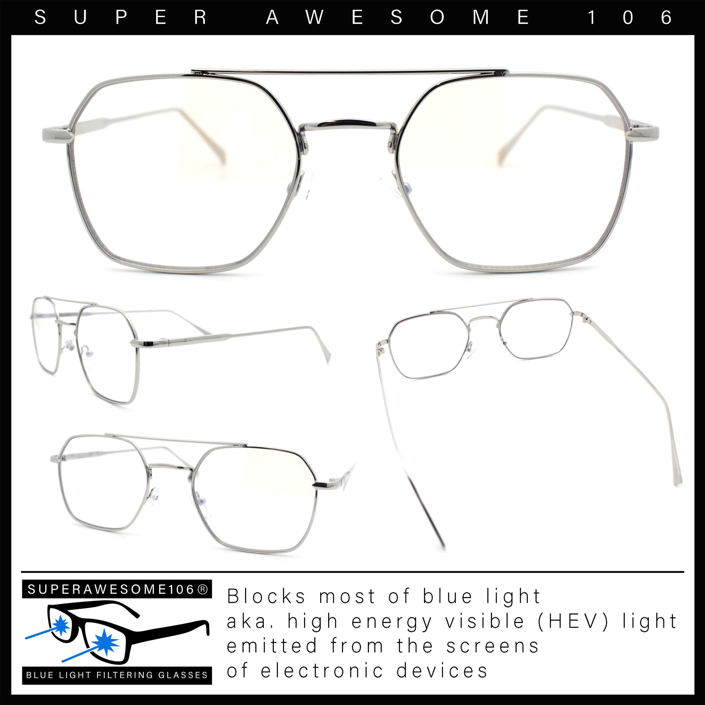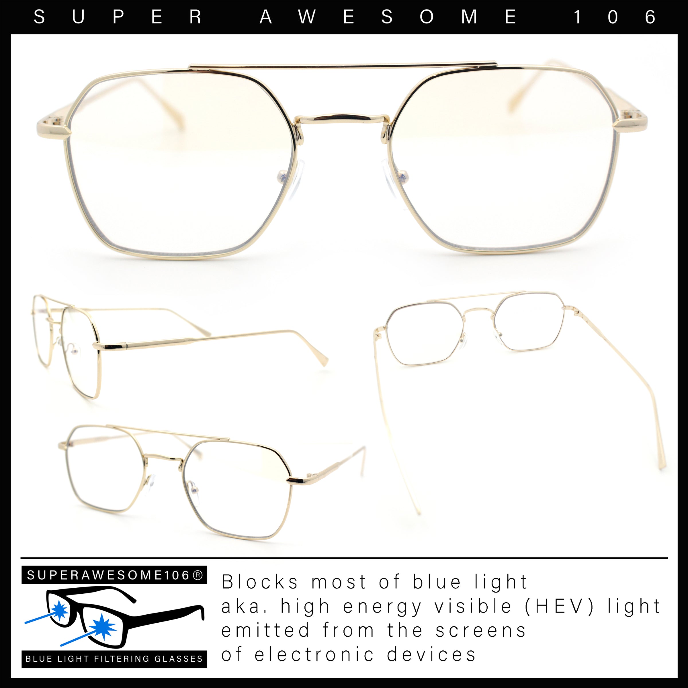 Maintain your style without sacrificing performance. These iconic, trendy, hipster fashion glasses feature rectangle metal frames with double bridge and clear, blue light filtering lenses, making them the perfect complement to any everyday hipster computer work. Their trendy, generous sizing provides excellent coverage and versatility. Constructed with a durable metal-based frame, metal hinges, and ultra blue-violet ray filtering polycarbonate lenses, these glasses protect your eyes from the harmful effects of screen-emitted blue light while ensuring you look great. (d287)