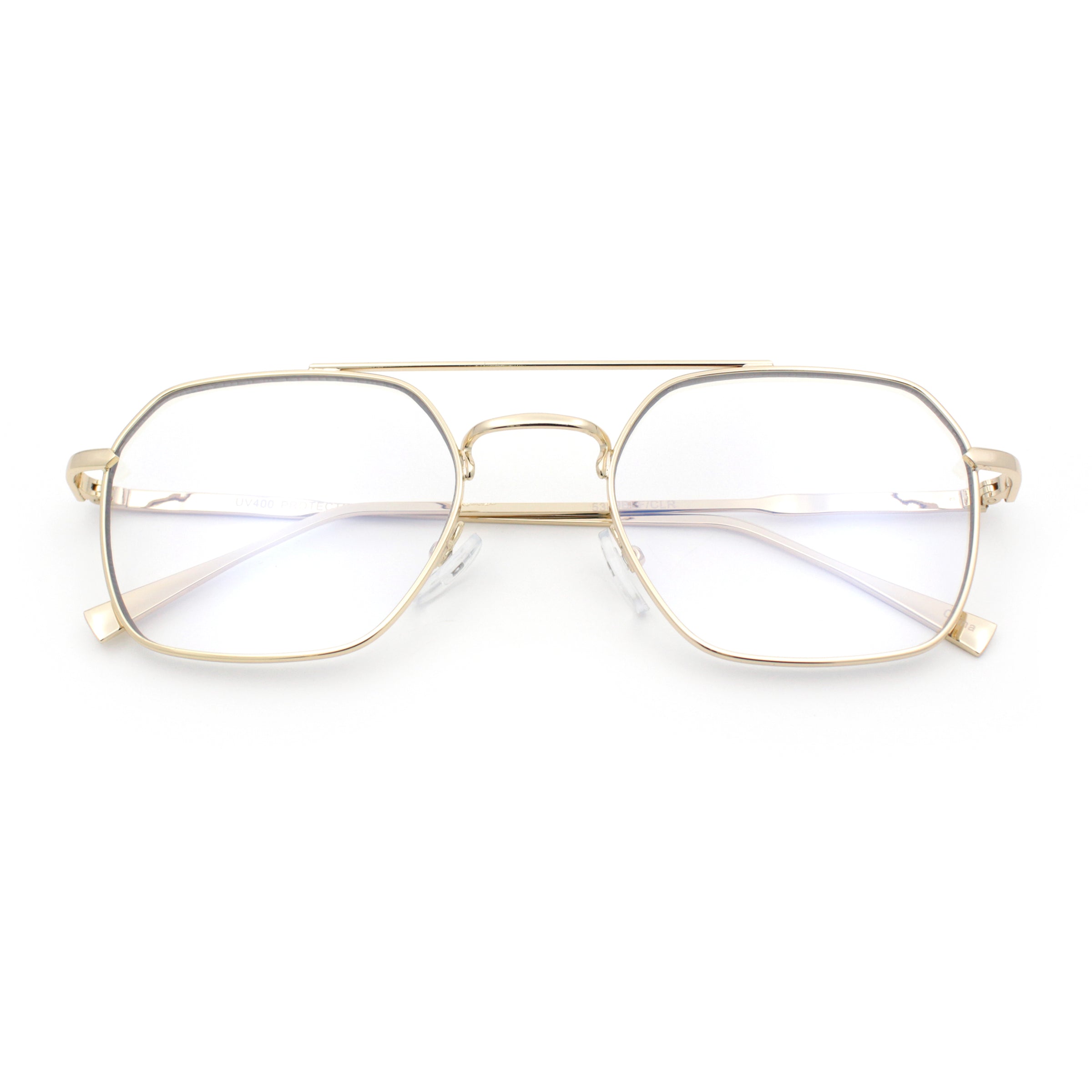 Hipster Metal Rectangle Double Bridge Blue Light Filtering Computer Glasses