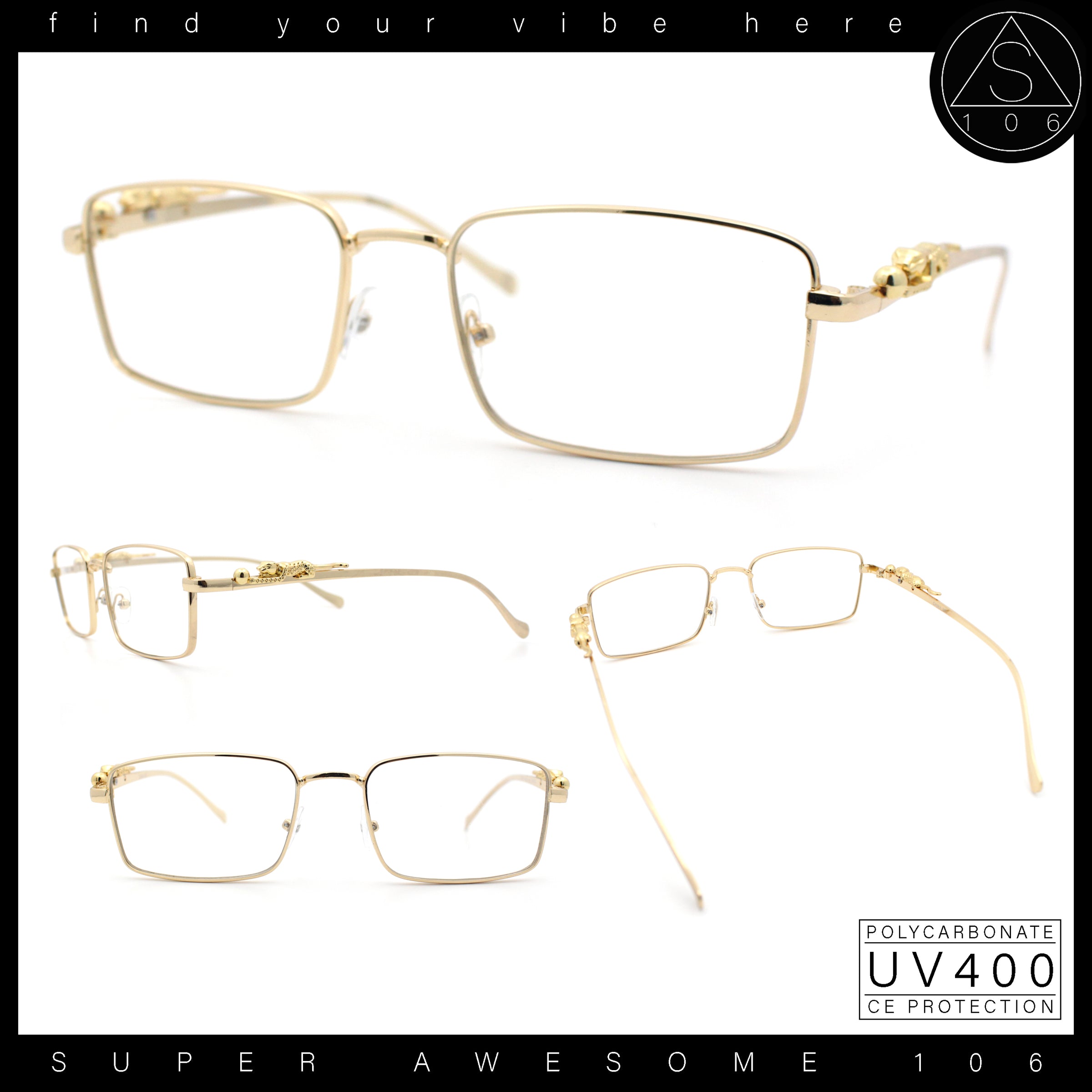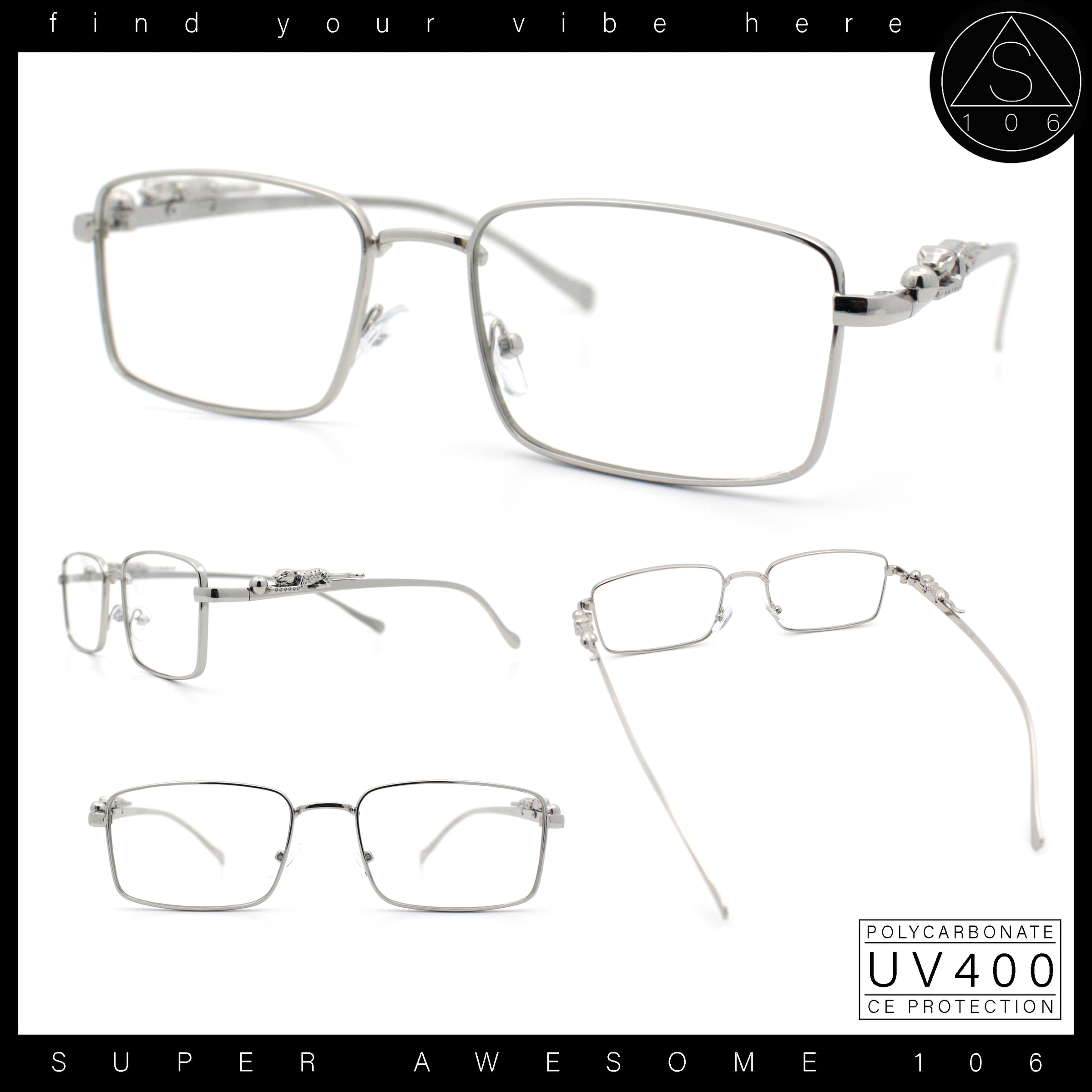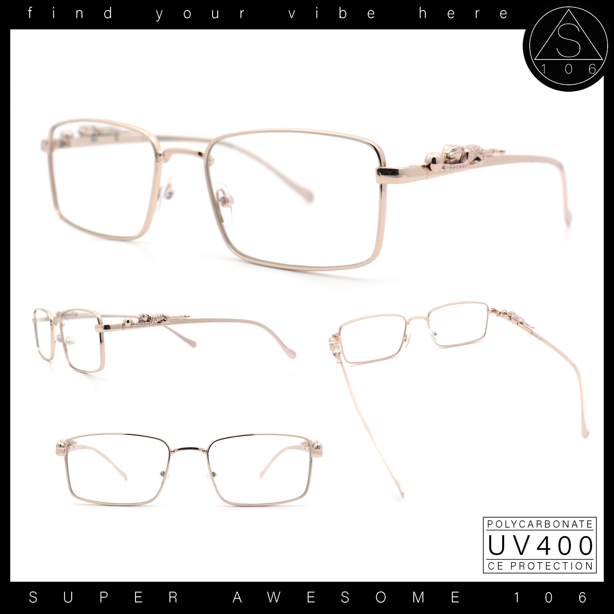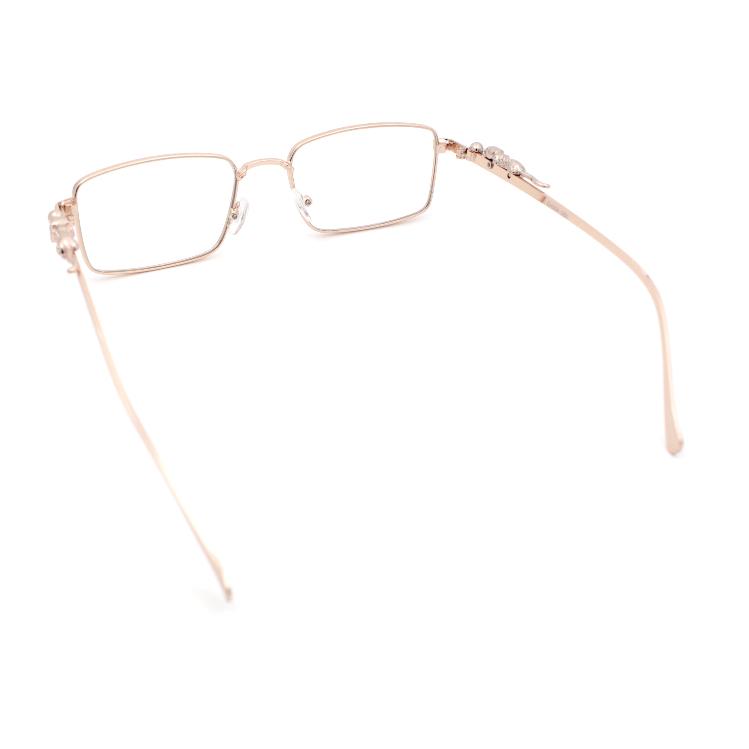 Jaguar Cougar Jewel Metal Arm Rectangle Hustler Fashion Eyeglasses