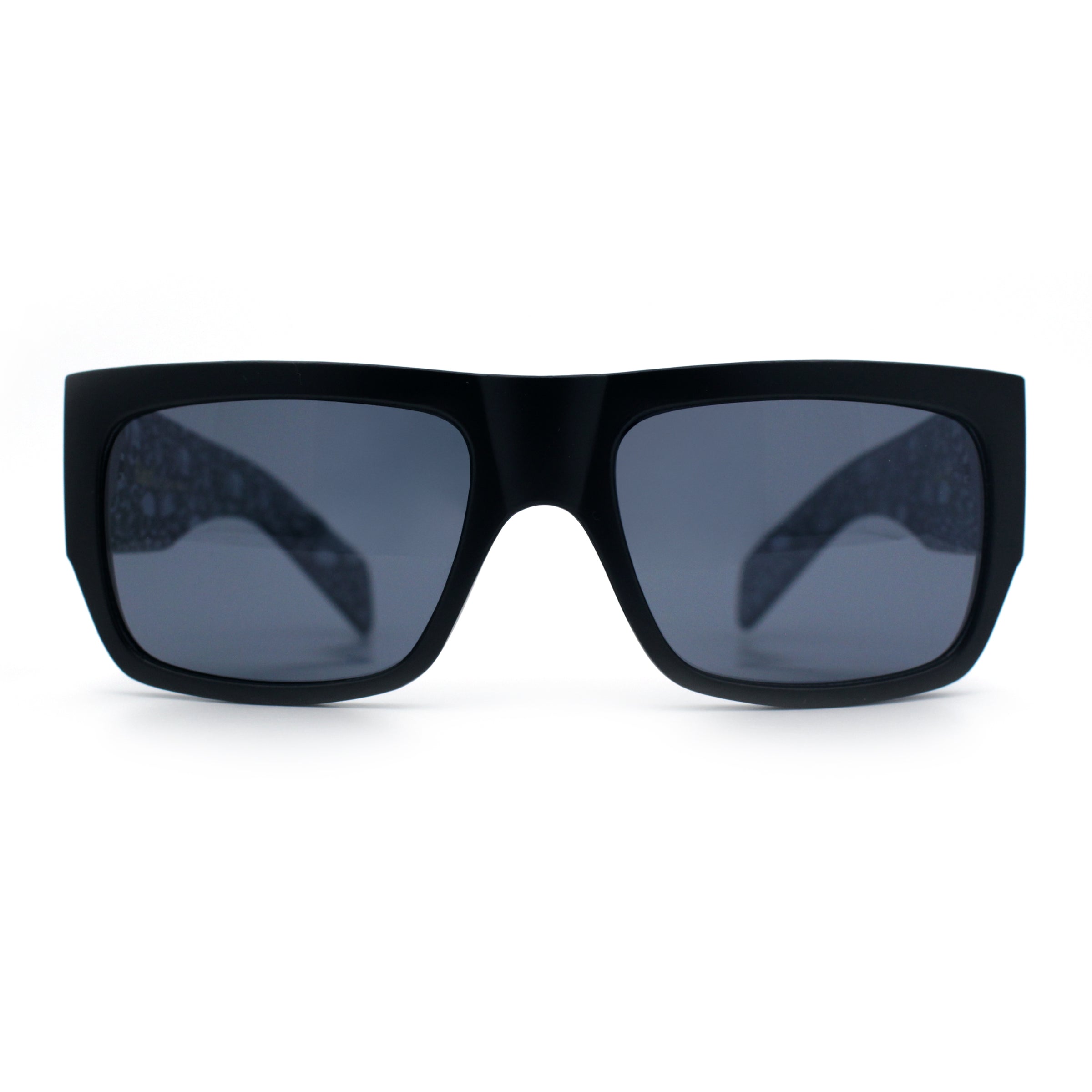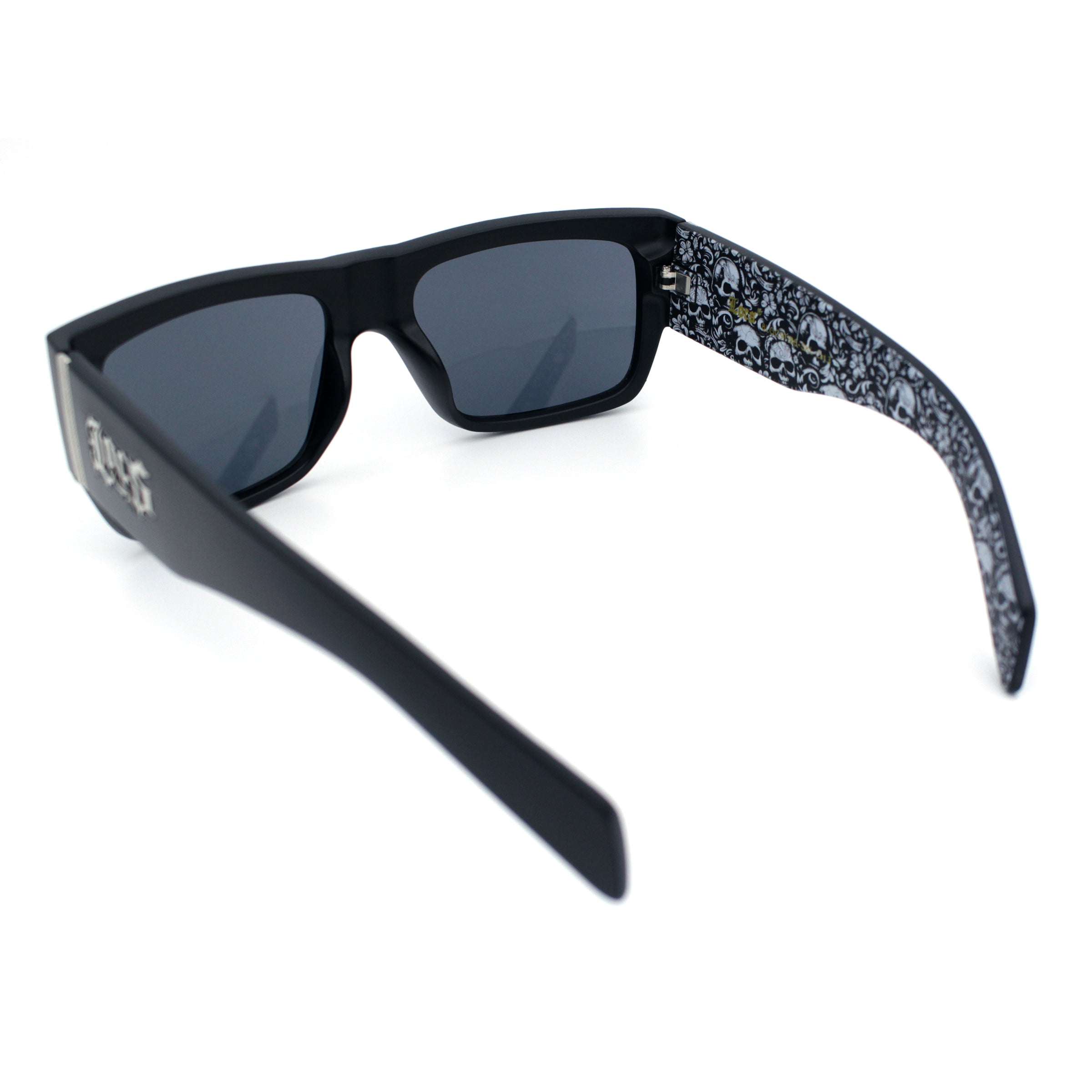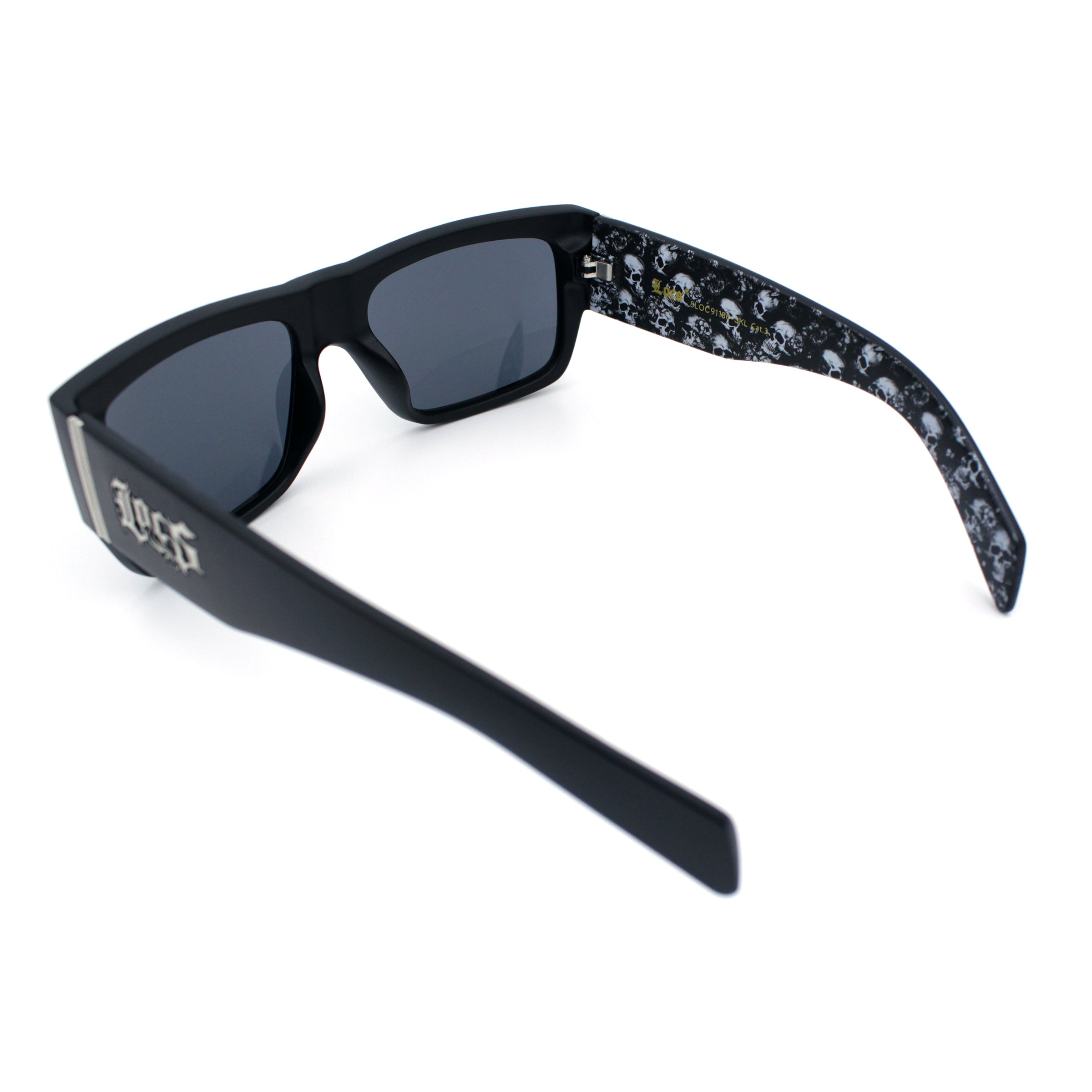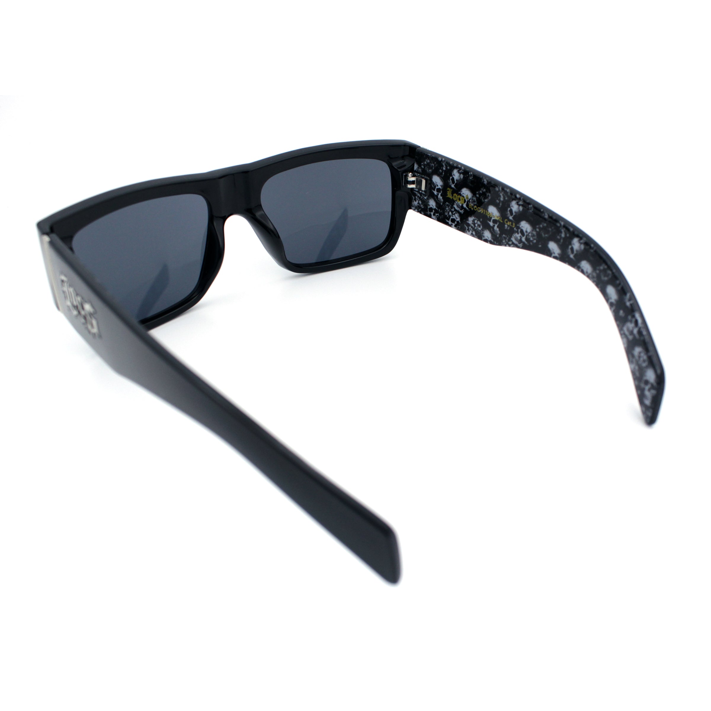 Locs Mens Skull Pattern Arm Thick Temple Rectangle Gangster Sunglasses