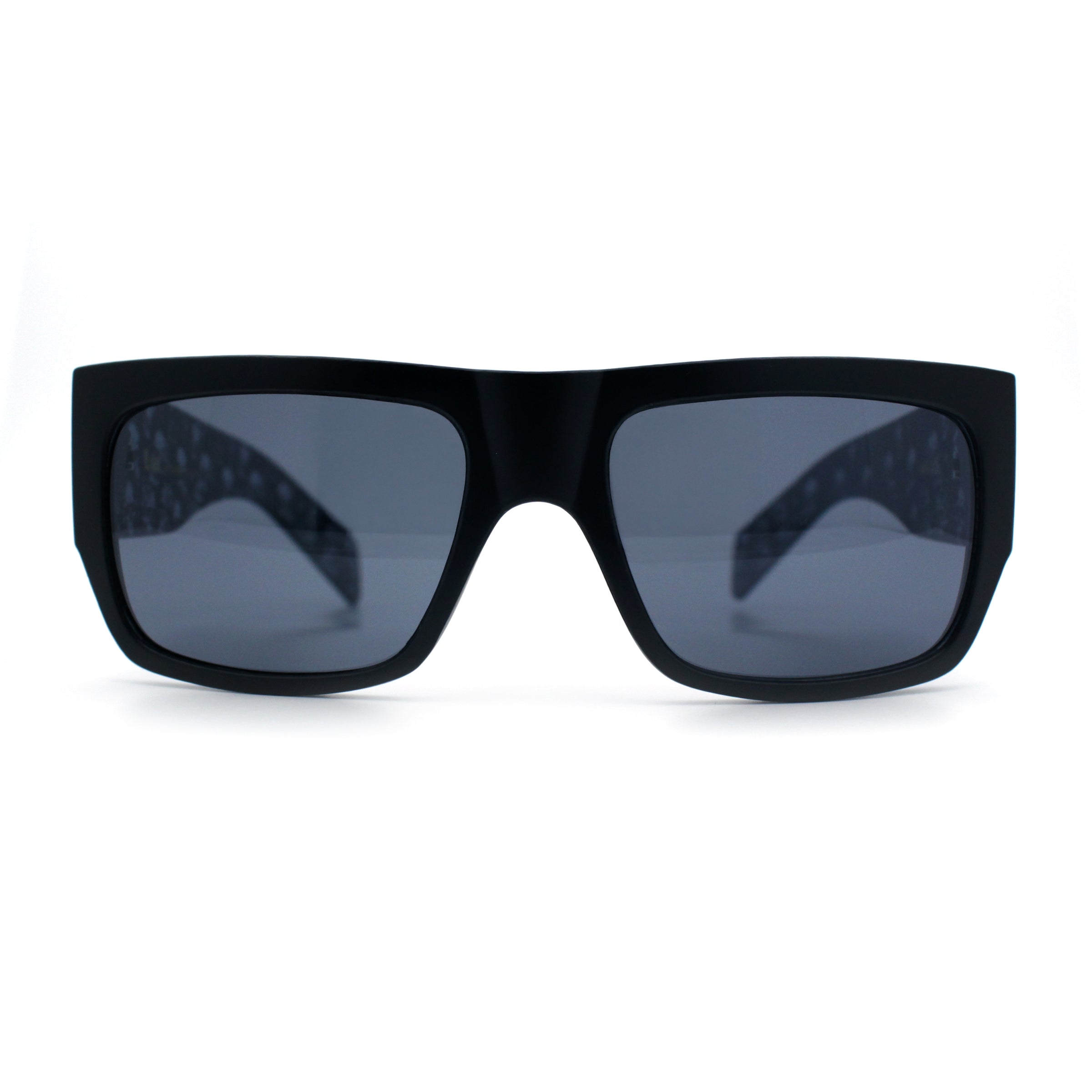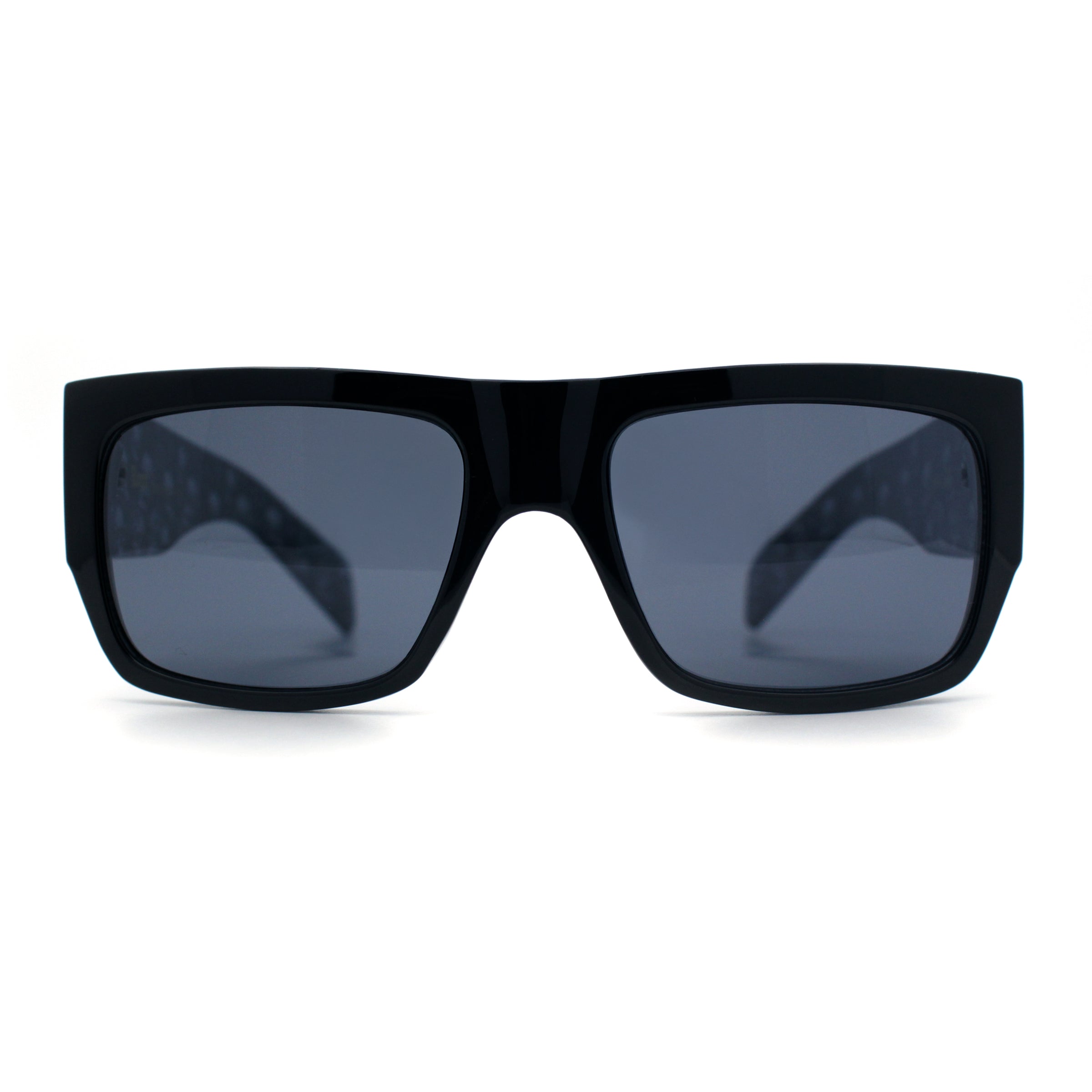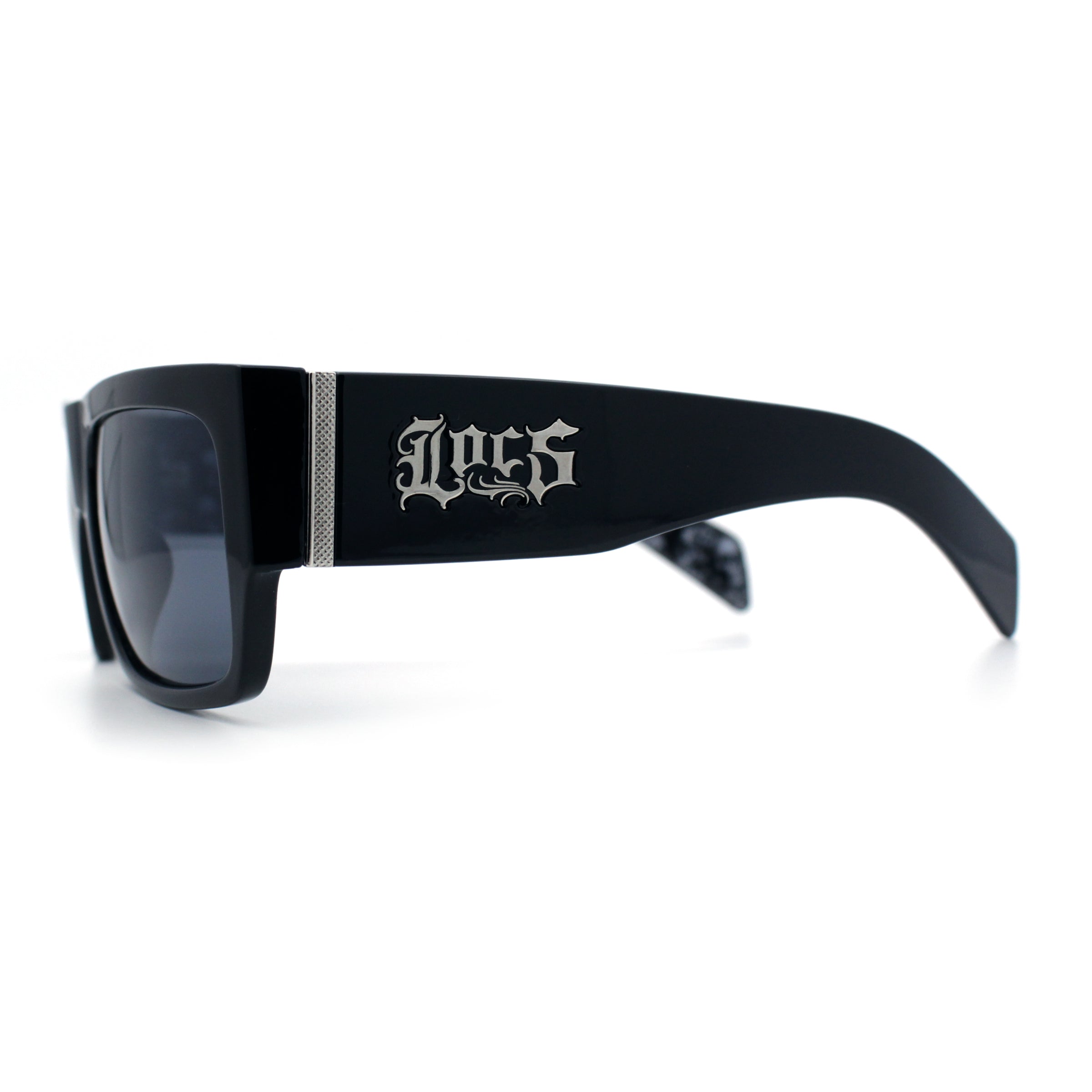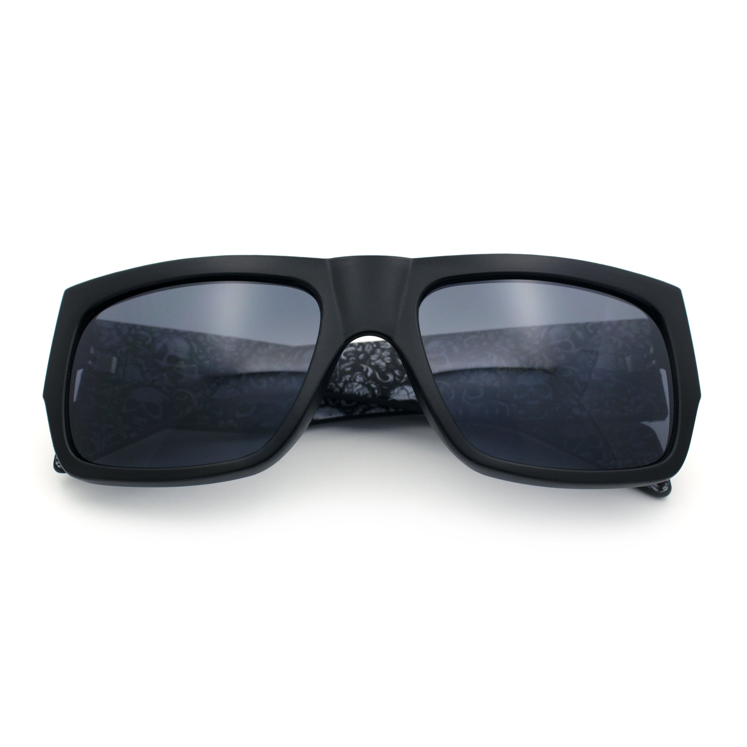 Locs Mens Skull Pattern Arm Thick Temple Rectangle Gangster Sunglasses
