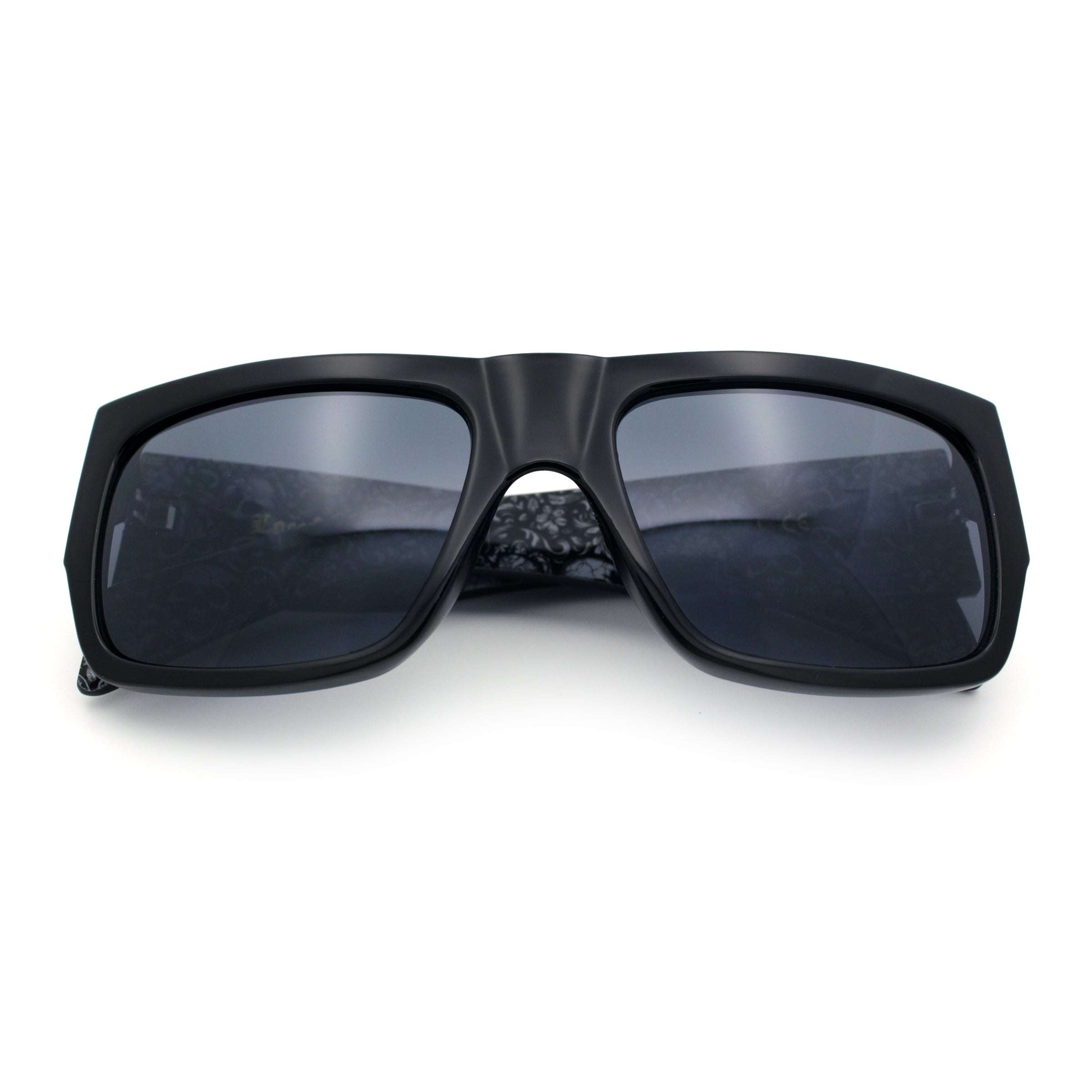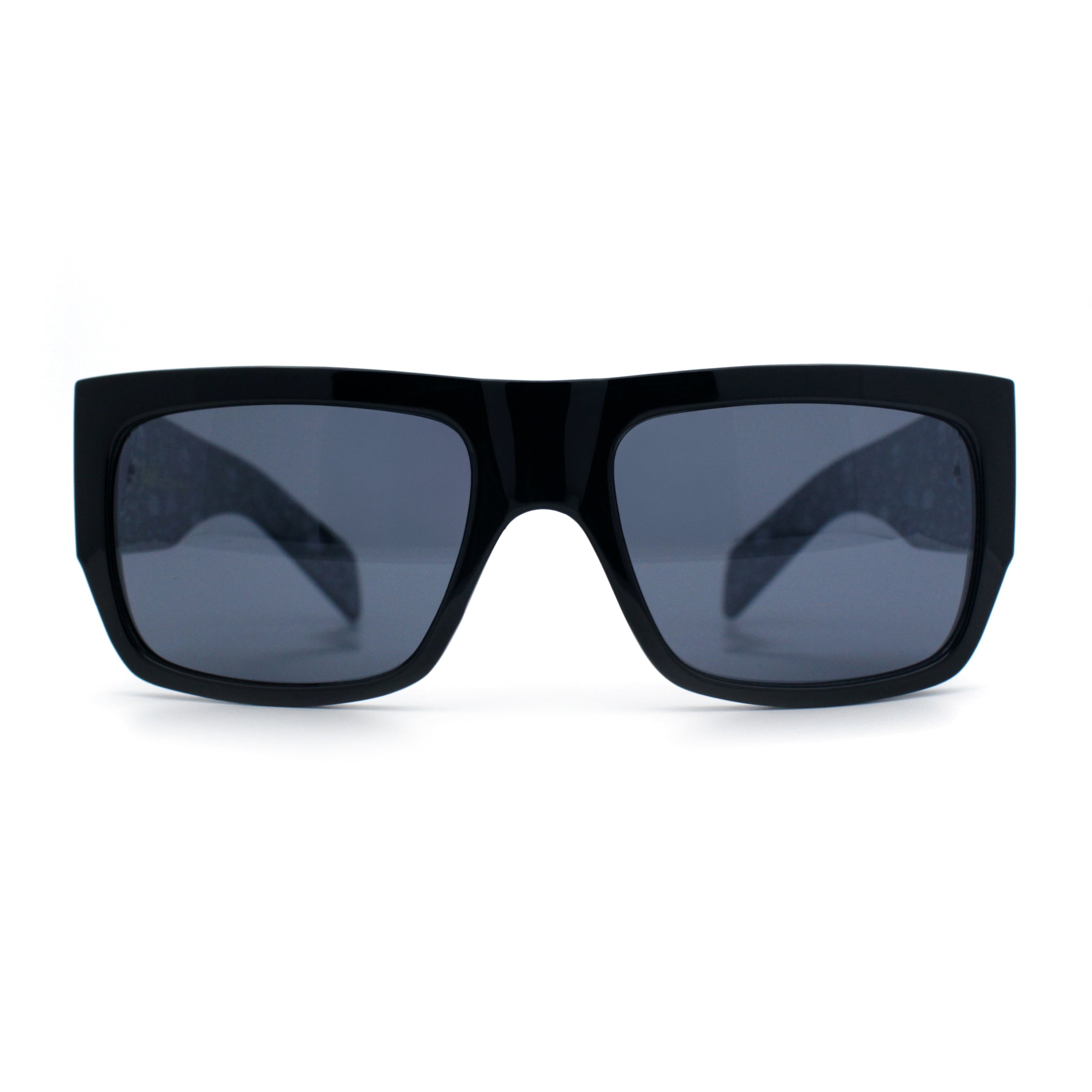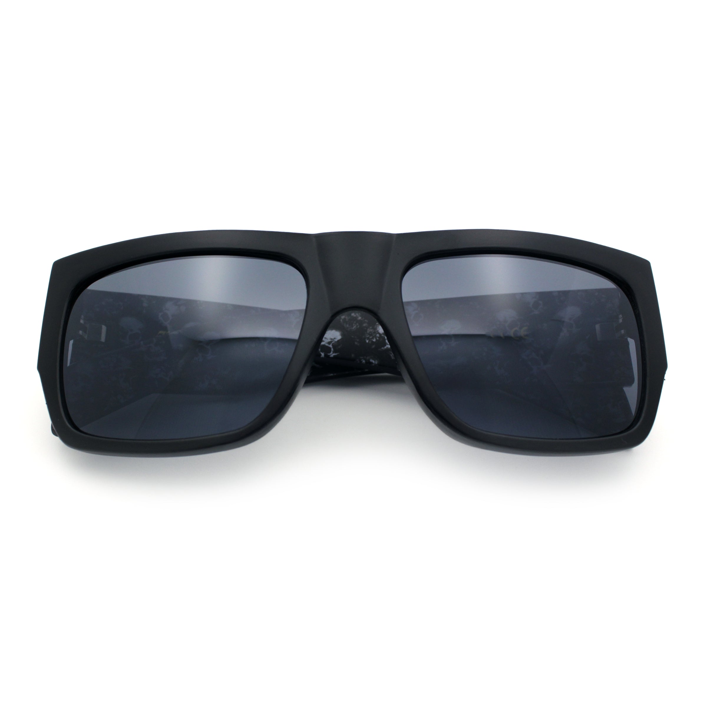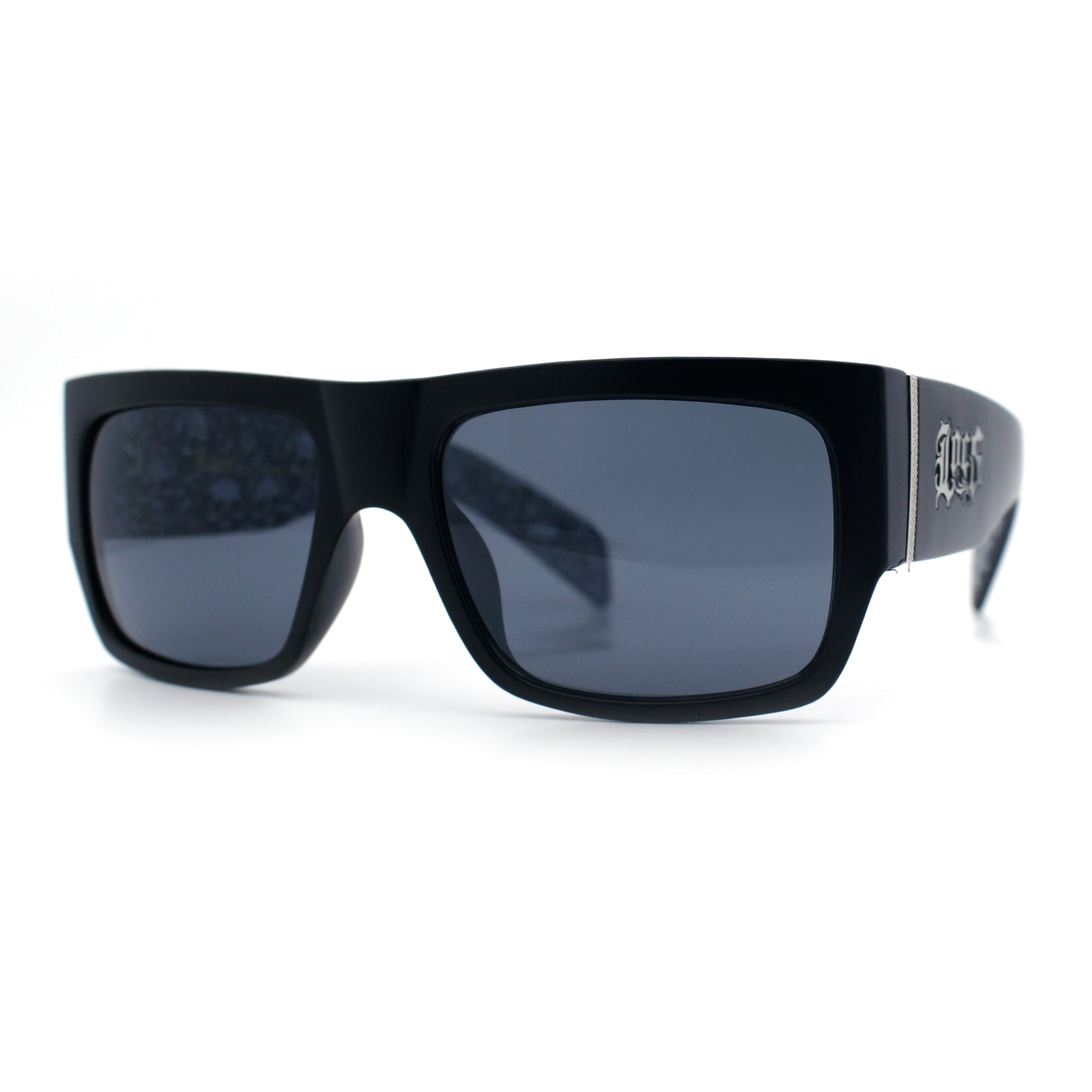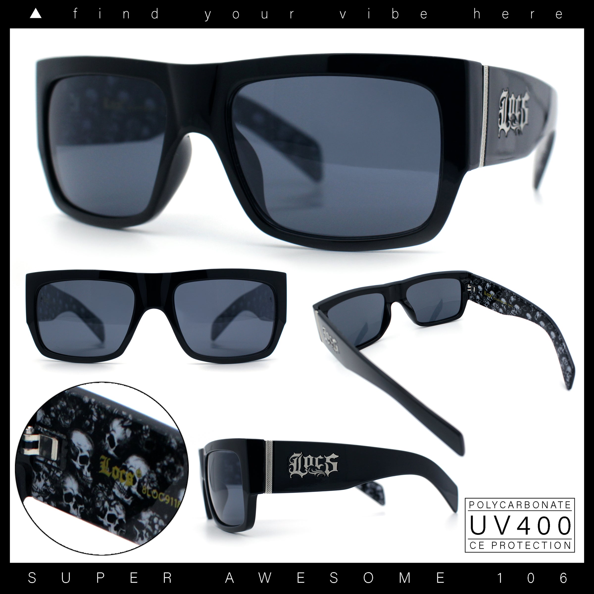 Locs Mens Skull Pattern Arm Thick Temple Rectangle Gangster Sunglasses