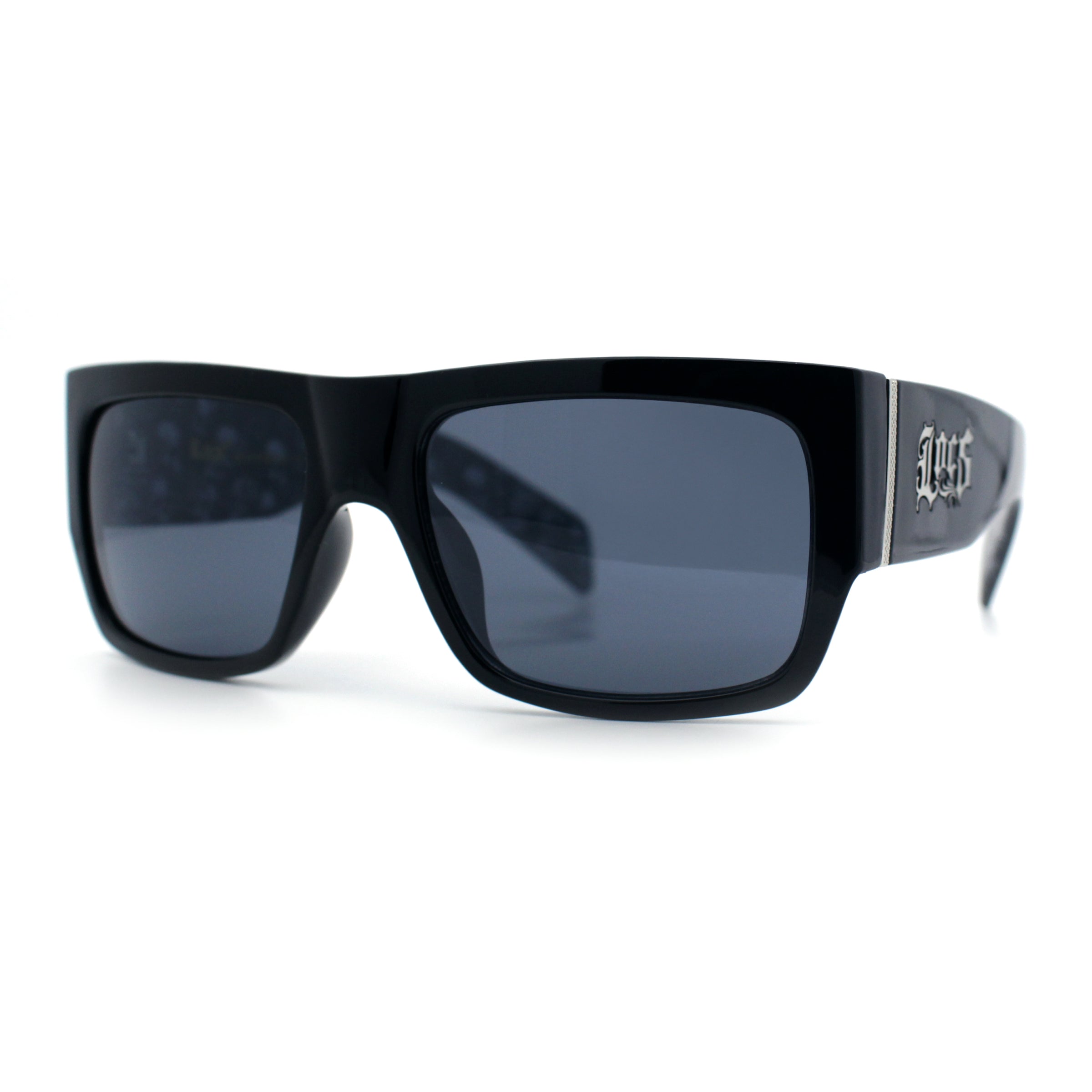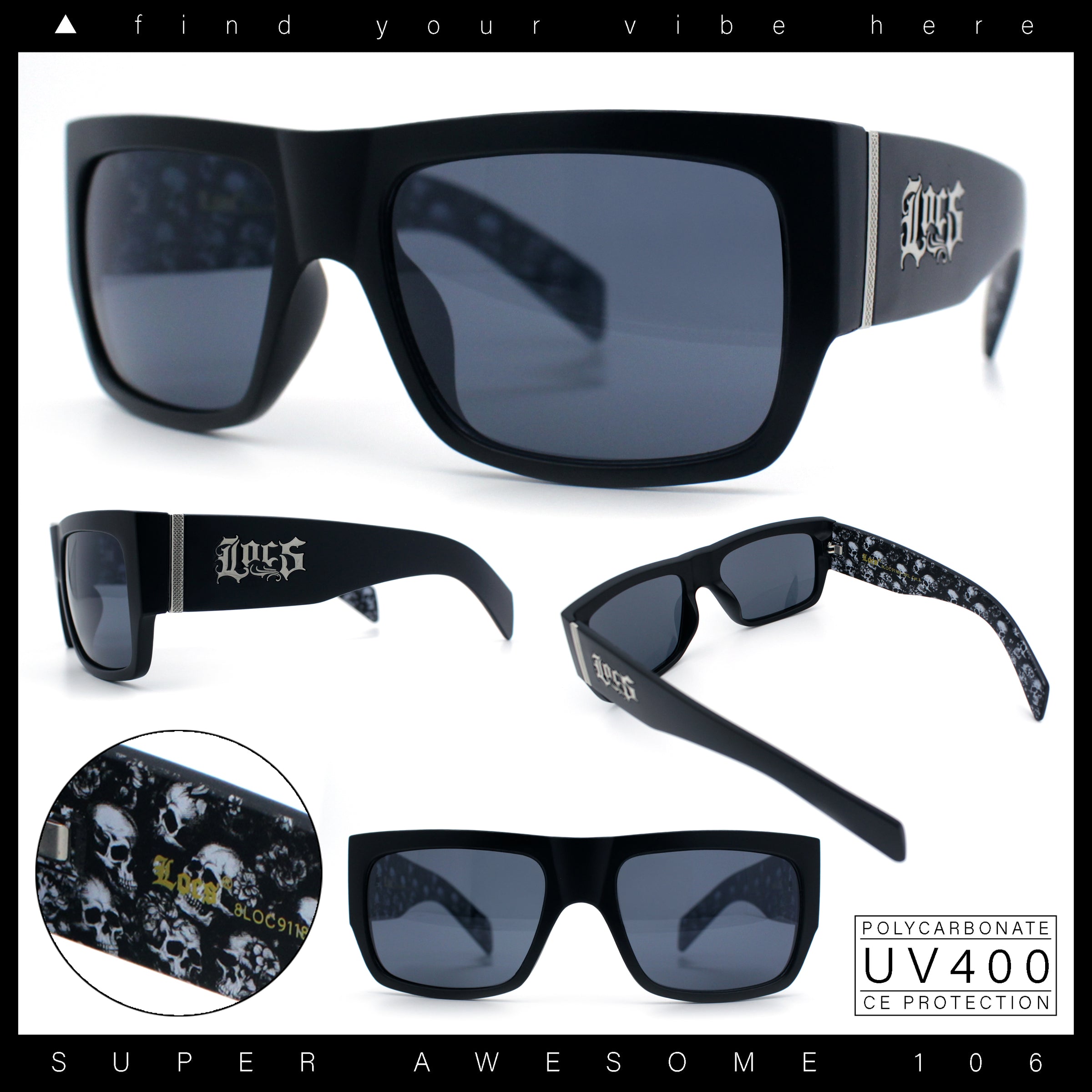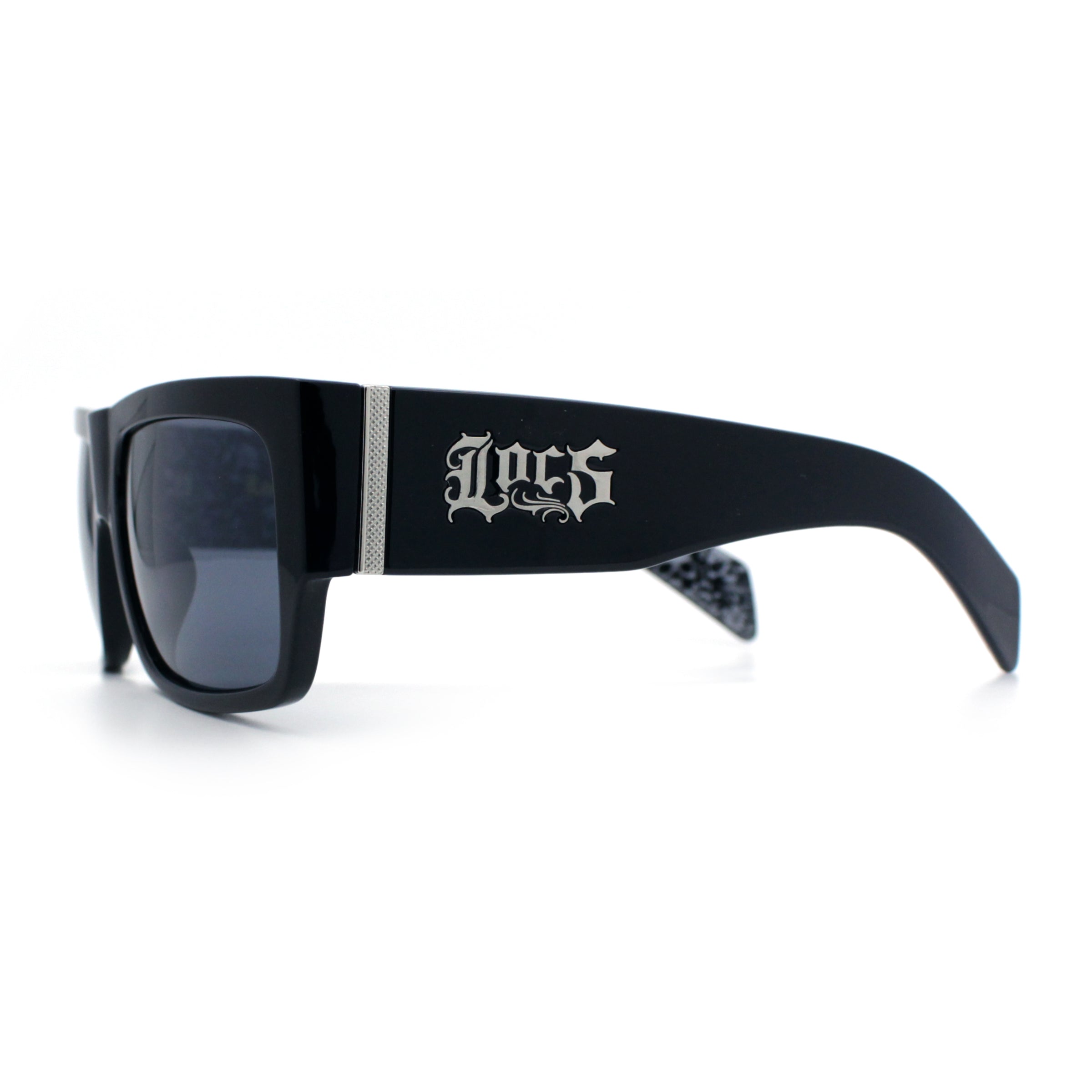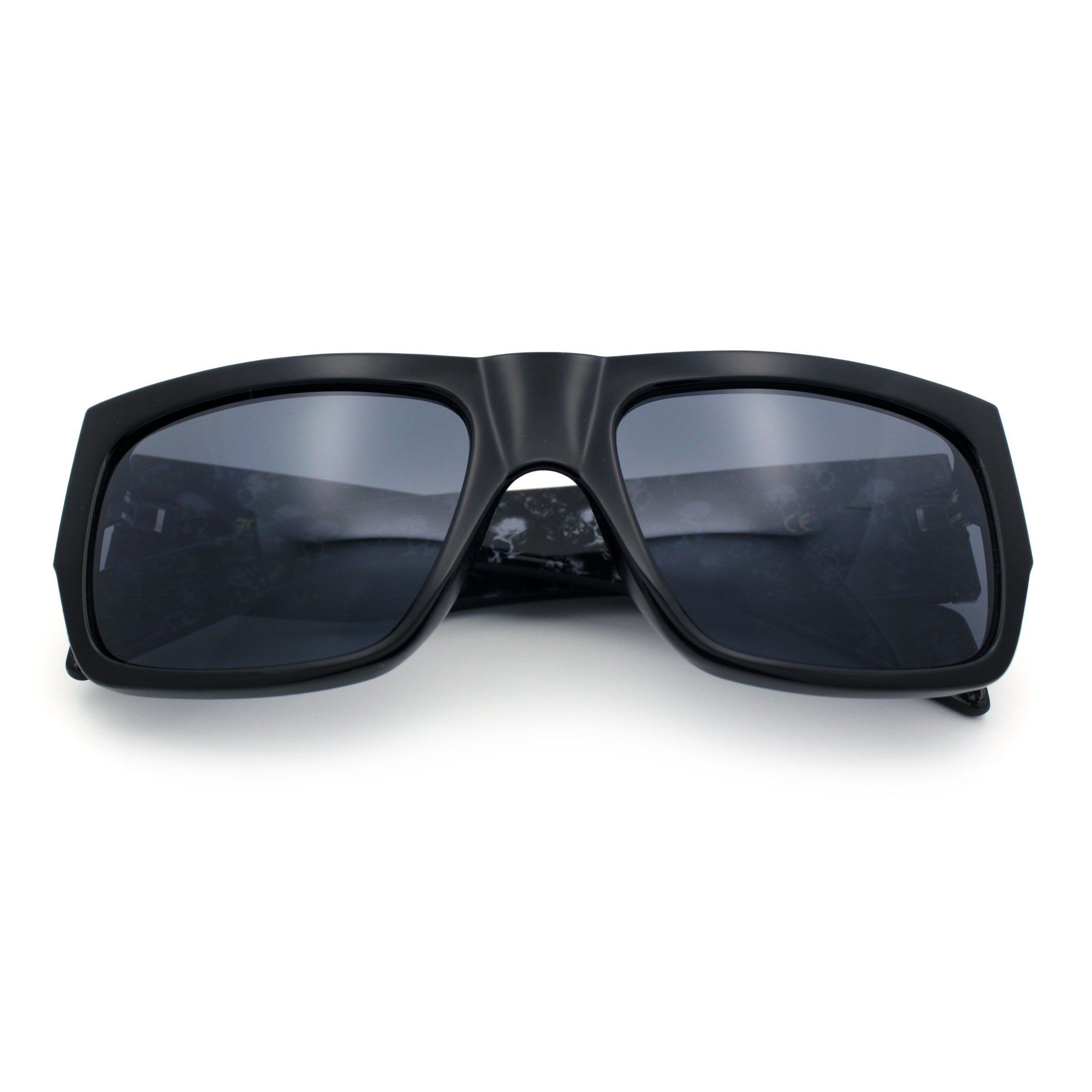 Locs Mens Skull Pattern Arm Thick Temple Rectangle Gangster Sunglasses