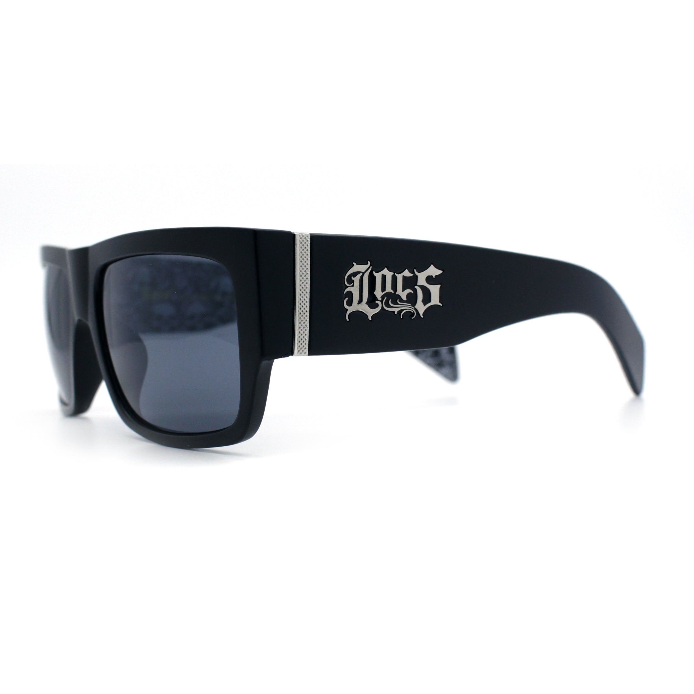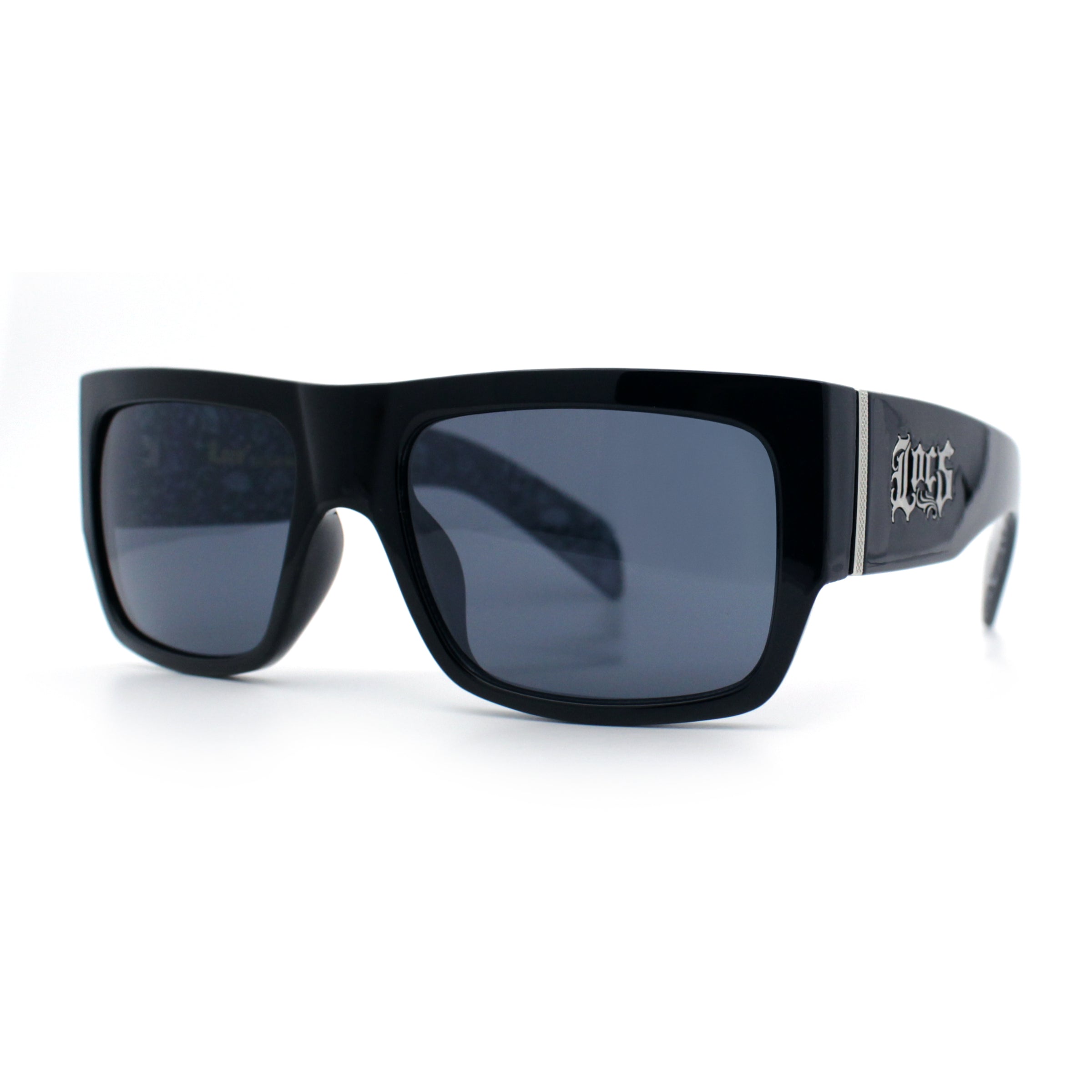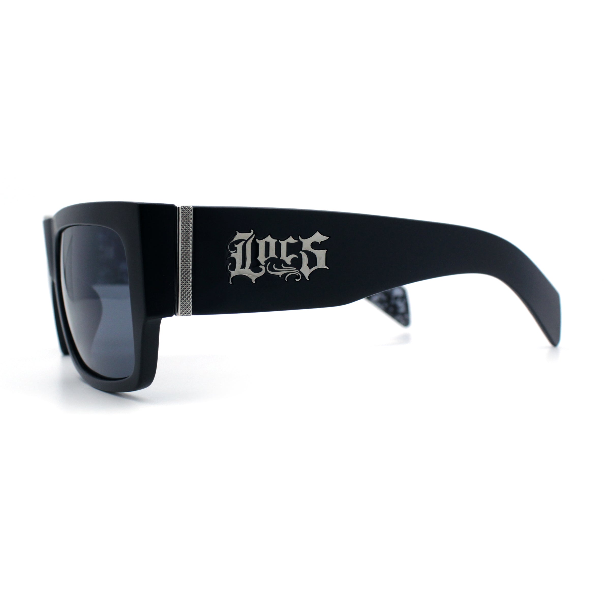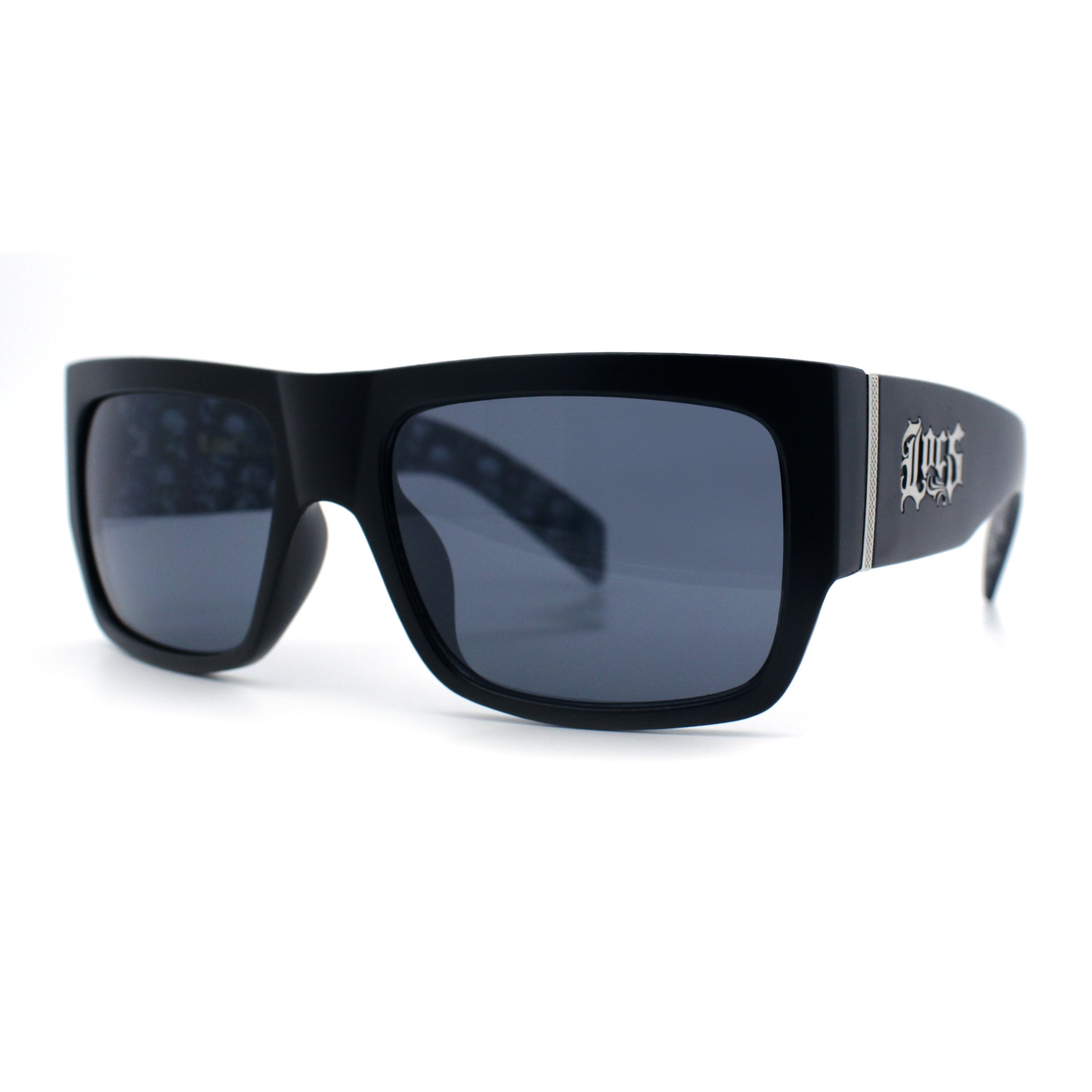 Locs Mens Skull Pattern Arm Thick Temple Rectangle Gangster Sunglasses