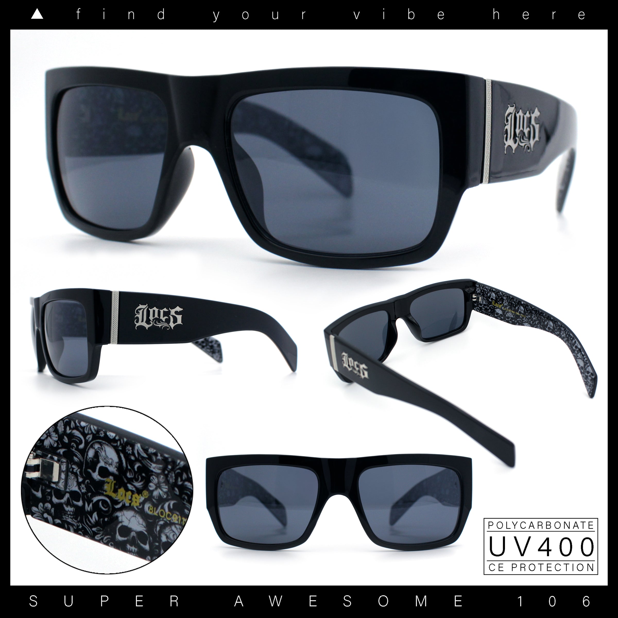 These shades from the renowned Locs brand embody the 1990s masculine aesthetic. Super bold gothic lettering logo temple extrudes pure gangster vibe. Manly skull pattern inner arms are plus! They feature high-quality 100% UV400 polycarbonate lenses and a lightweight composite plastic frame, ensuring optimal protection and comfort. (d251)