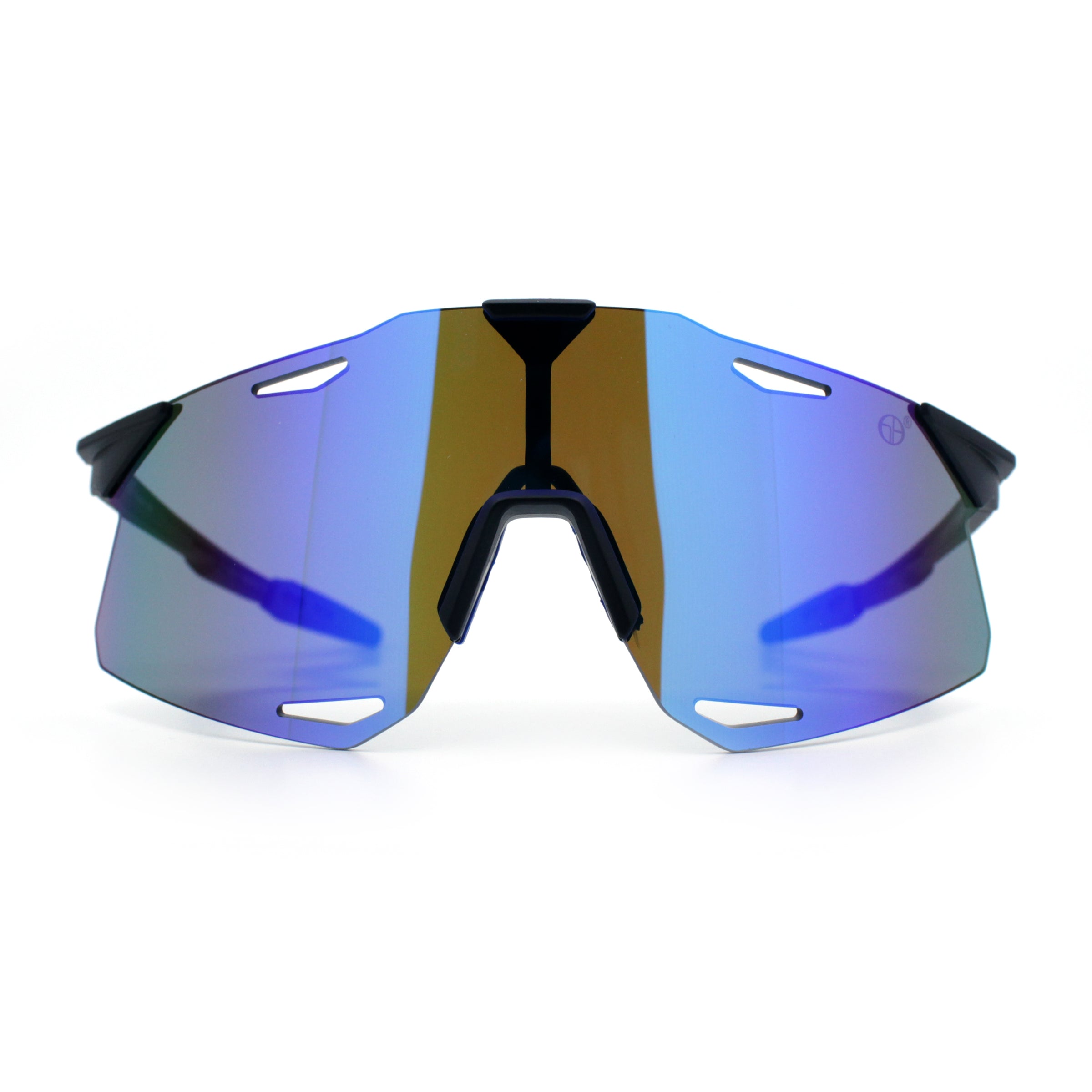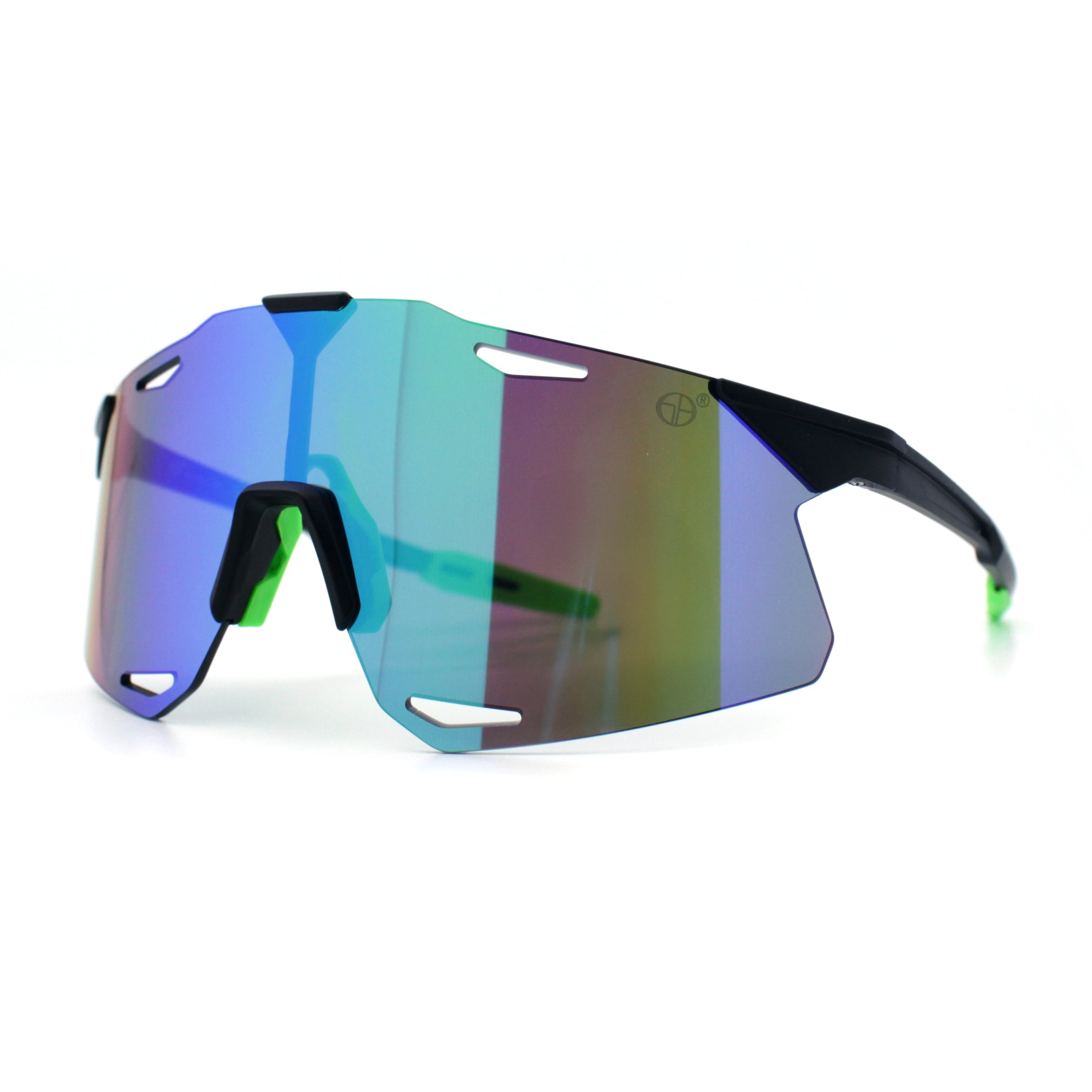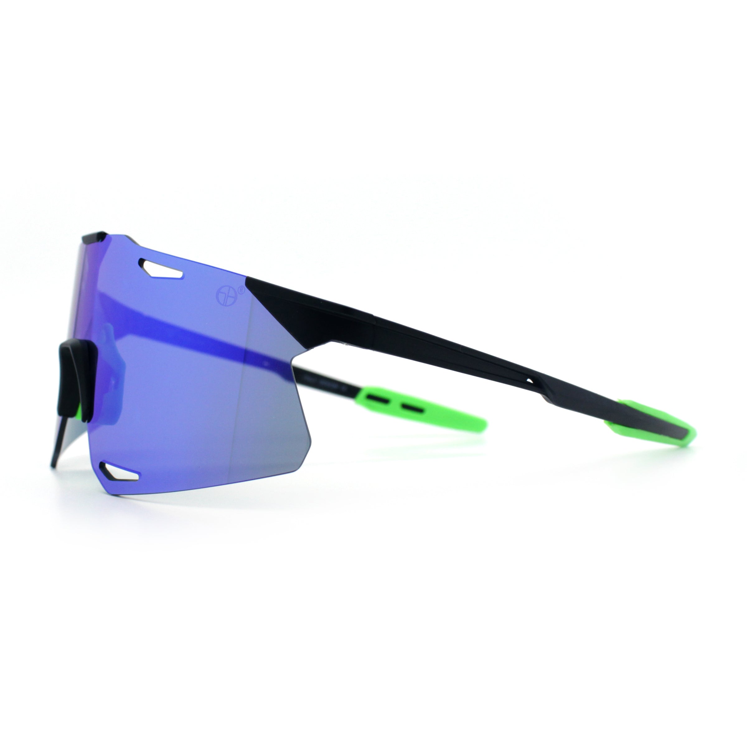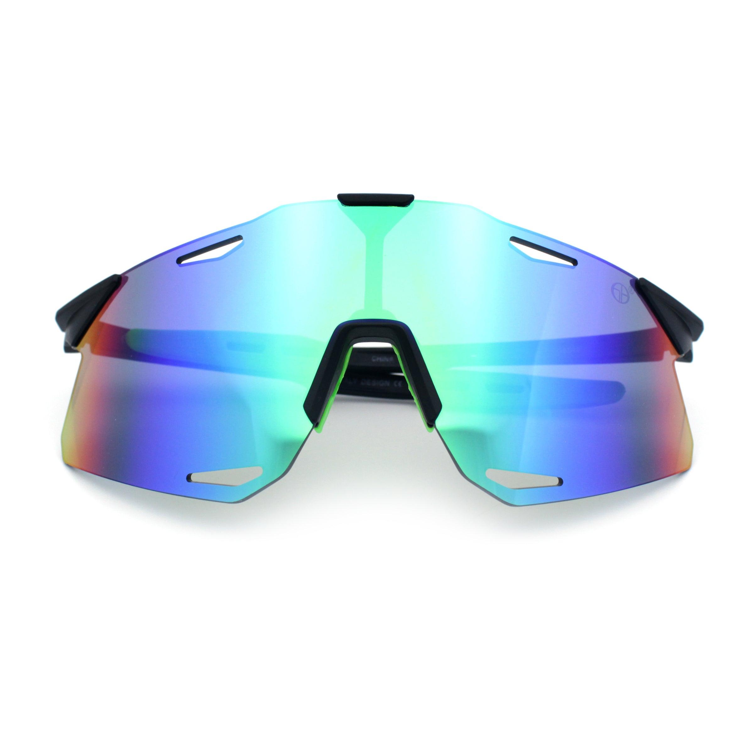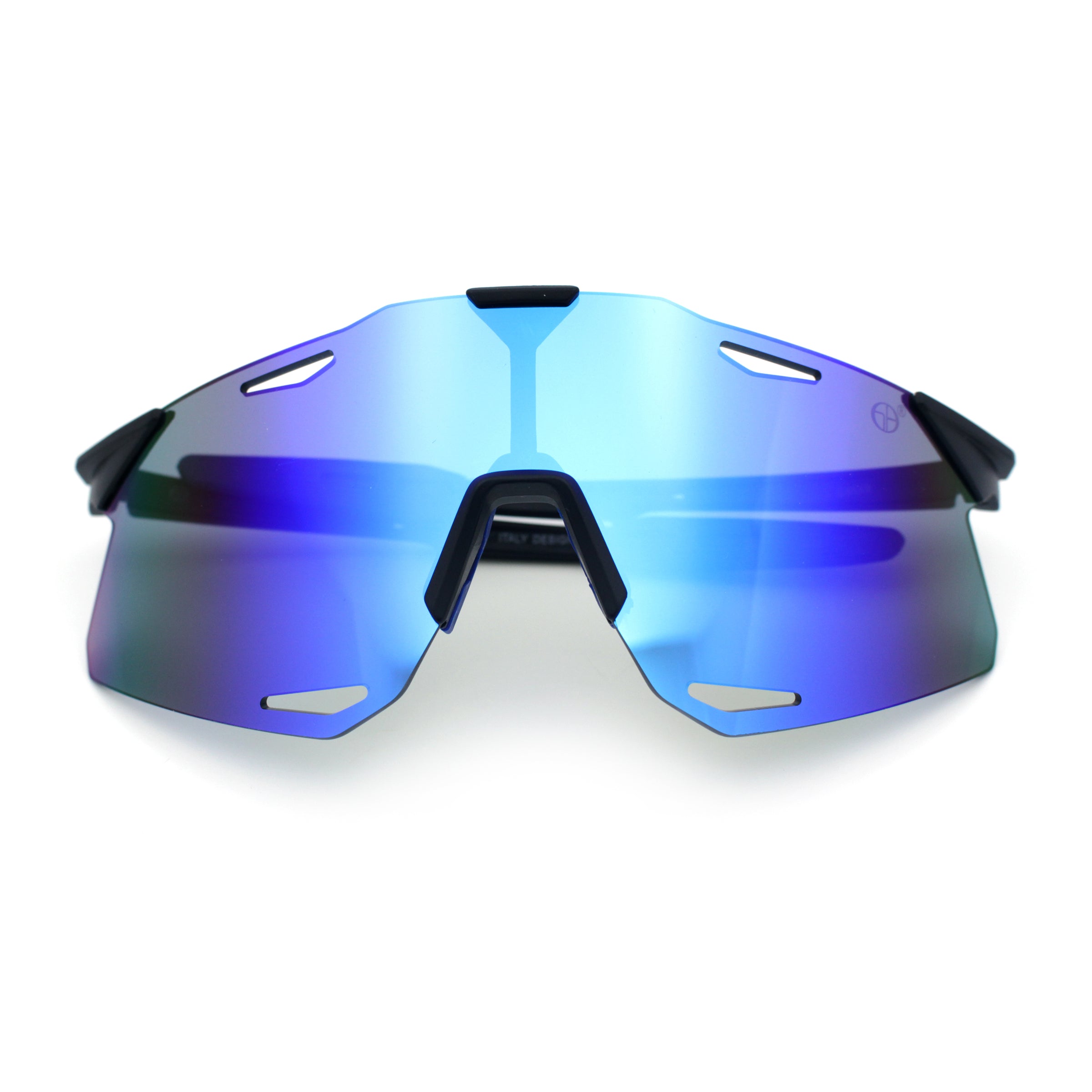 These classic large coverage rimless shield sunglasses are perfect for outdoor sports and recreation. The premium, shatterproof, colored mirror, and 100% UV400 polycarbonate lenses provide optimal performance while the super lightweight wrap-around design offers a bold, runner style and athletic look. The sophisticated pop color mirror options add a sportsman's edge. (d253)