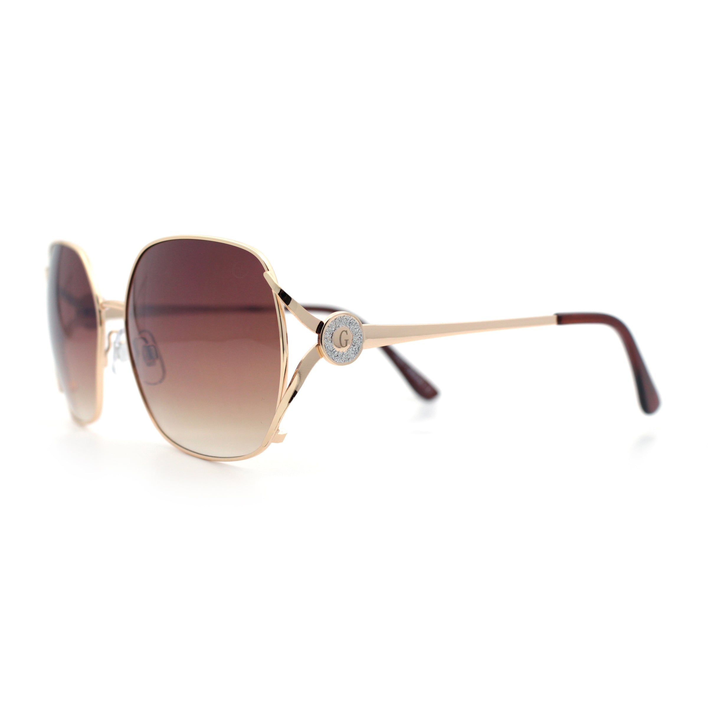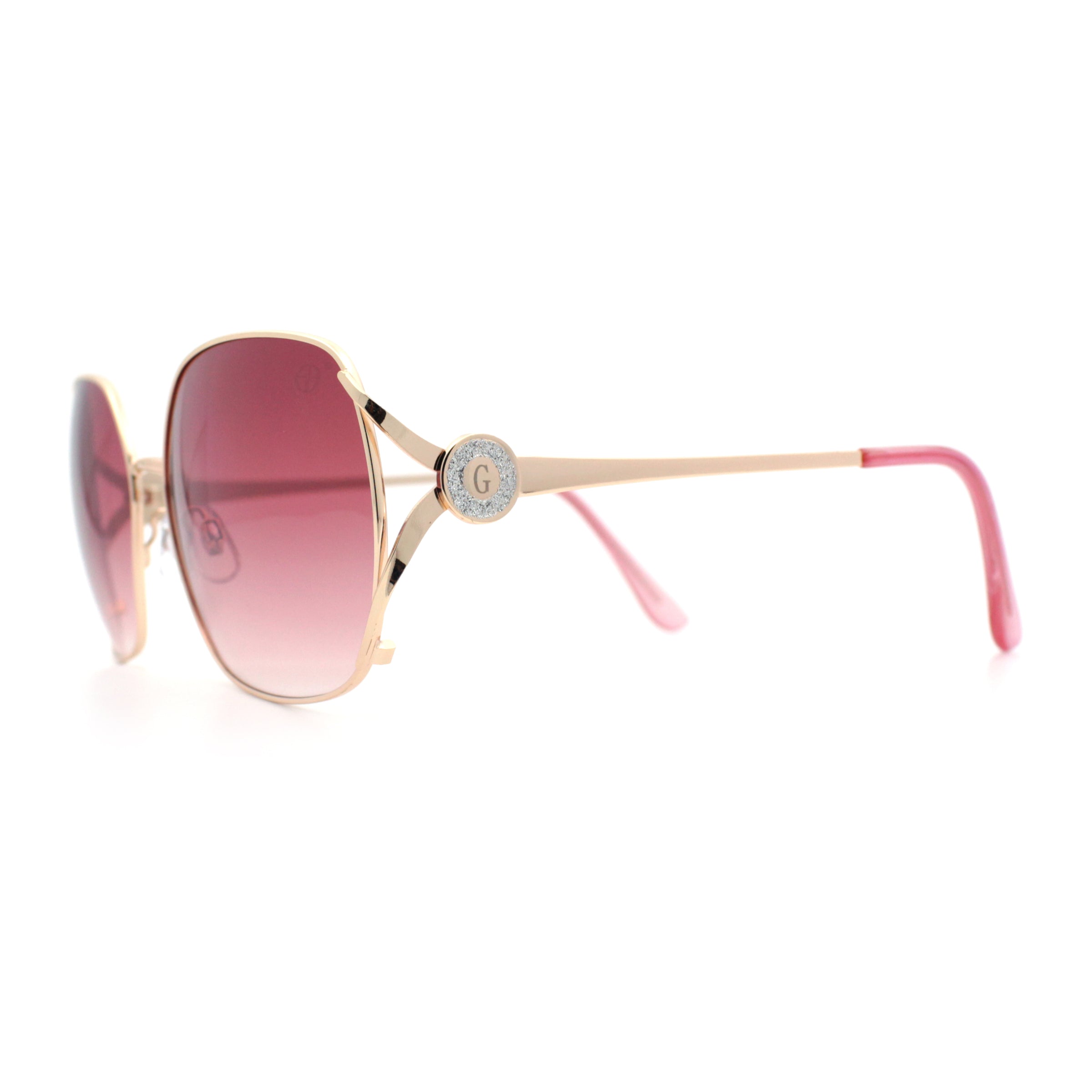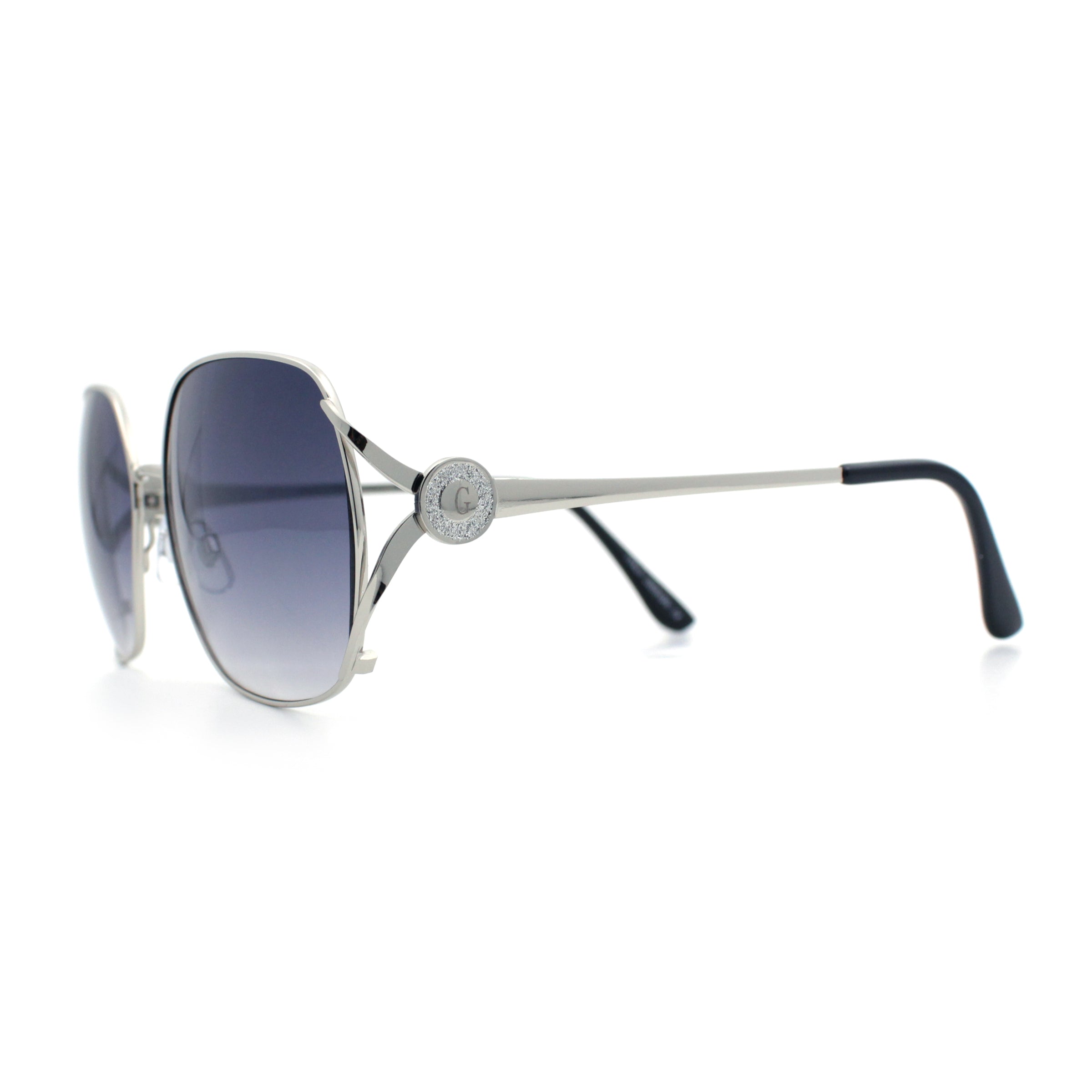 Womens Glitter Button Jewel Ribbon Hinge Metal Butterfly Sunglasses