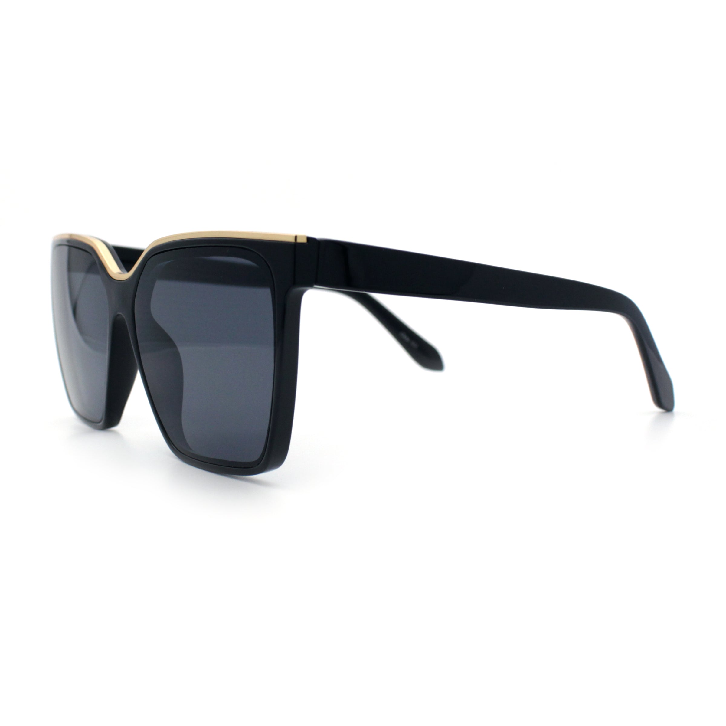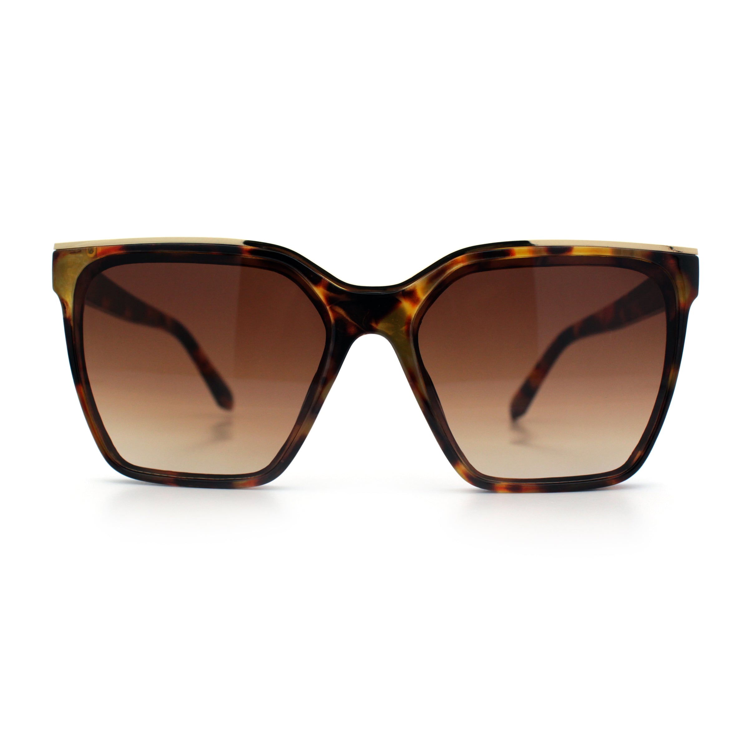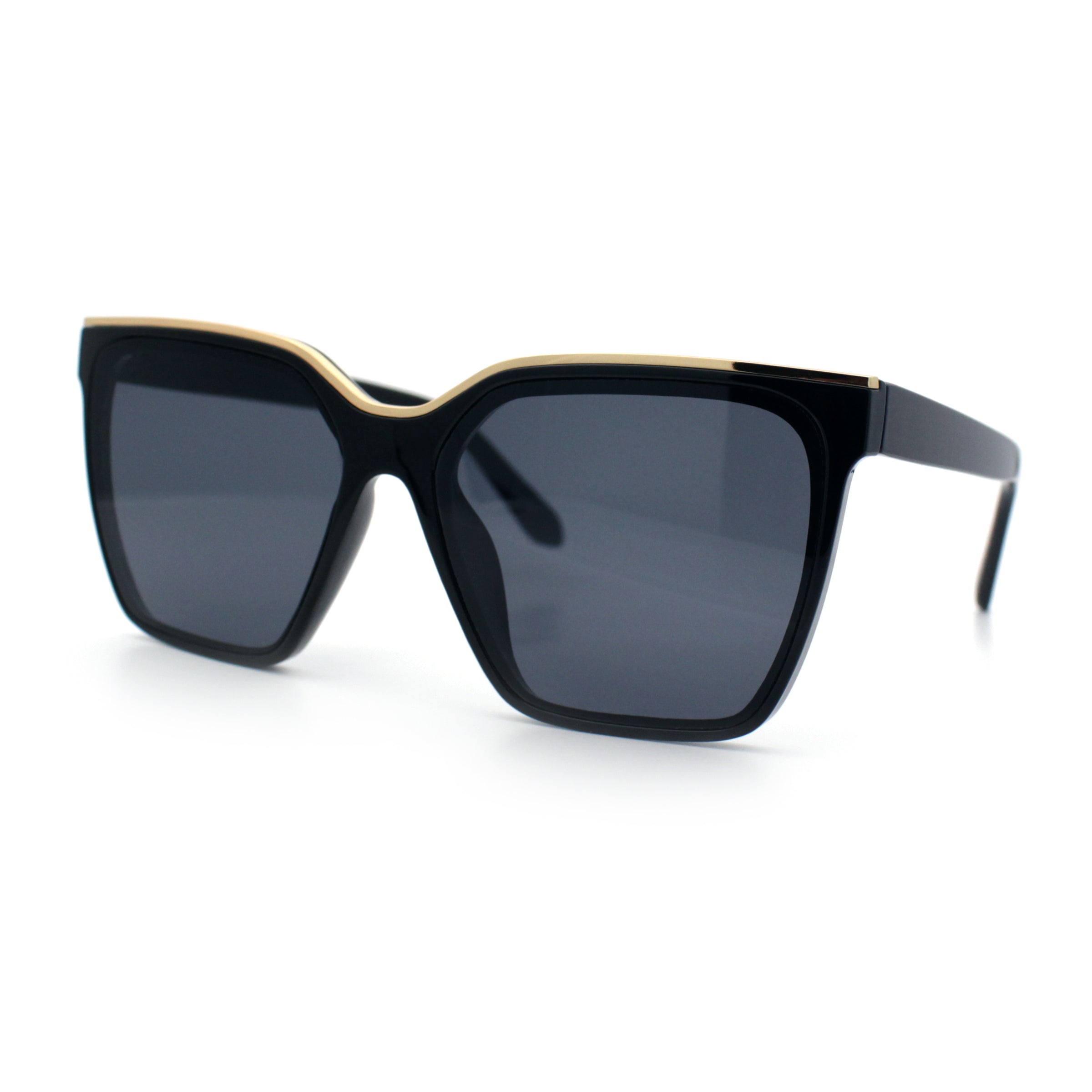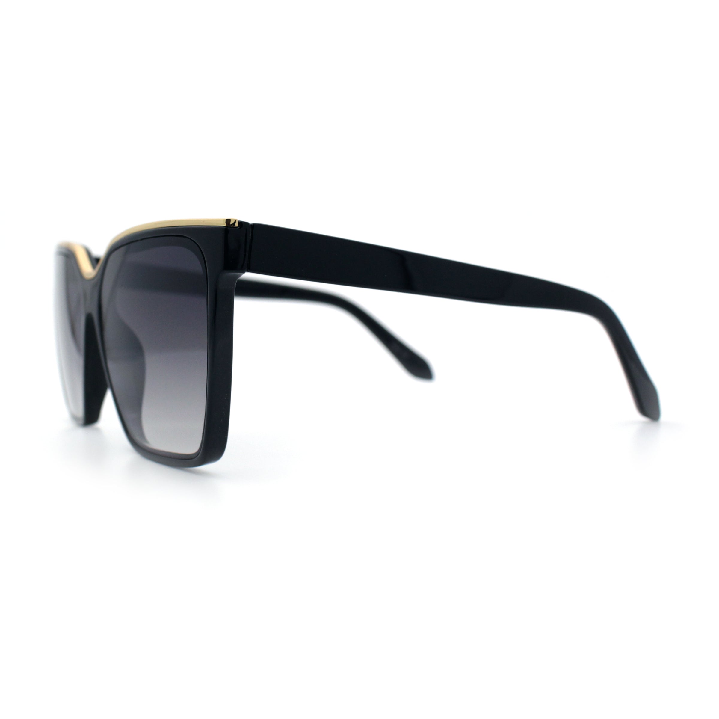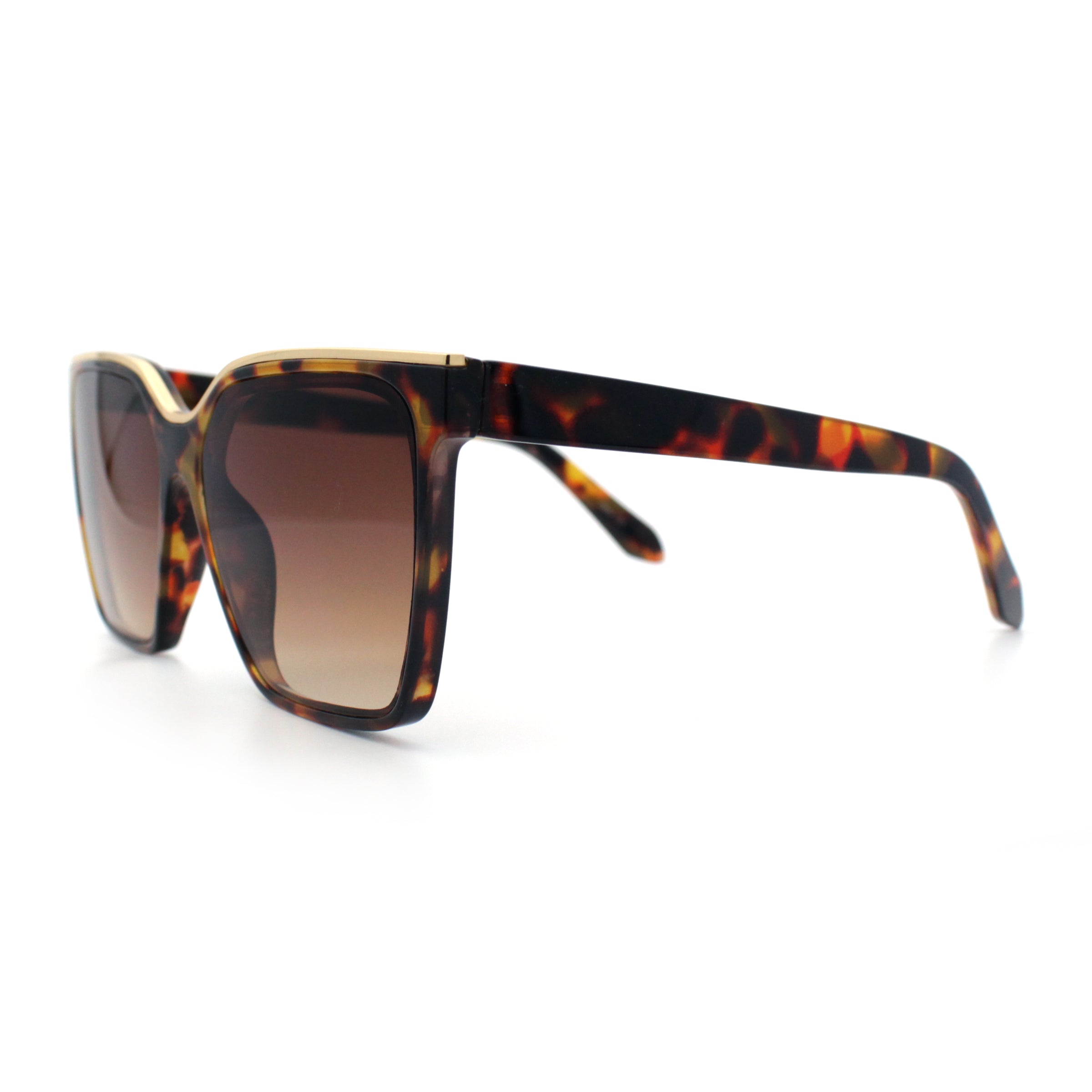 Womens Metal Brow Oversized High Temple Rectangle Plastic Sunglasses