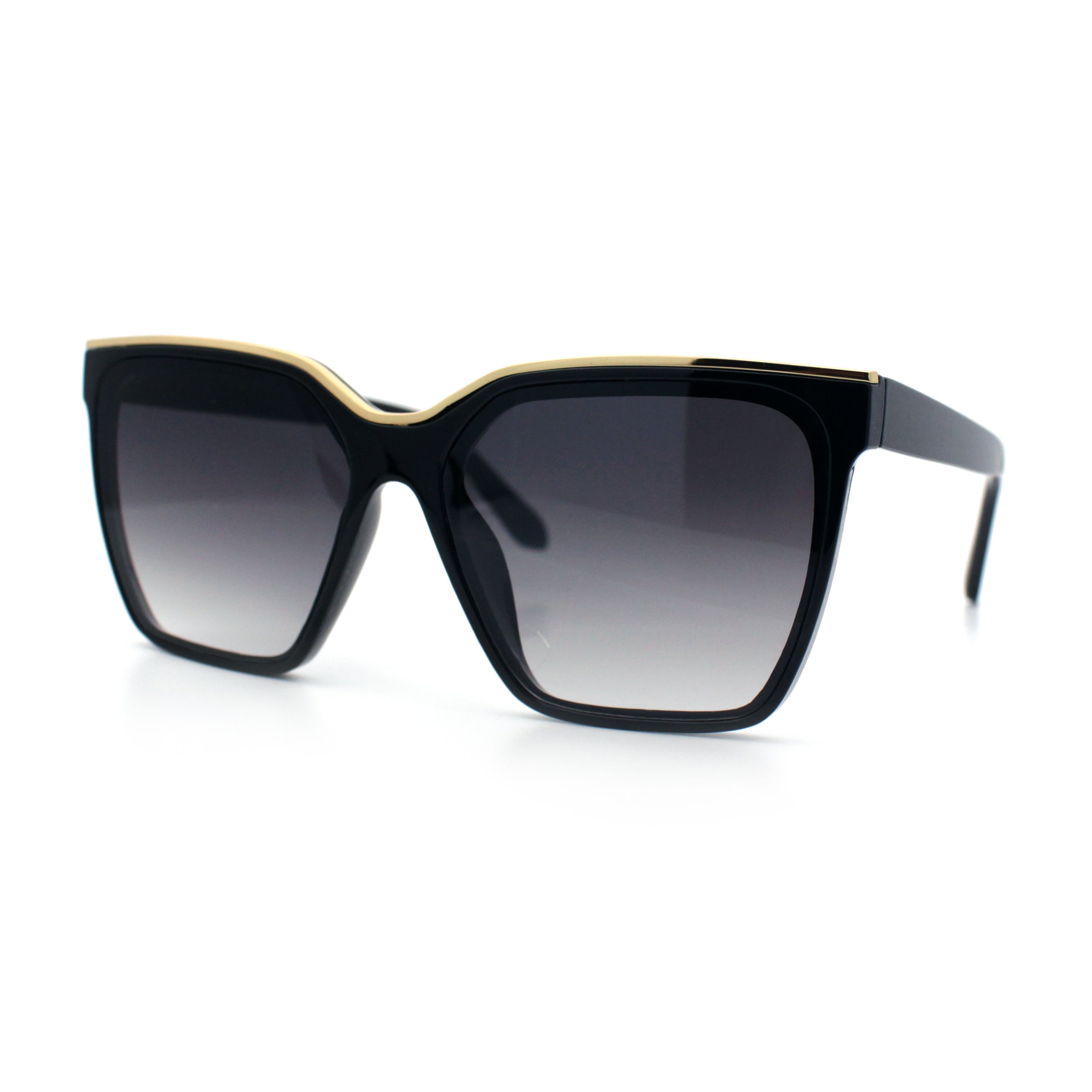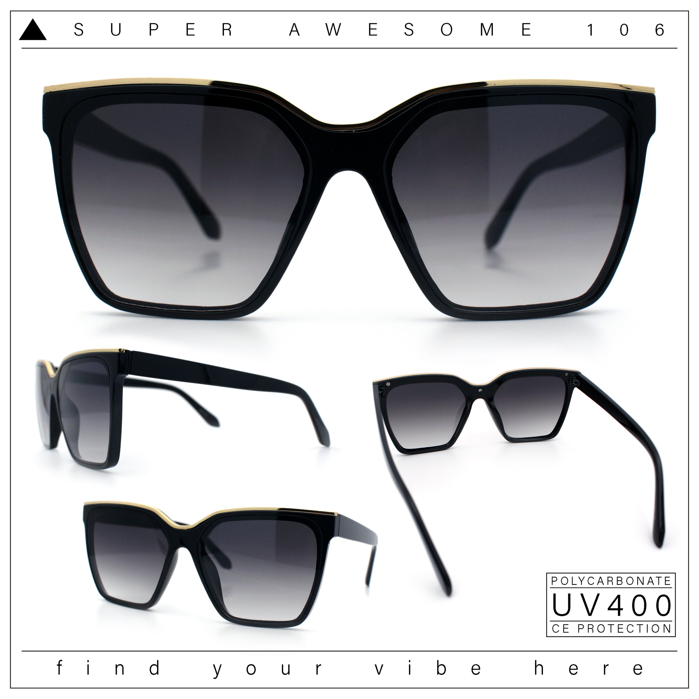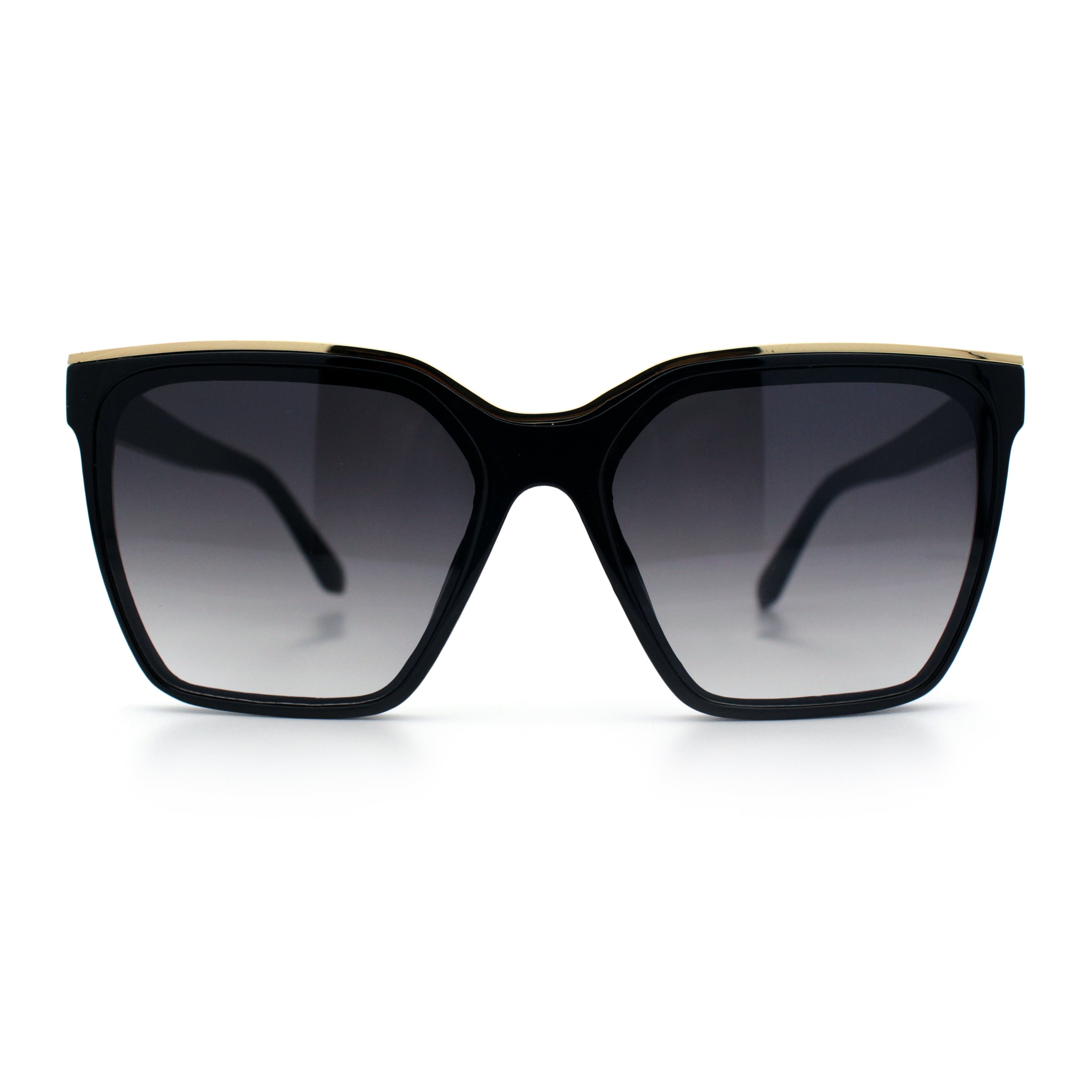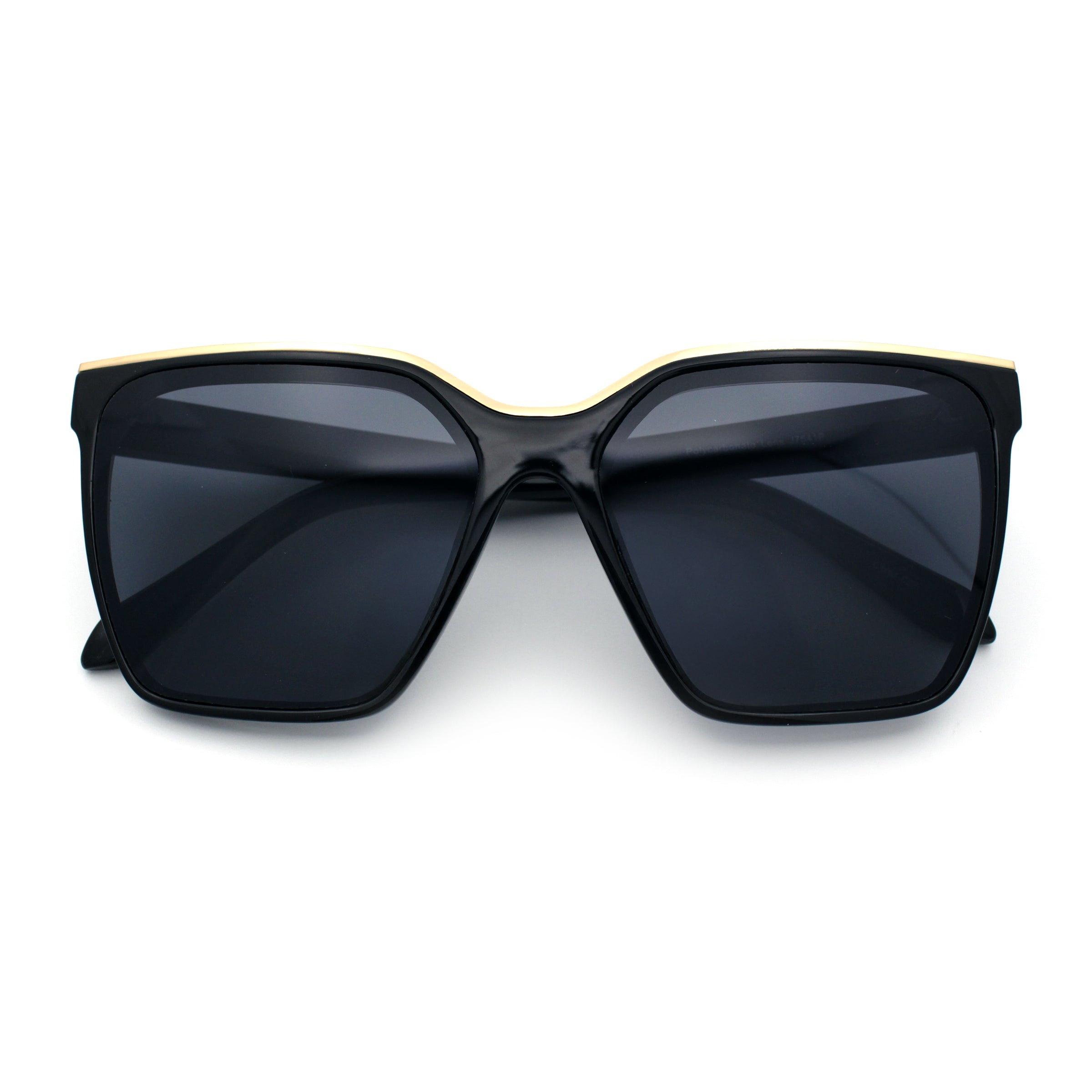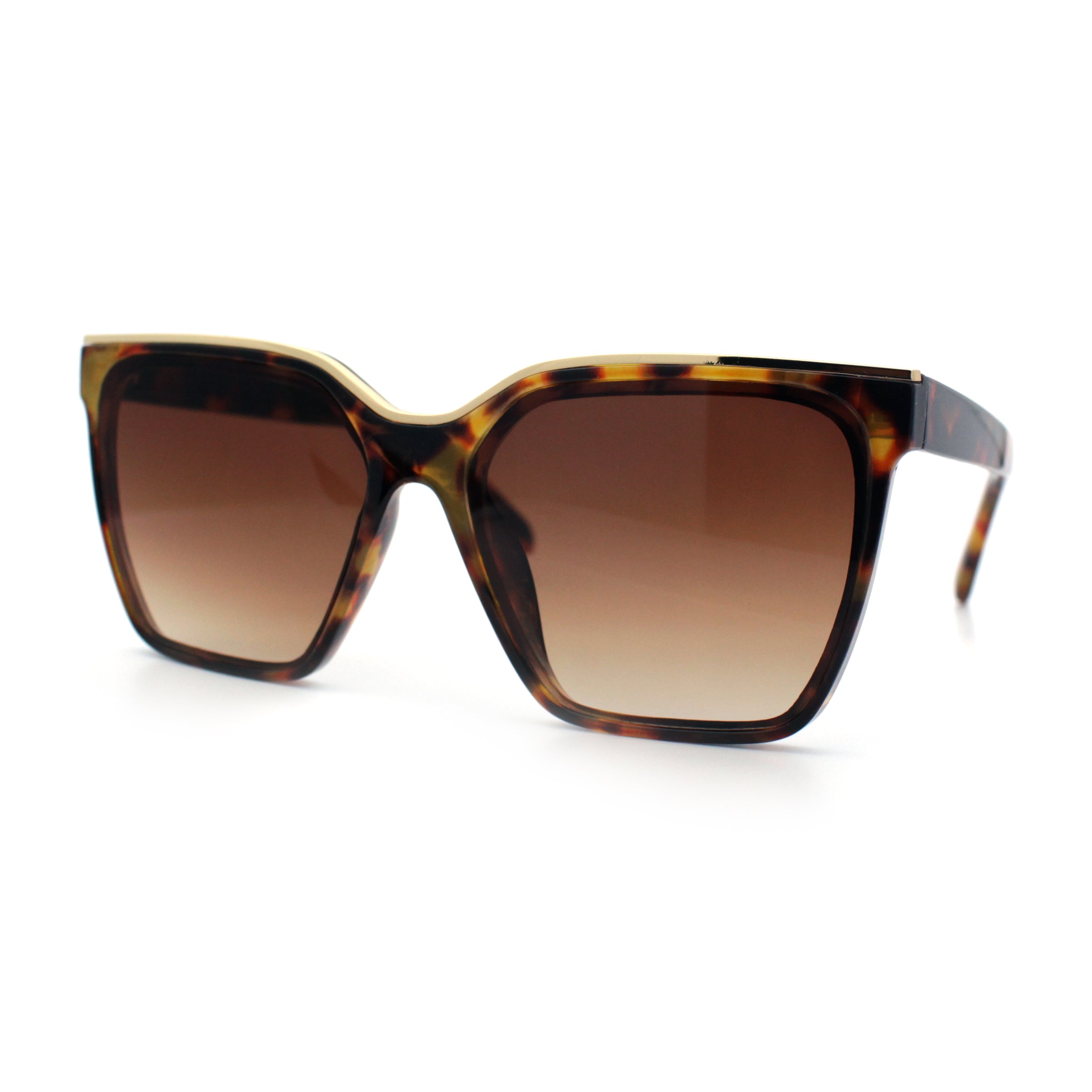 Womens Metal Brow Oversized High Temple Rectangle Plastic Sunglasses