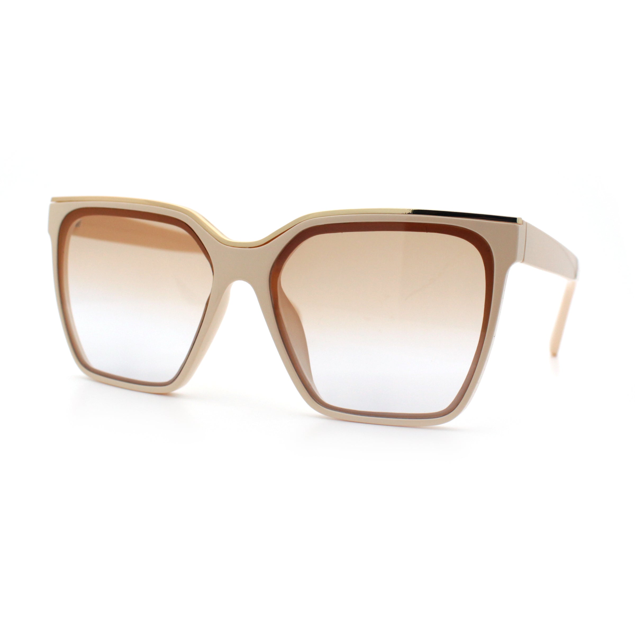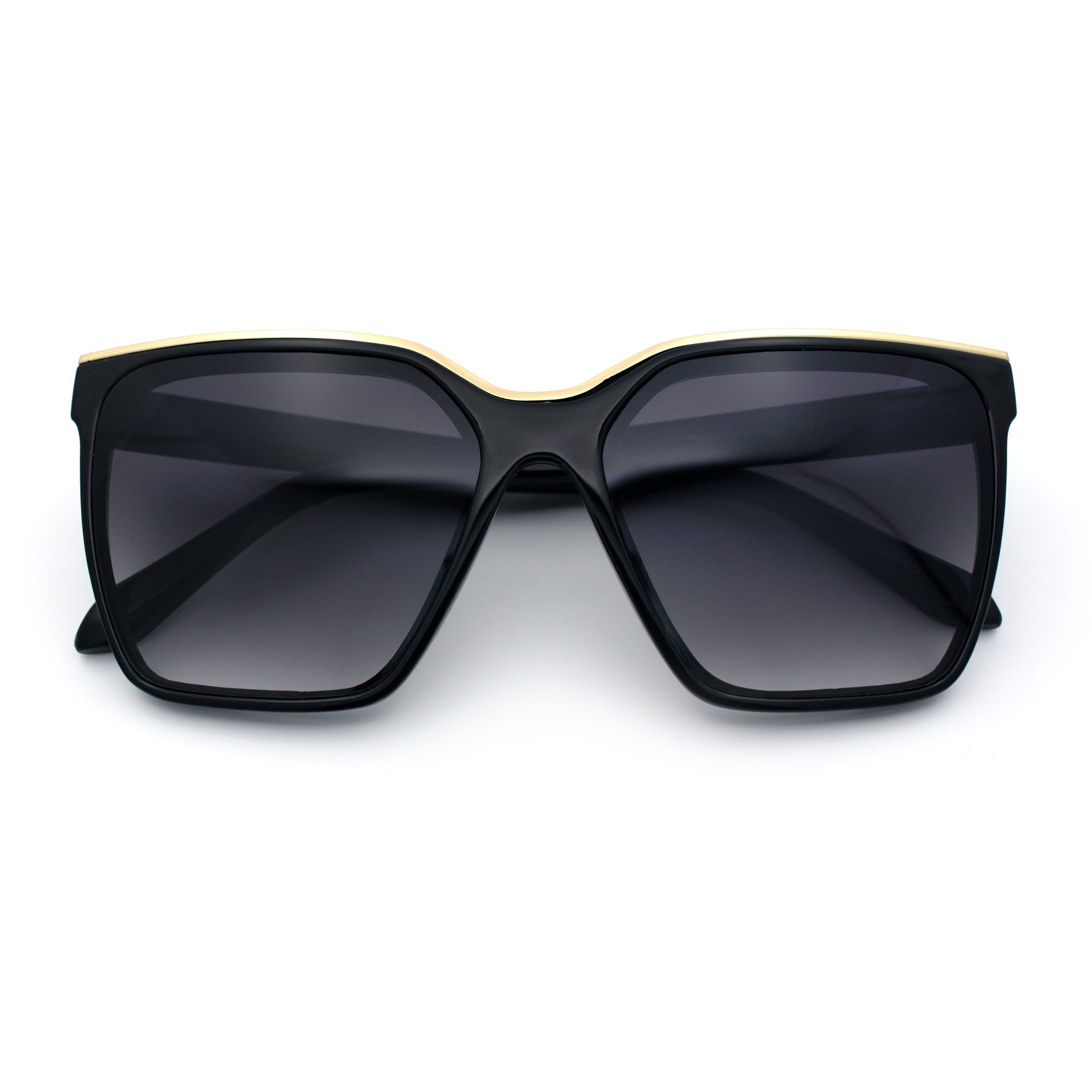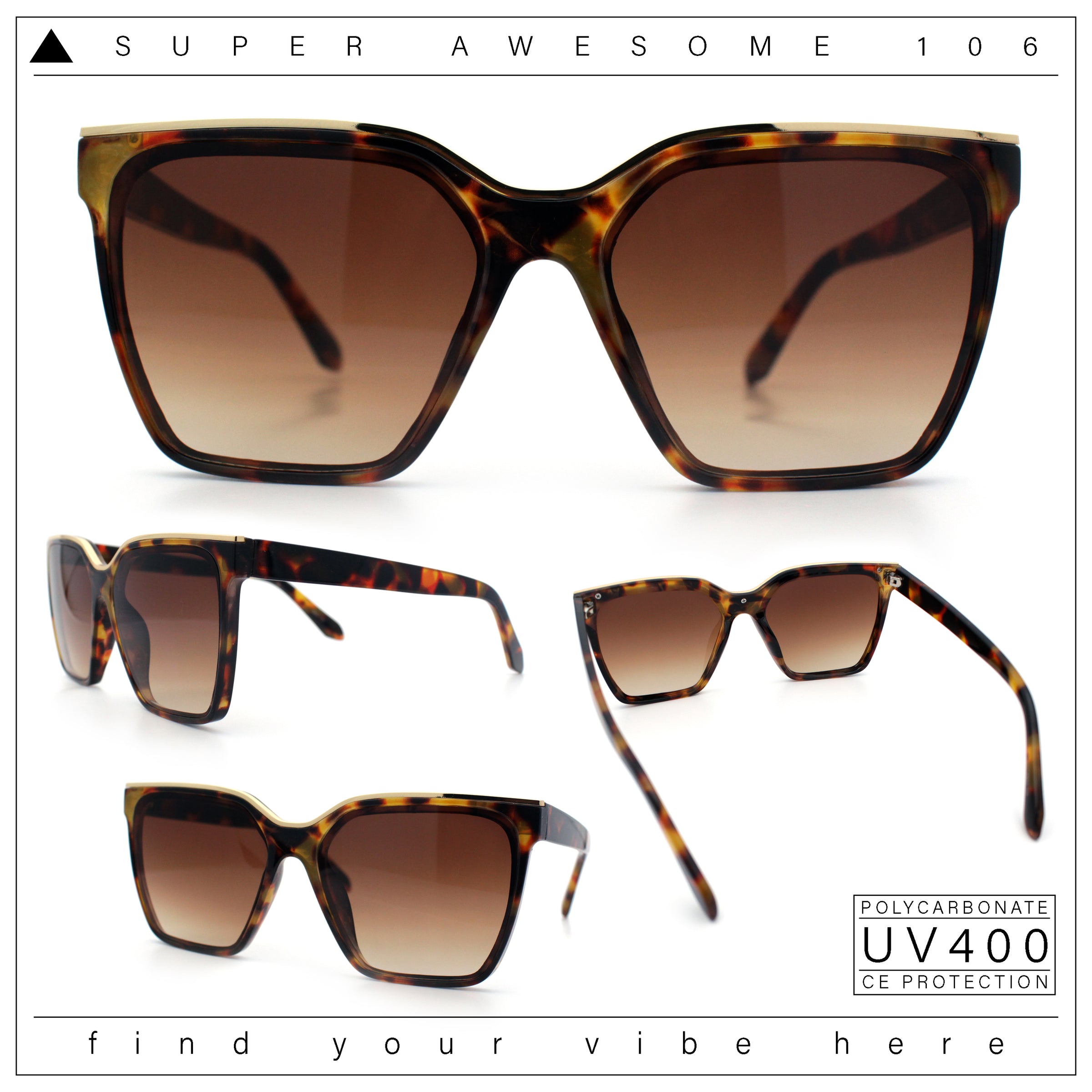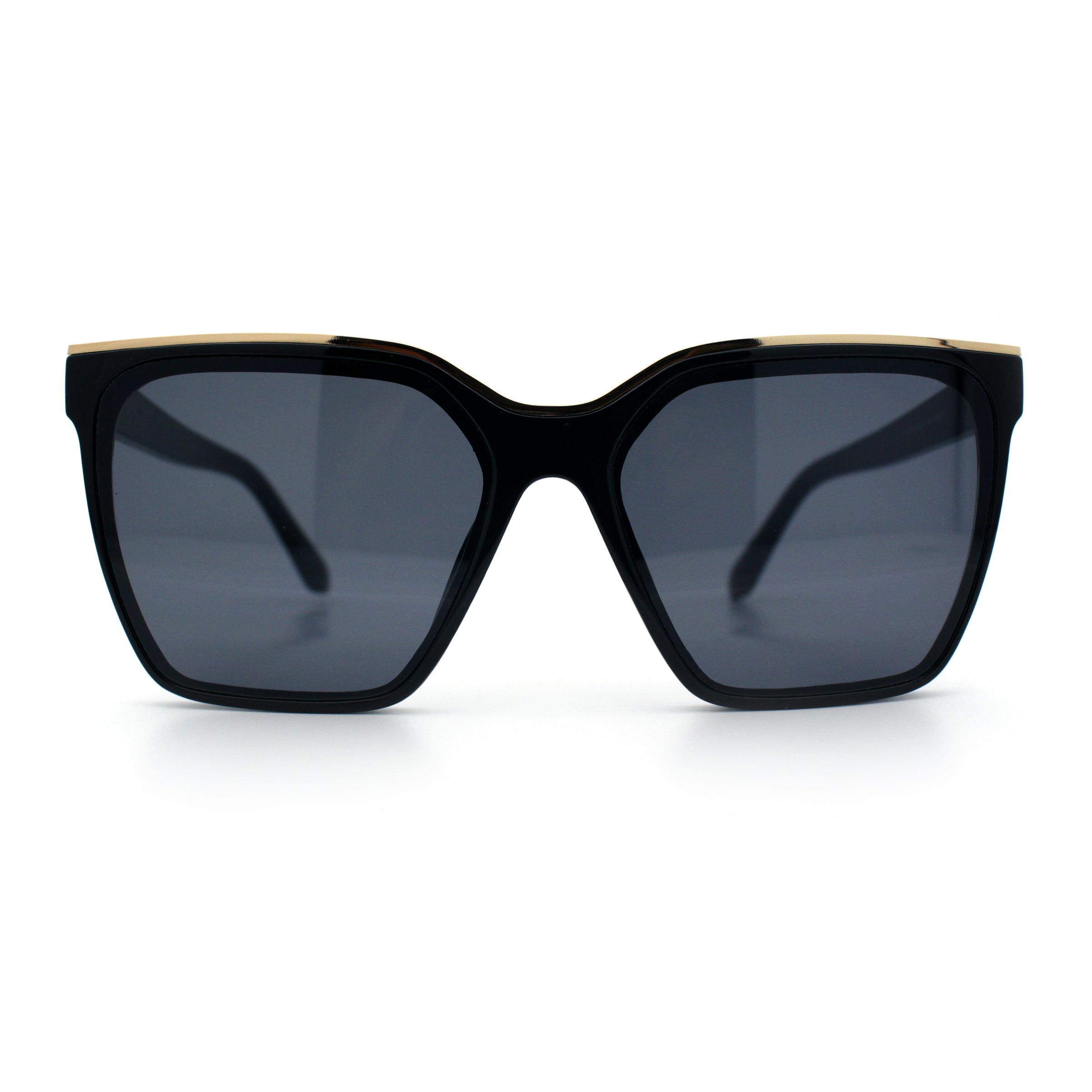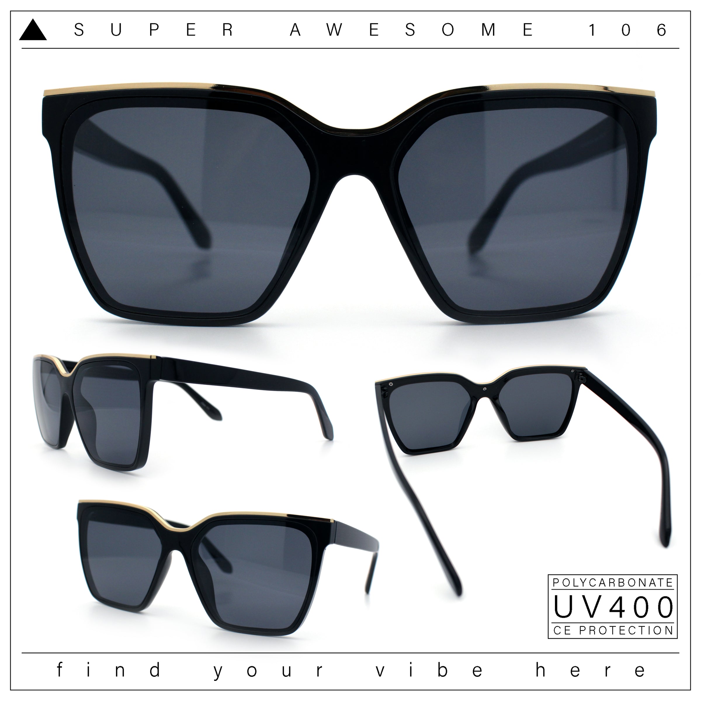 Womens Metal Brow Oversized High Temple Rectangle Plastic Sunglasses