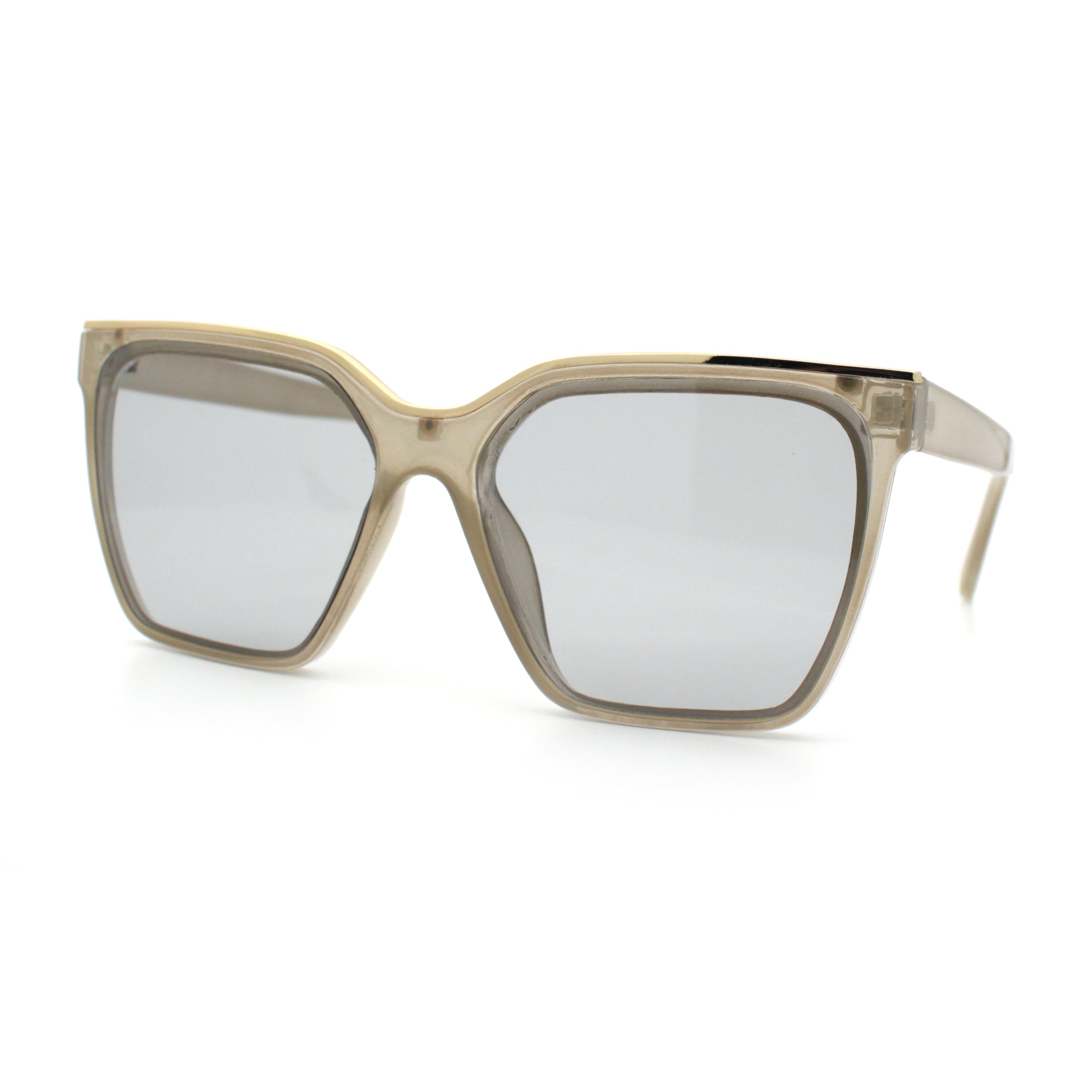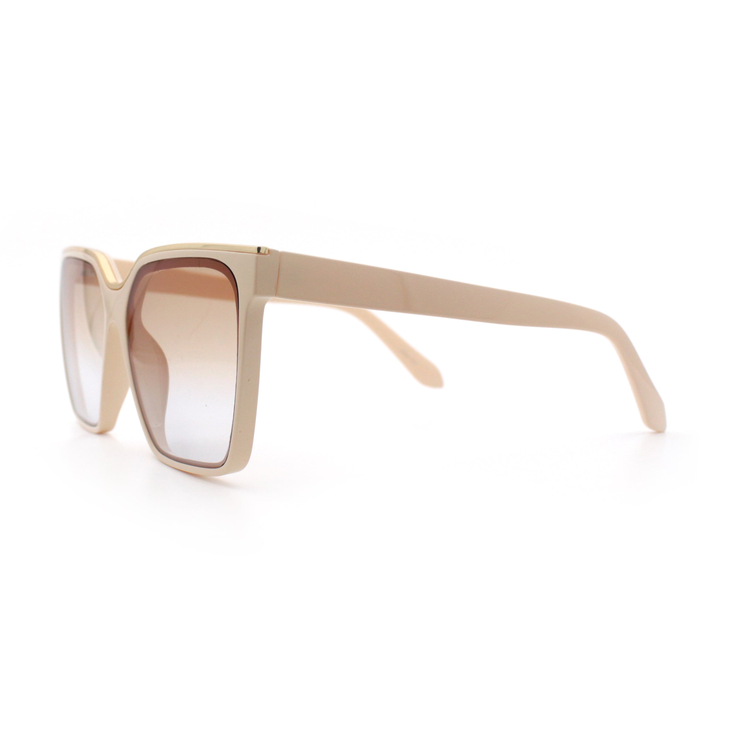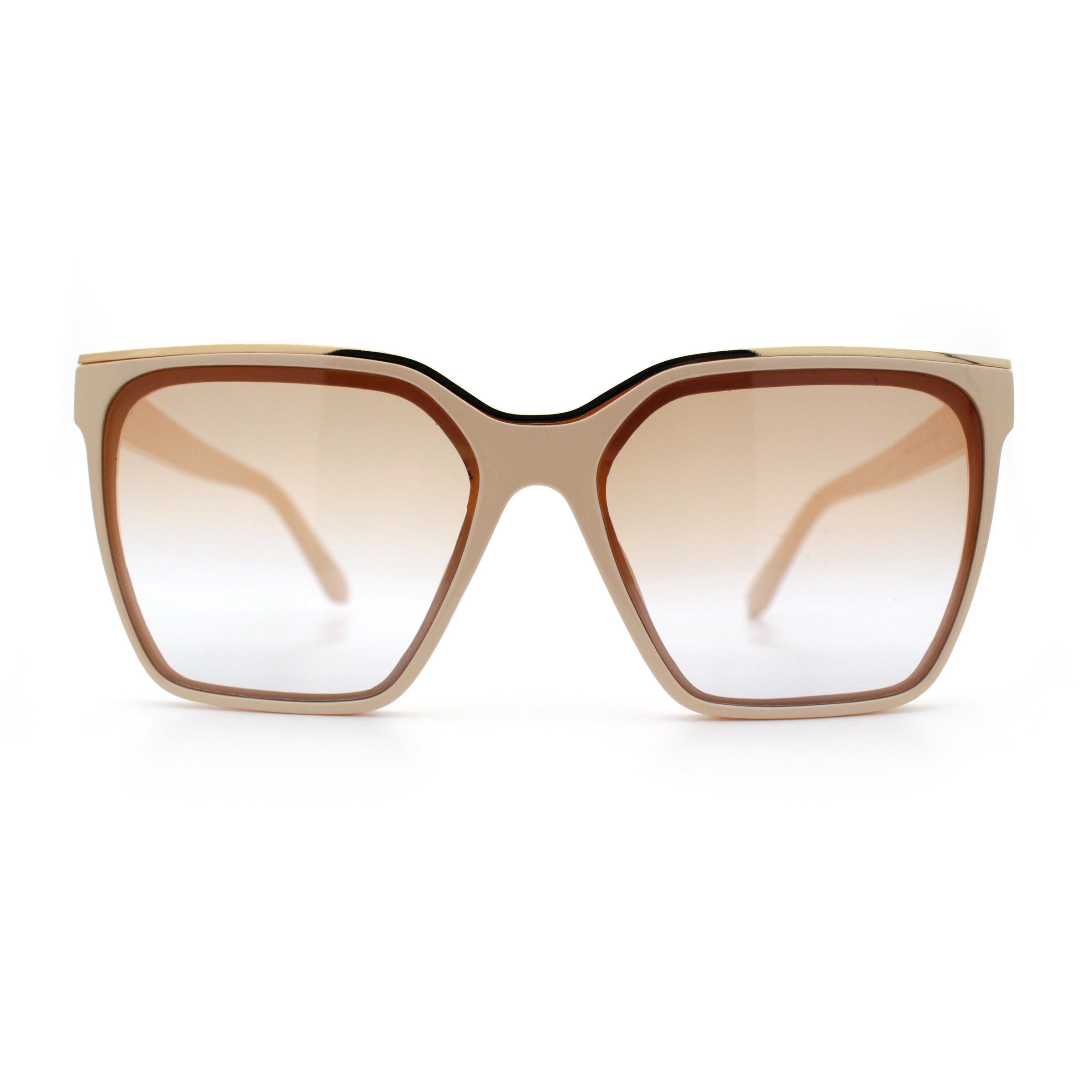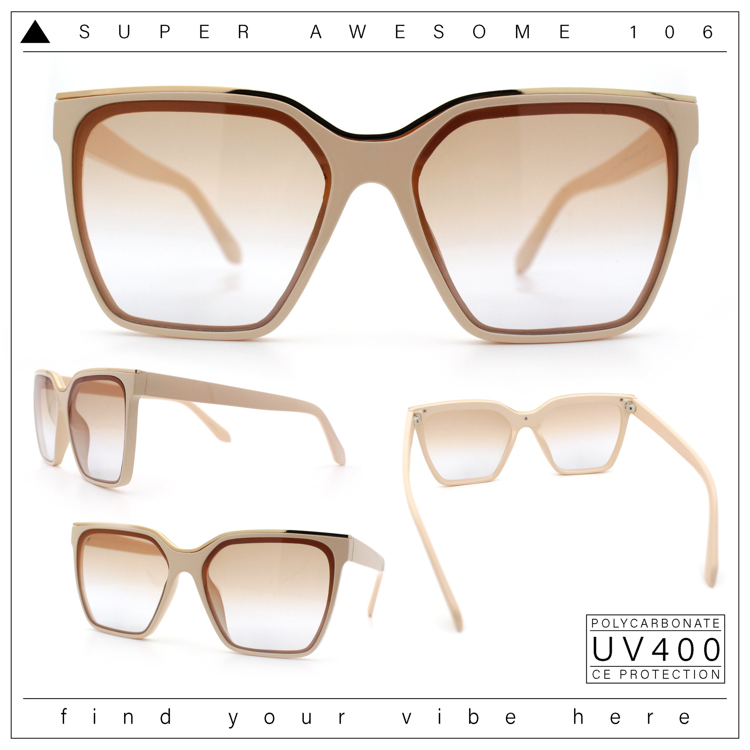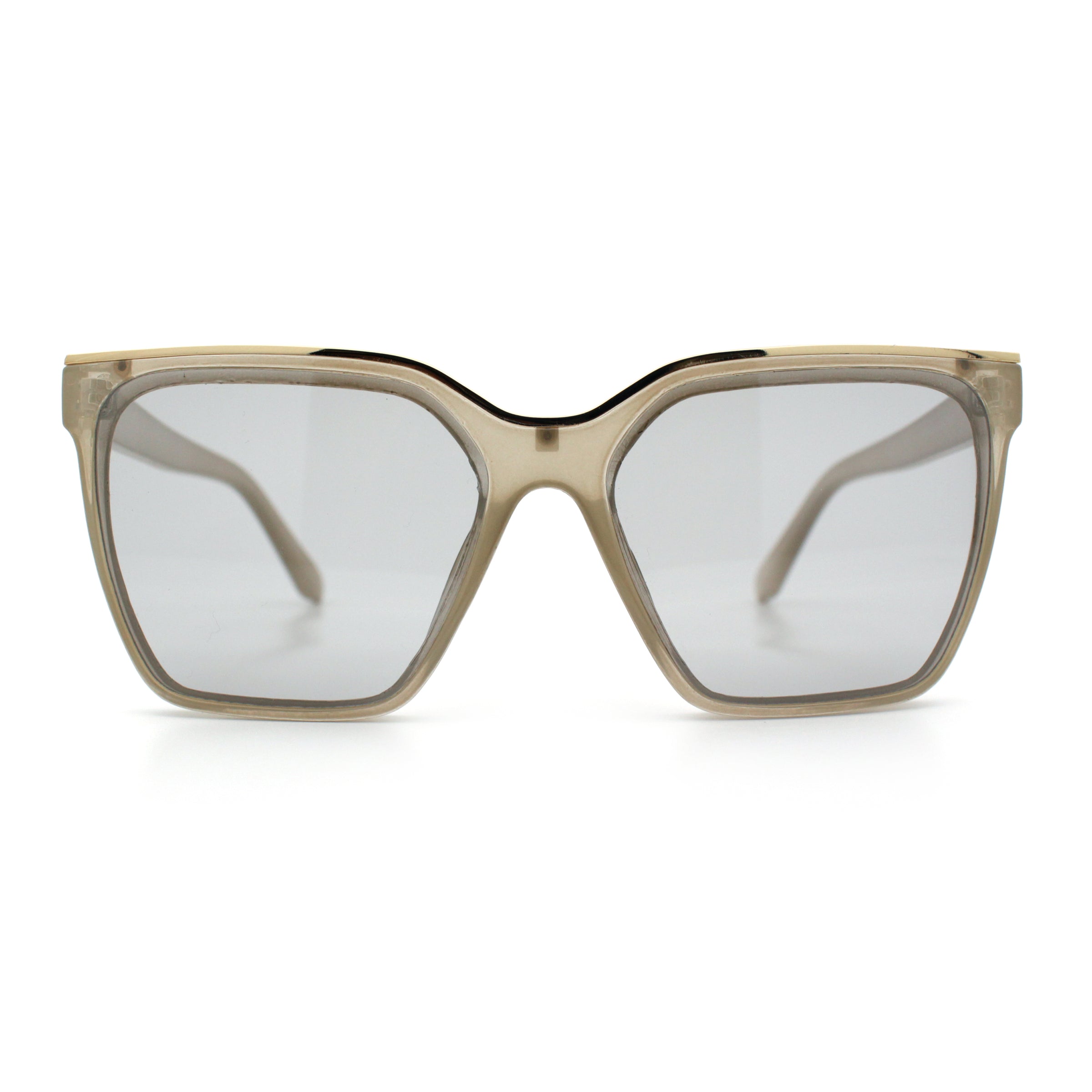 Womens Metal Brow Oversized High Temple Rectangle Plastic Sunglasses