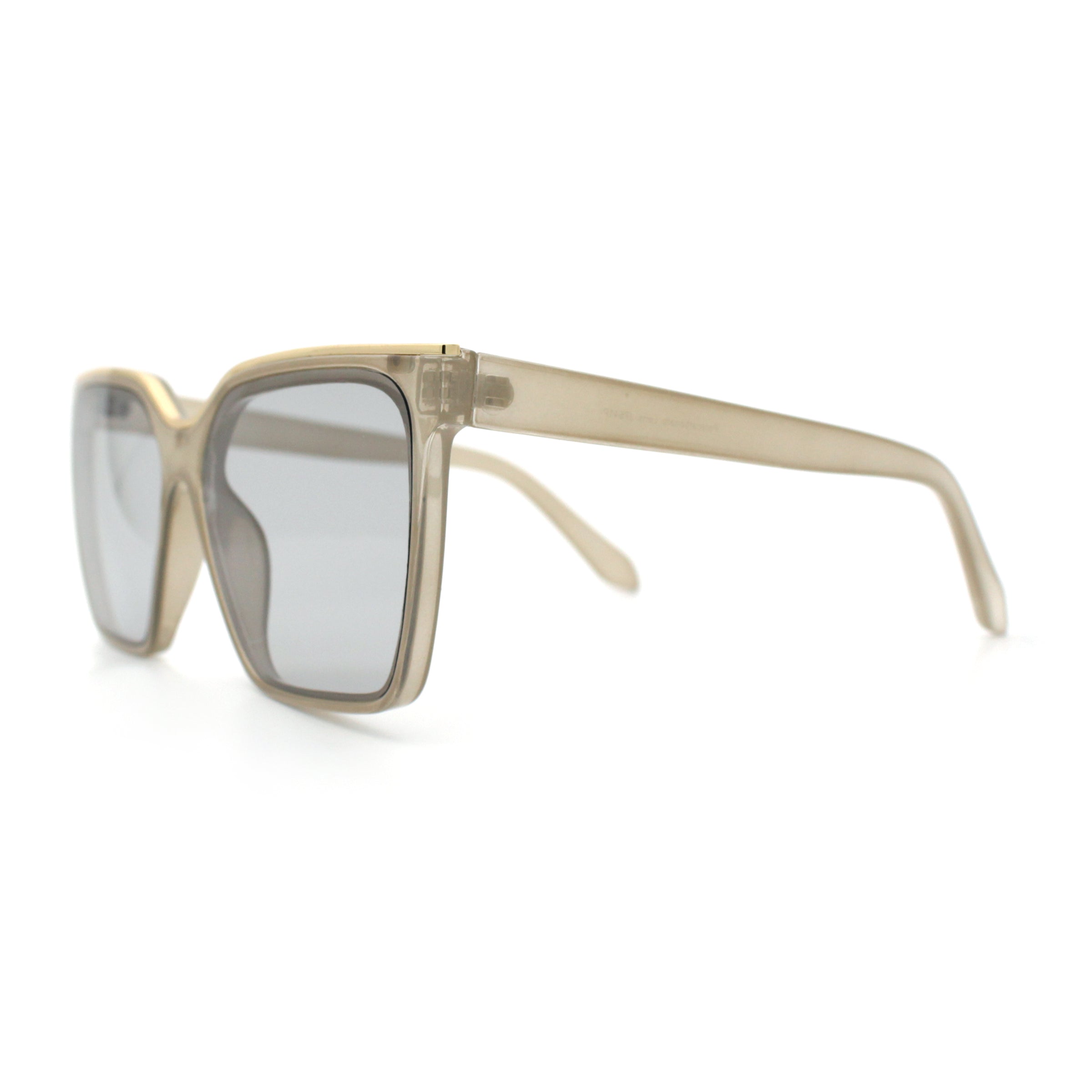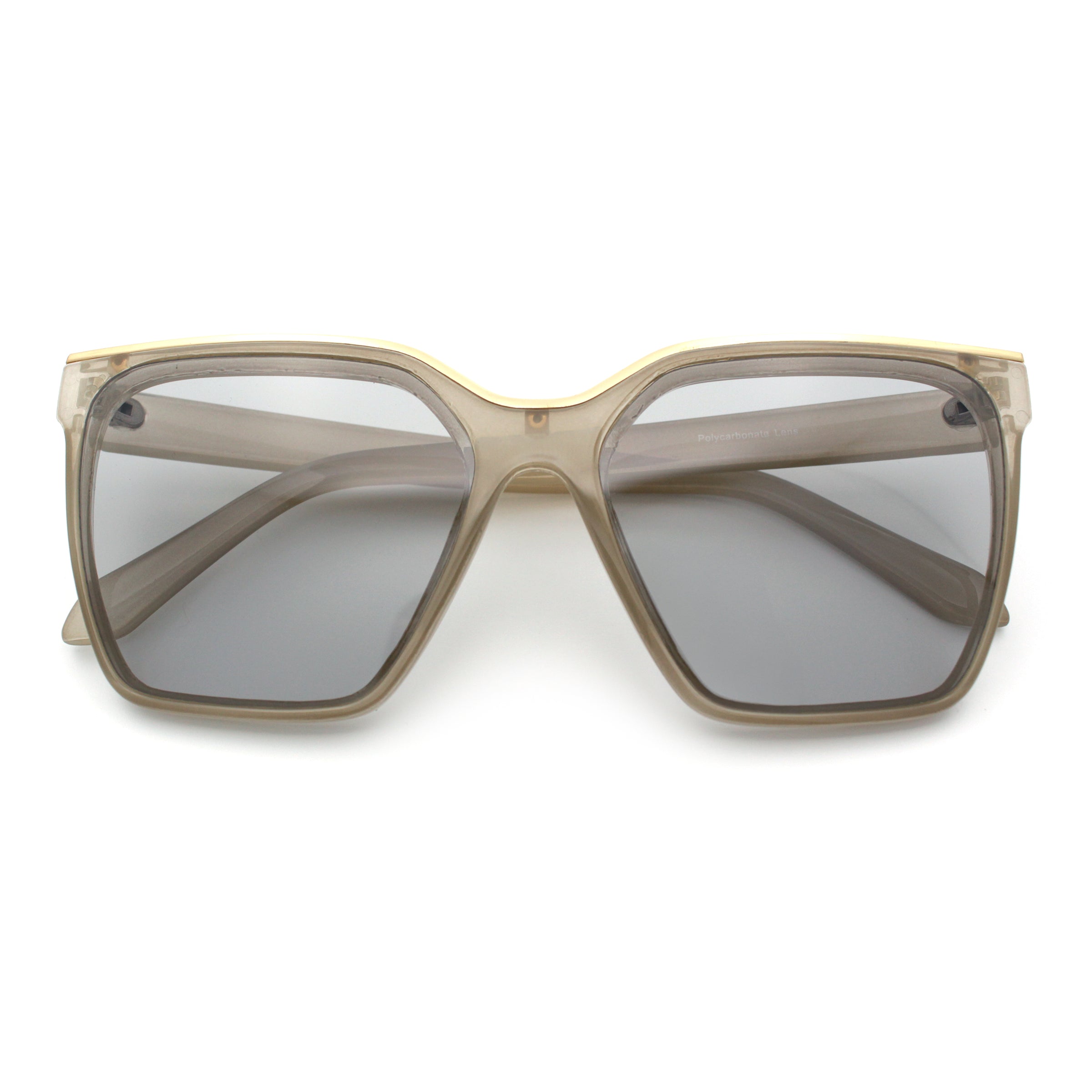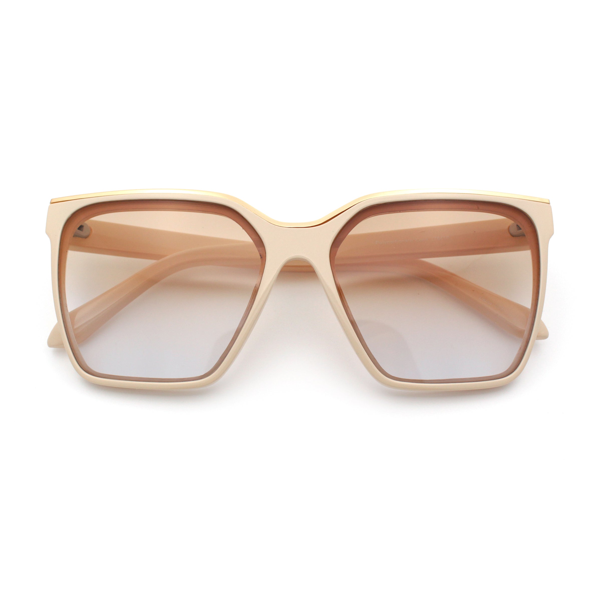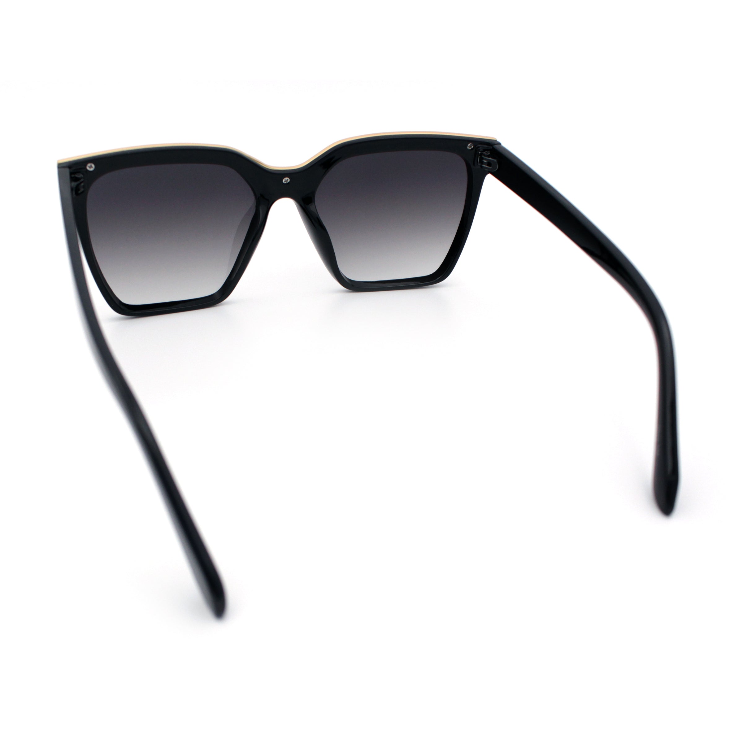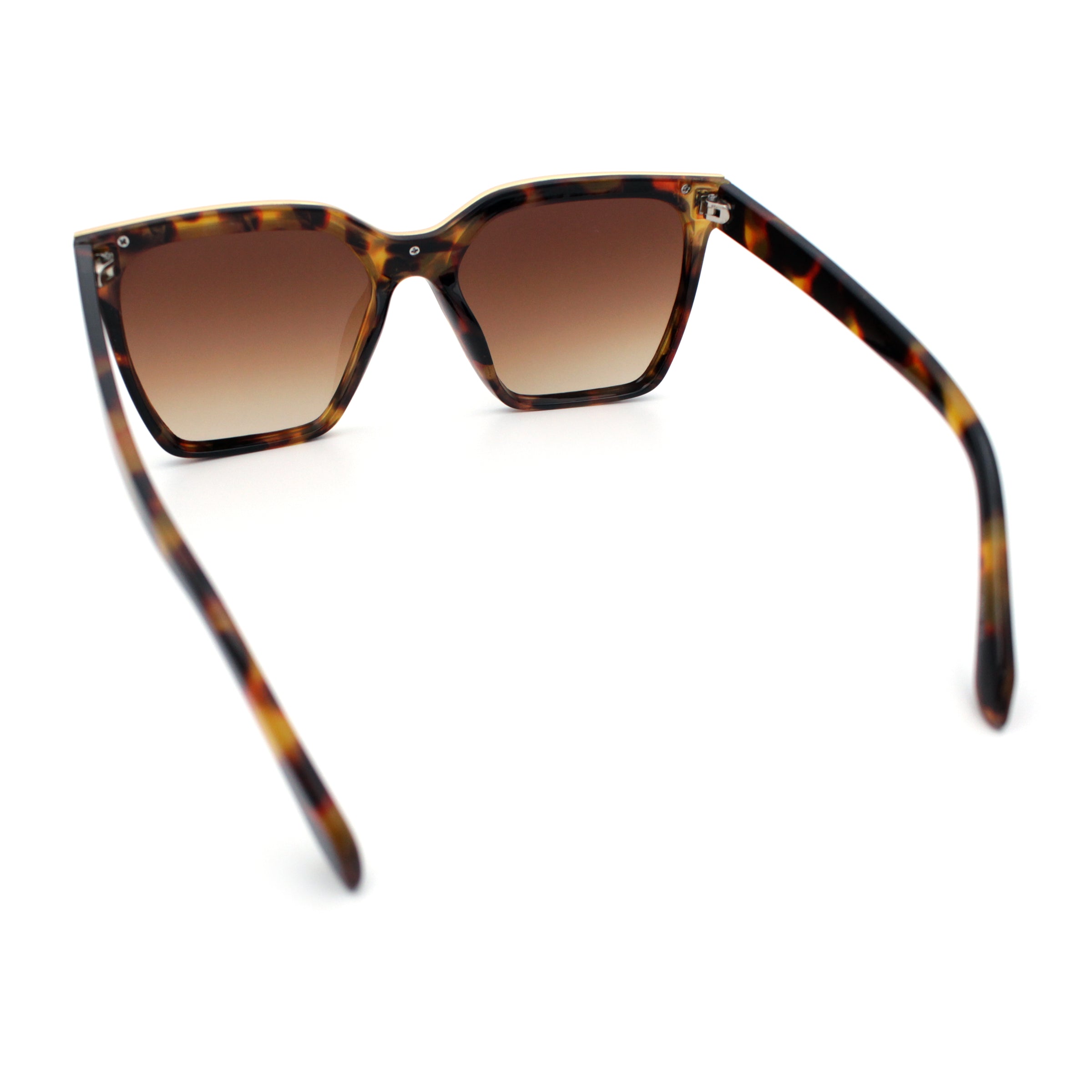 Womens Metal Brow Oversized High Temple Rectangle Plastic Sunglasses