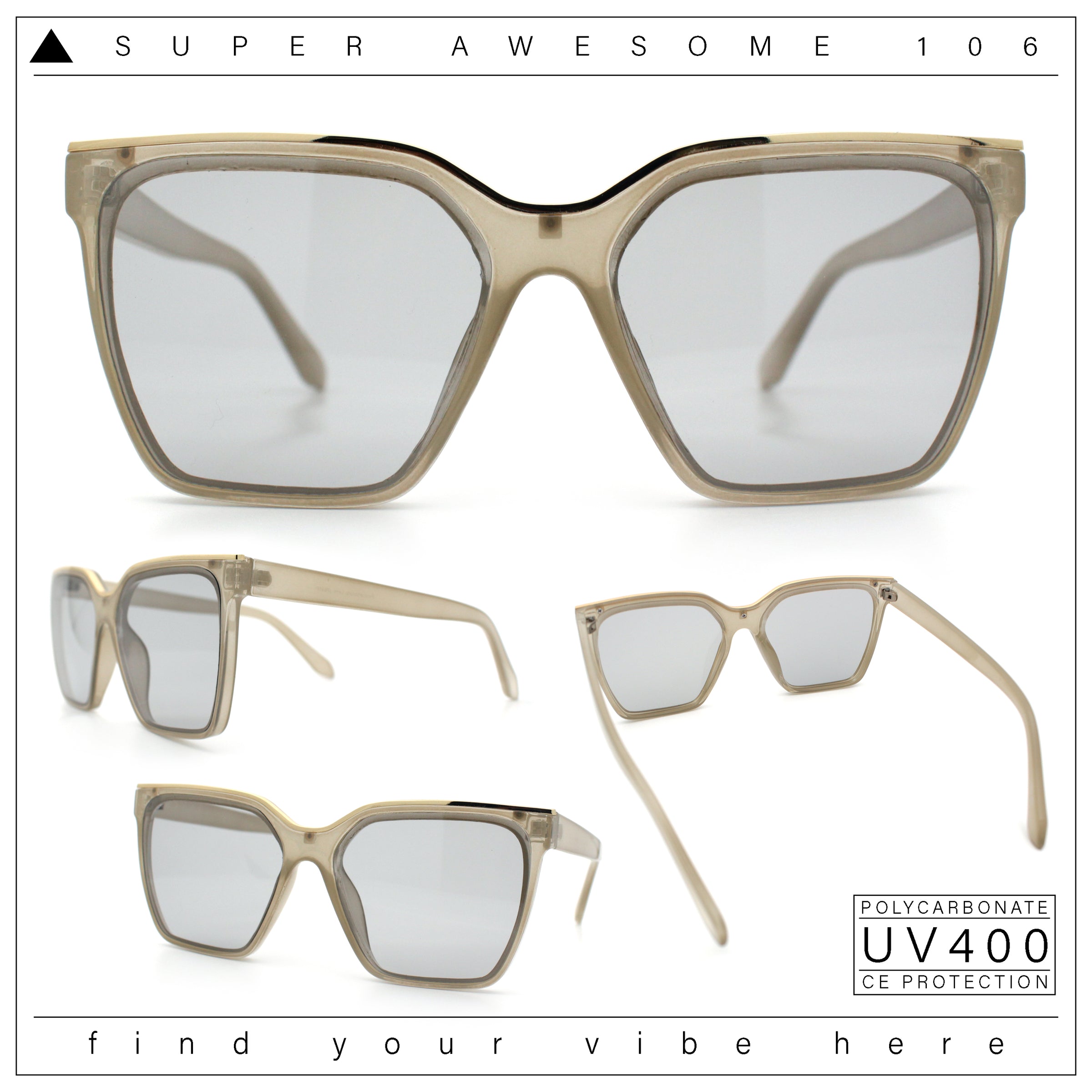 These oversized rectangular luxury designer sunglasses are a must-have for anyone looking to add a touch of 90s diva style to their wardrobe. With their stylish metal brow line trim and oversized rectangle silhouette, these shades are sure to turn heads. Made with a plastic based frame, reinforced metal hinges, and polycarbonate 100% UV400 lenses, these sunglasses are both stylish and durable. So go ahead and dare to be bold with these statement-making shades! (d222)
