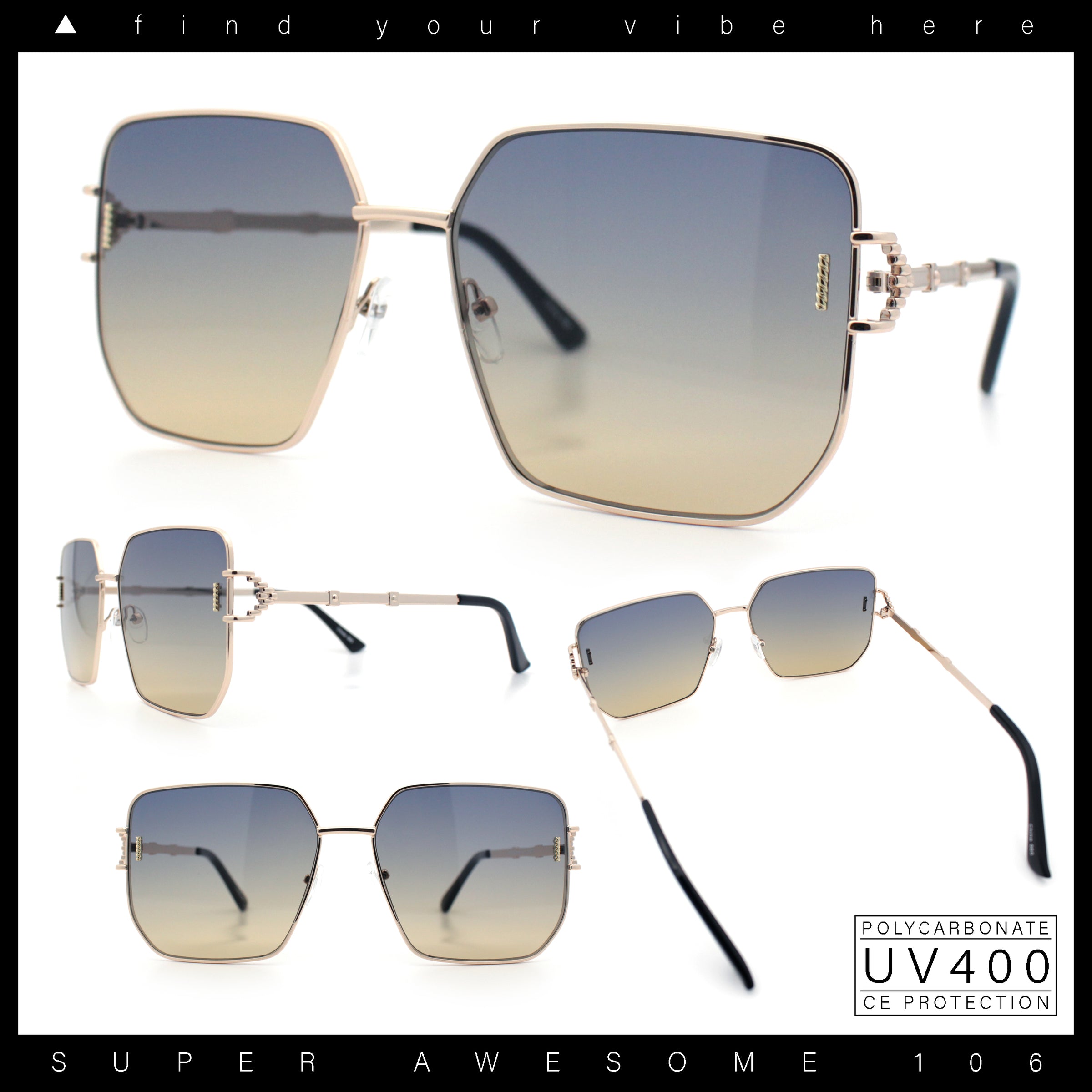 Stand out from the crowd with these modern luxury fashion style squared rectangular butterfly sunglasses. Super luxurious metal frame construction, metal geometric emblem arm hinges, and premium metal frame. Perfect for a weekend outing with home girls! Let your inner diva shine with these timeless shades! (d258)