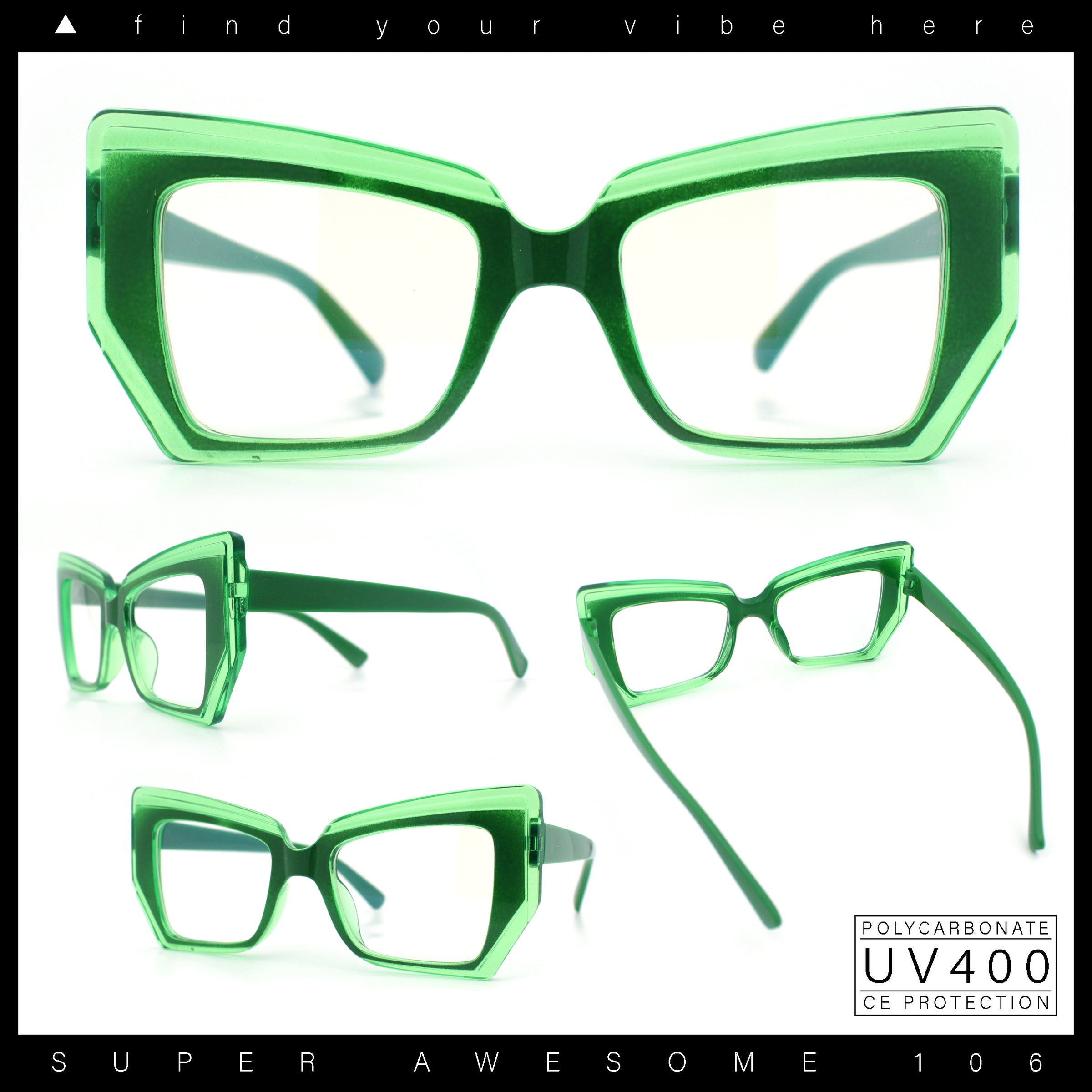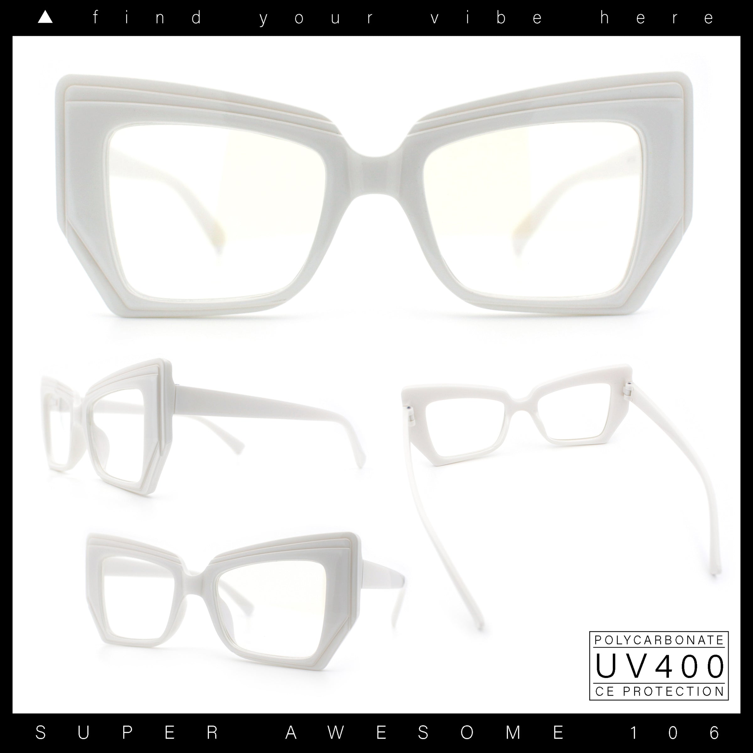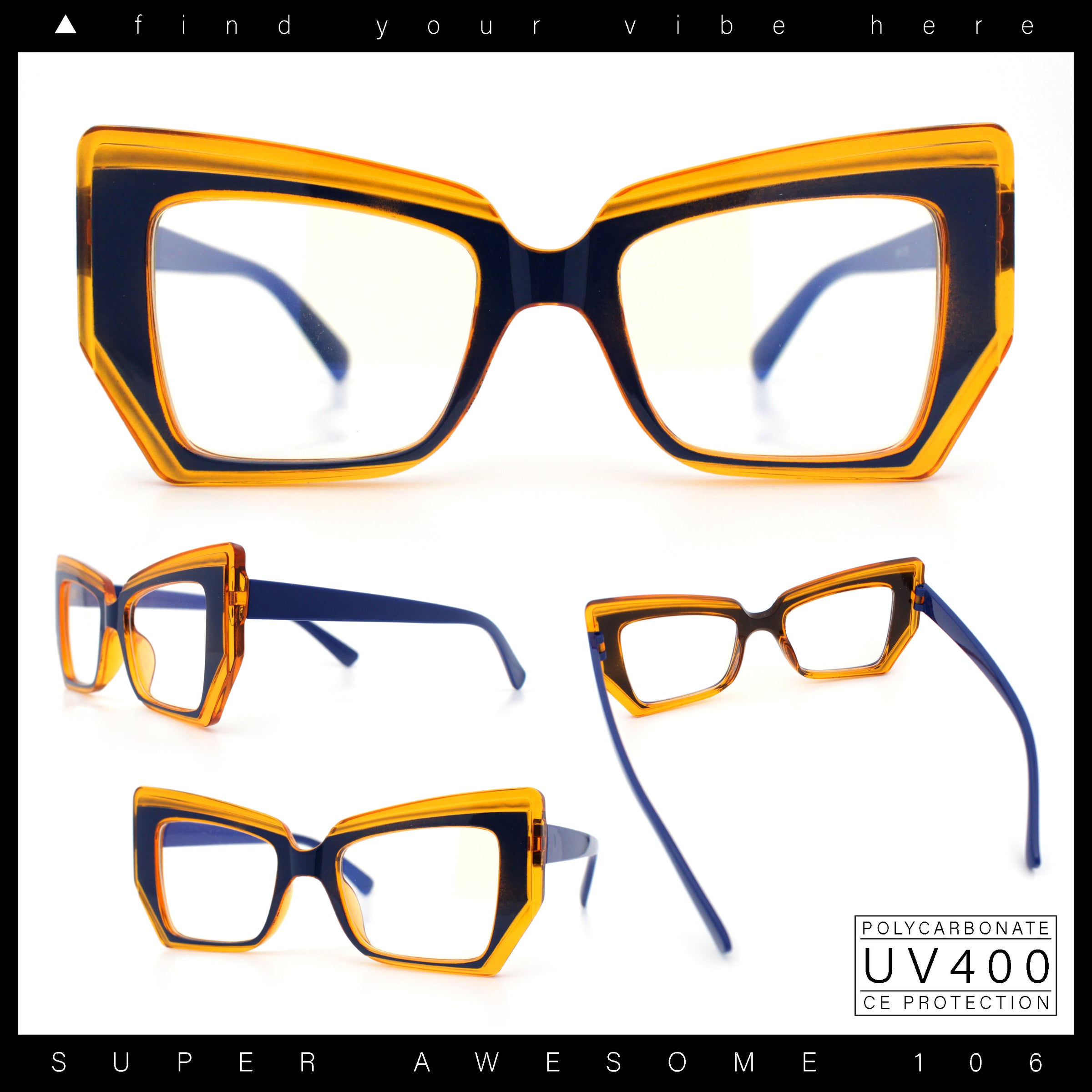 These iconic oversized pinup style plastic rim cat eye silhouette clear lens fashion glasses are perfect for complementing any casual everyday chic look. The trendy generous sizing and large coverage make them super versatile. They are made with a metal based frame, metal hinges, and UV400 polycarbonate lenses. (d256)