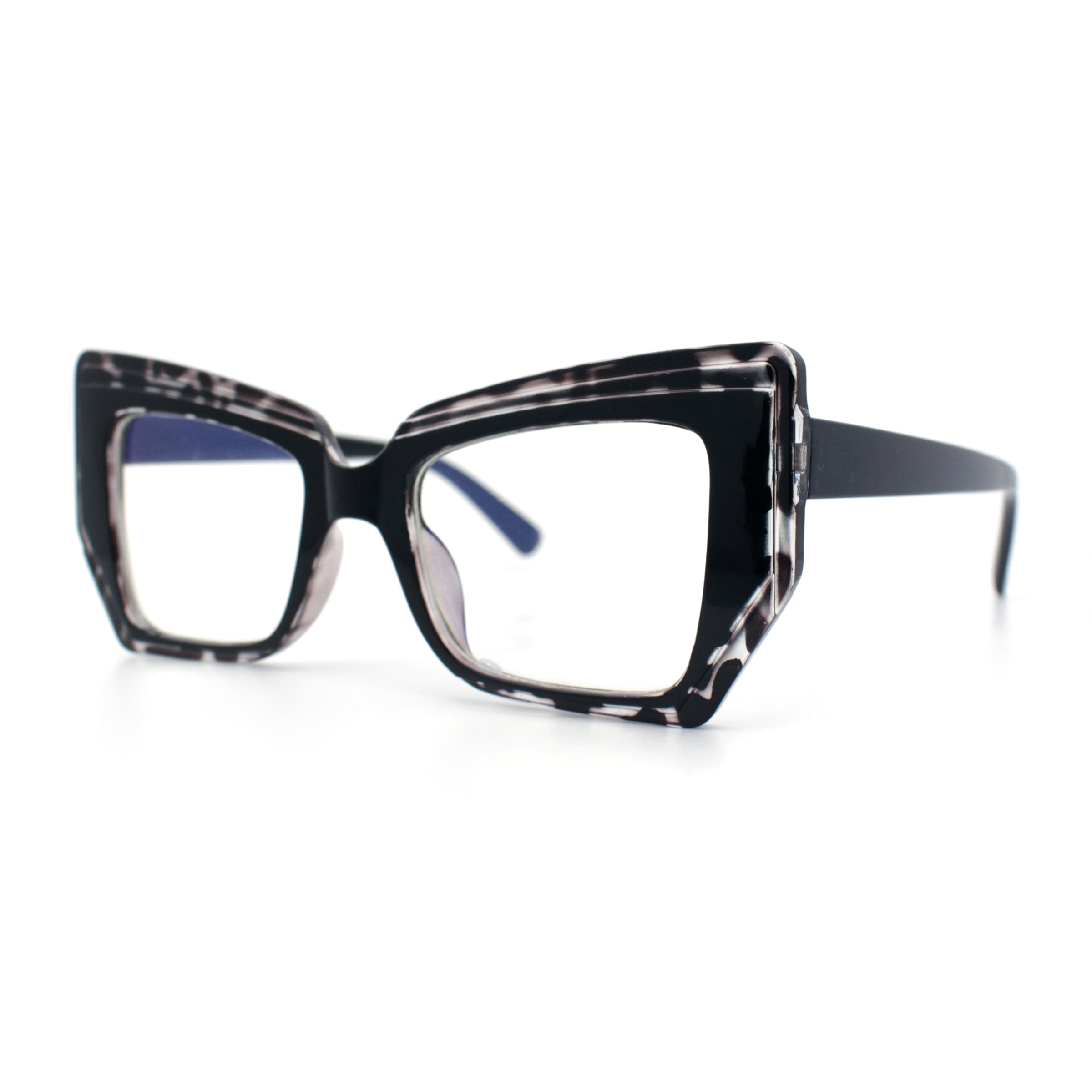 Womens Oversized Thick Squared Cat Eye Clear Lens Fashion Eyeglasses