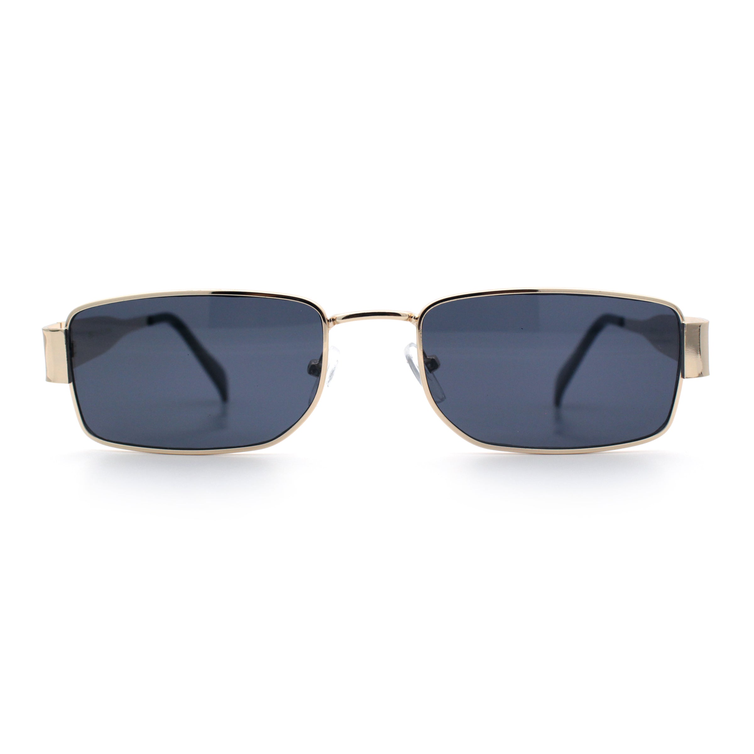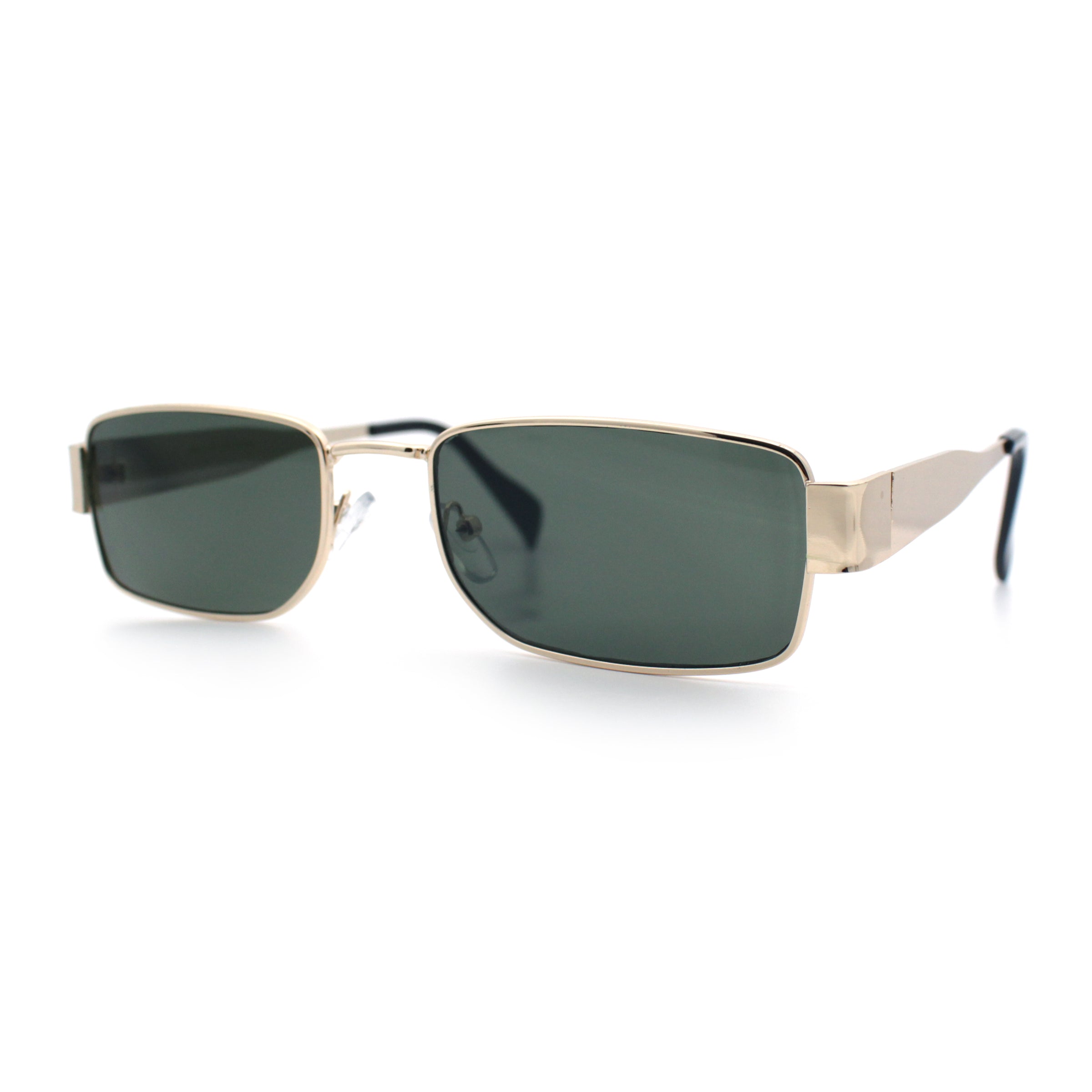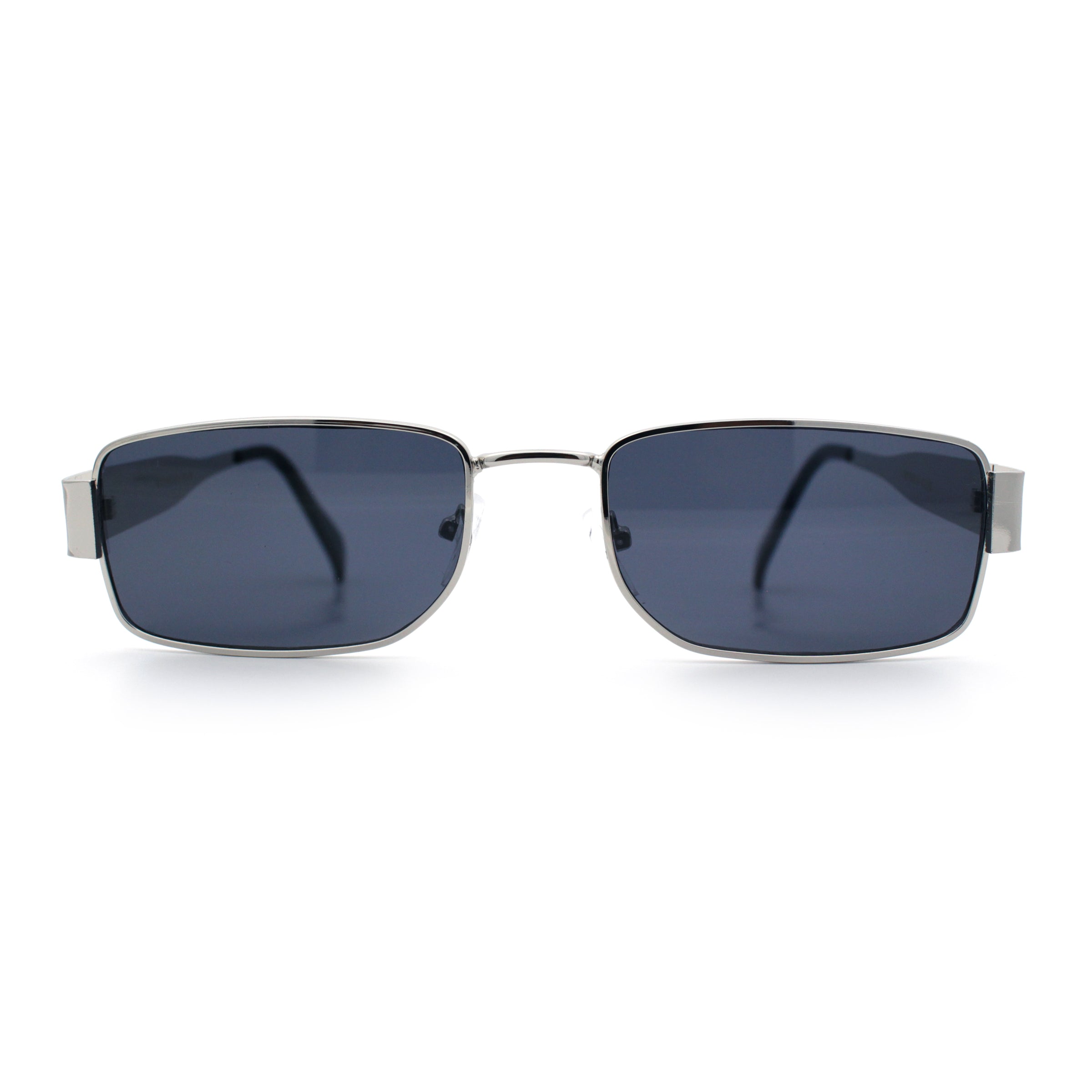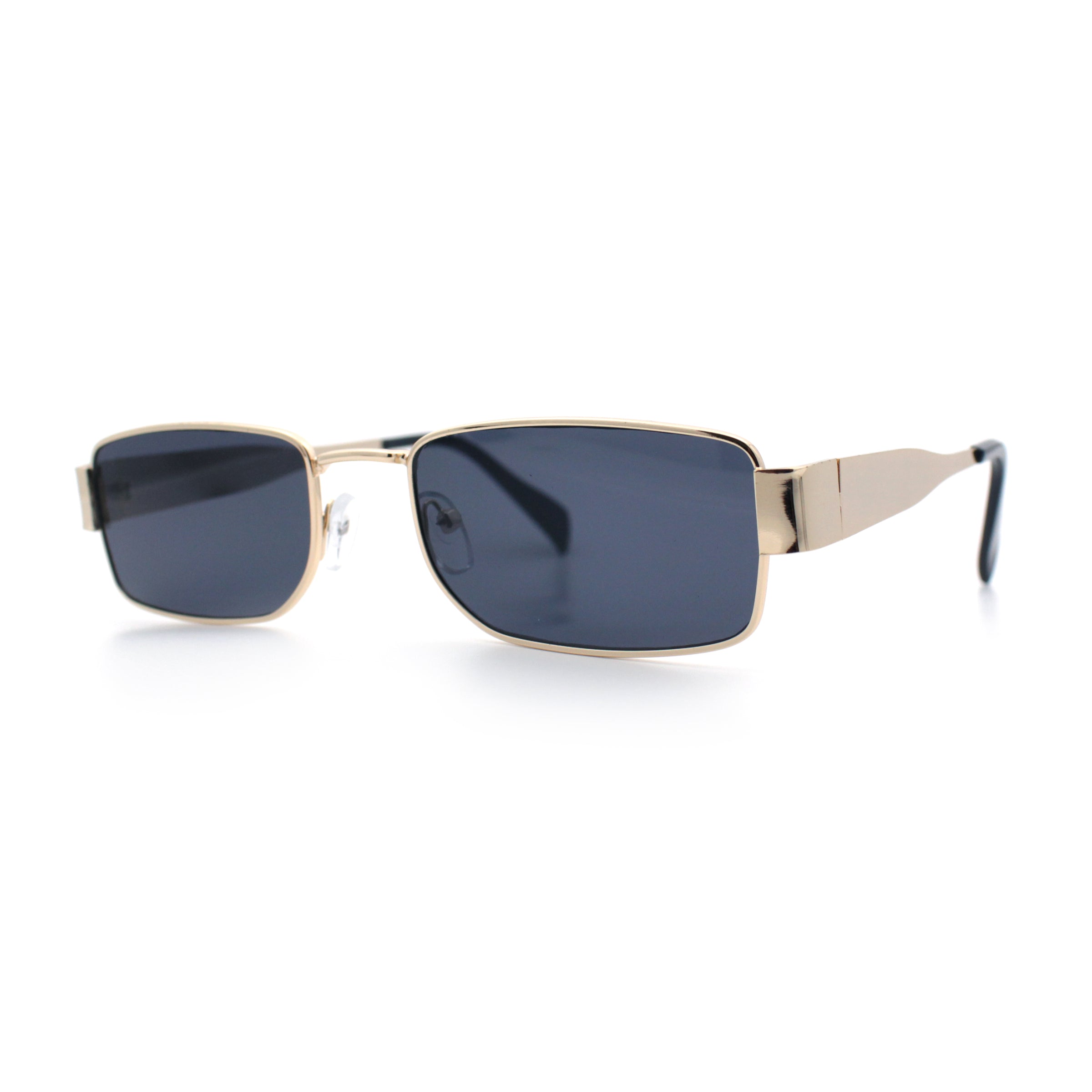 Mens Classy Narrow Rectangle Metal Rim Hustler Fashion Sunglasses