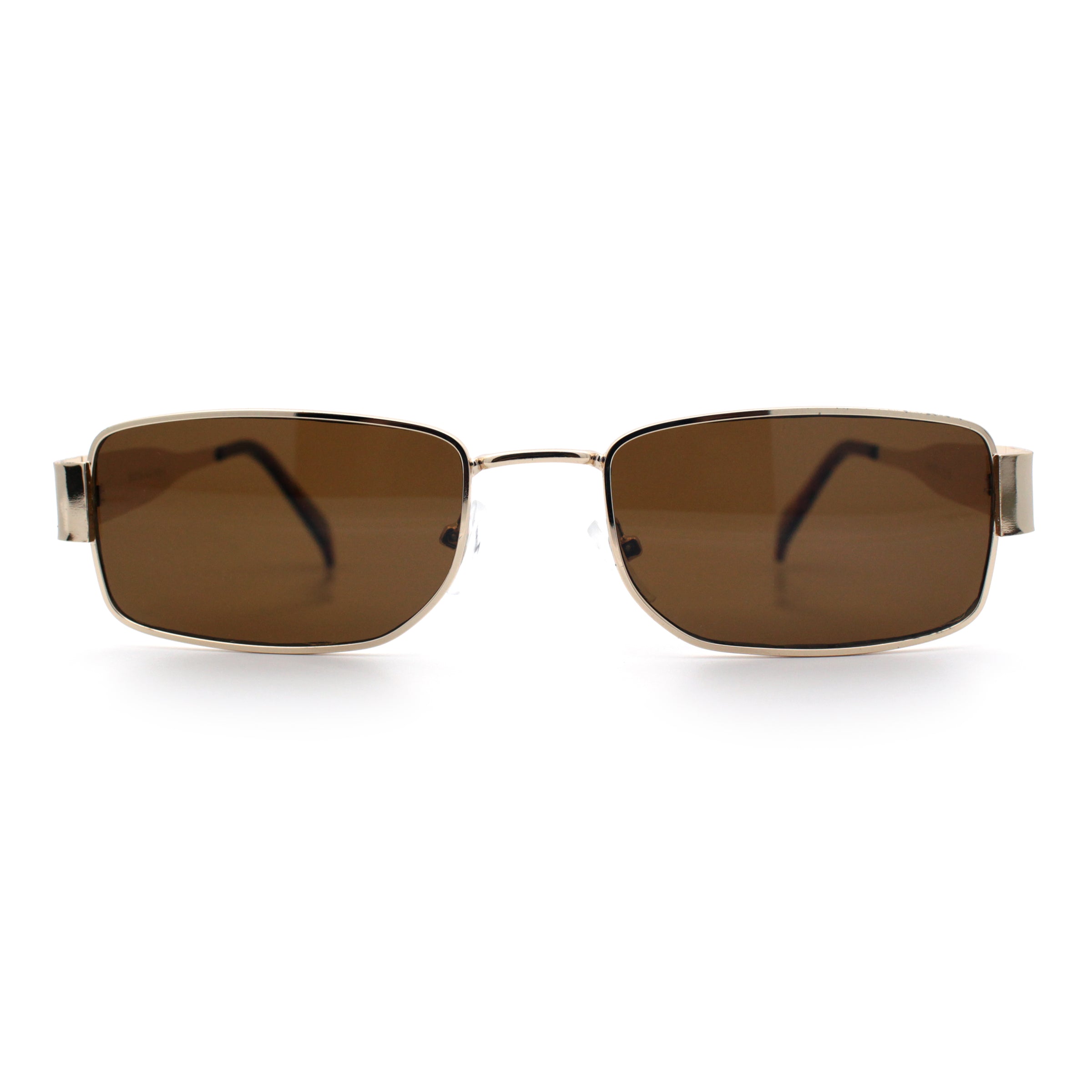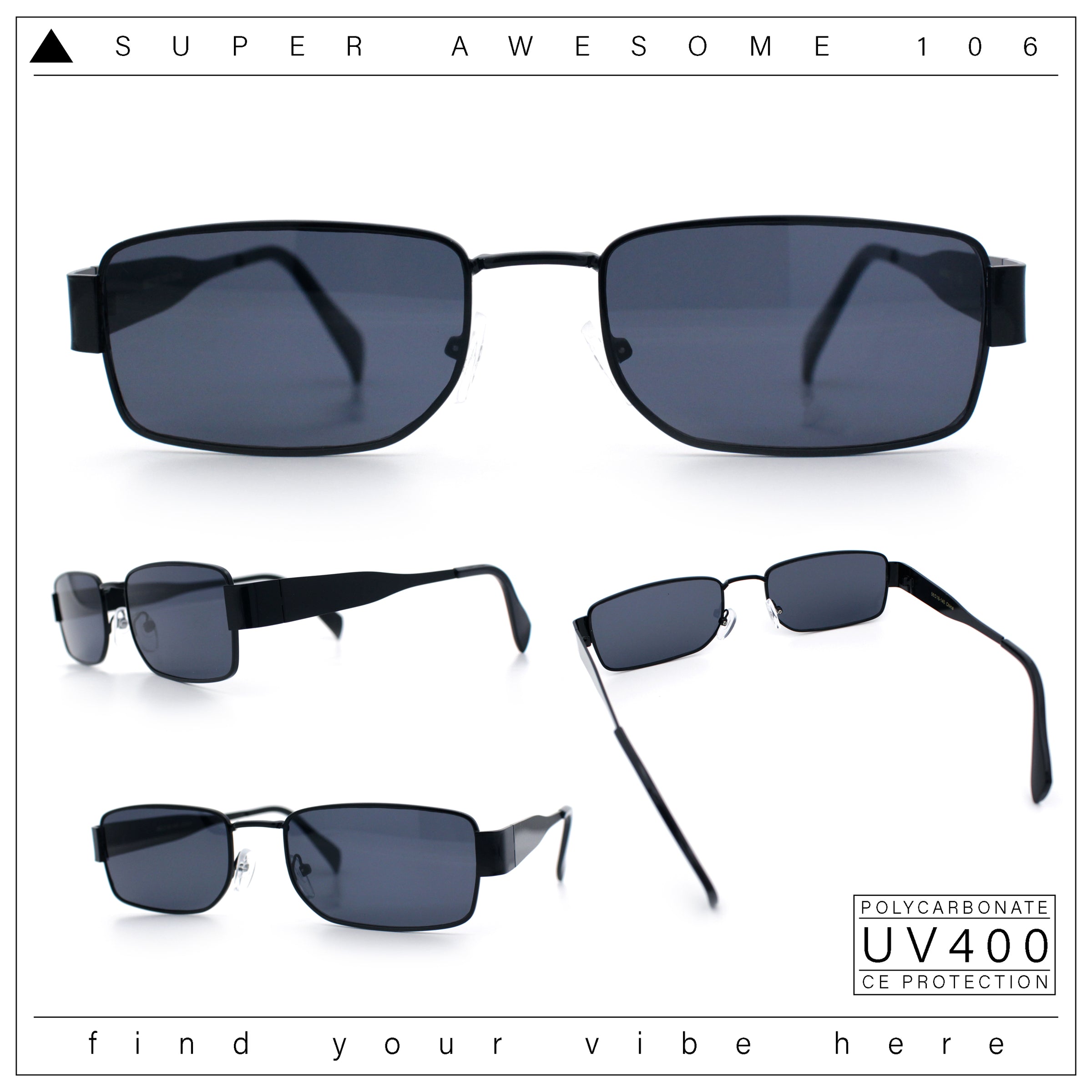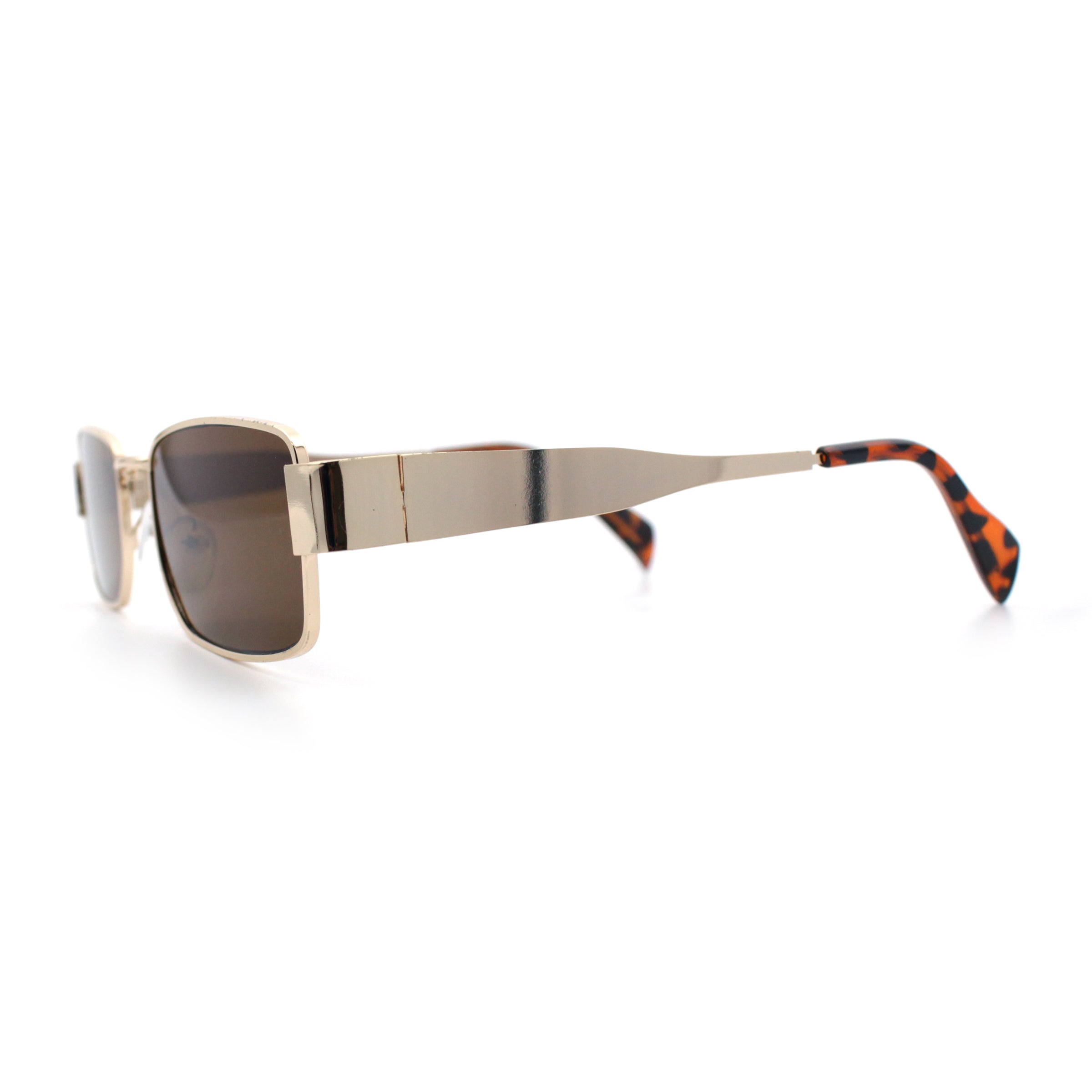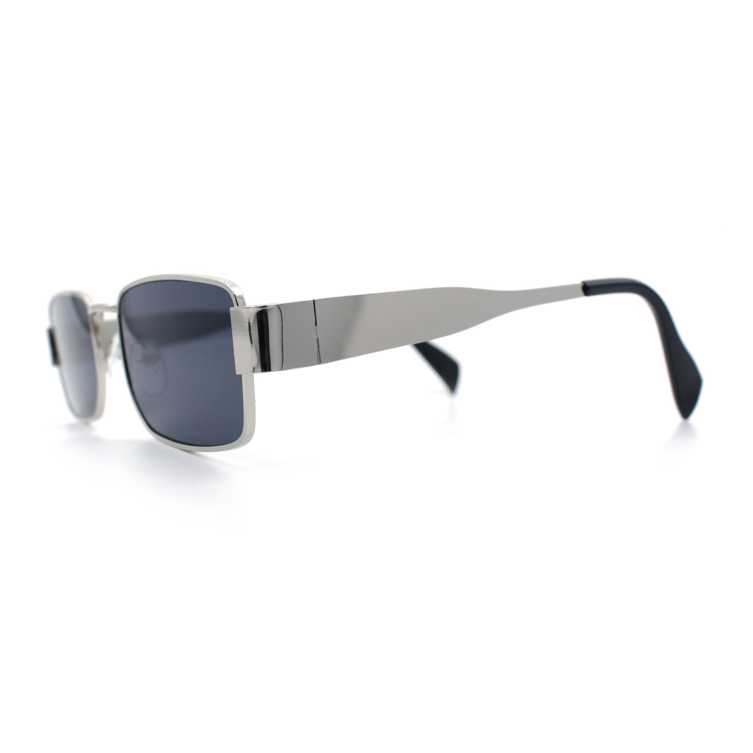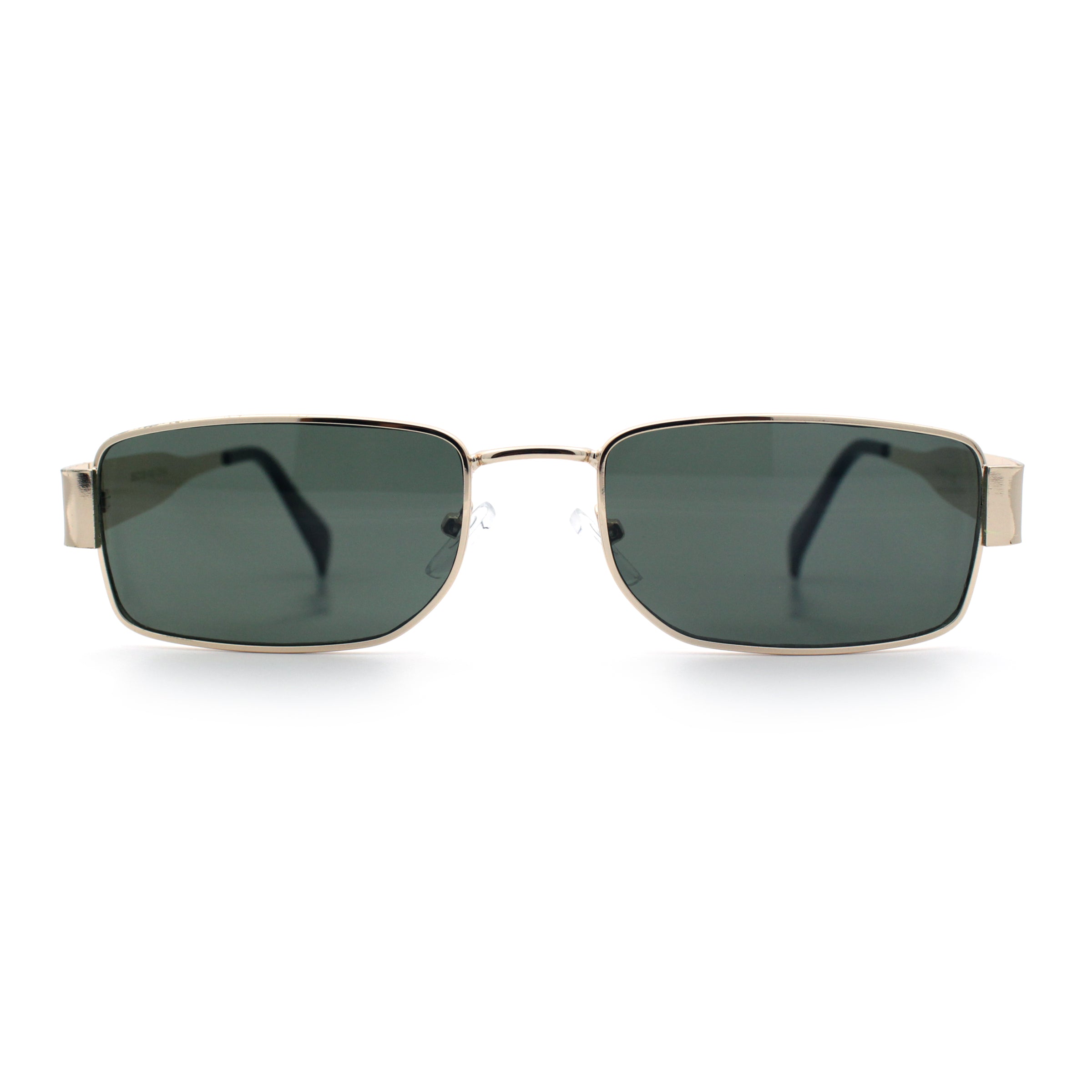 Mens Classy Narrow Rectangle Metal Rim Hustler Fashion Sunglasses