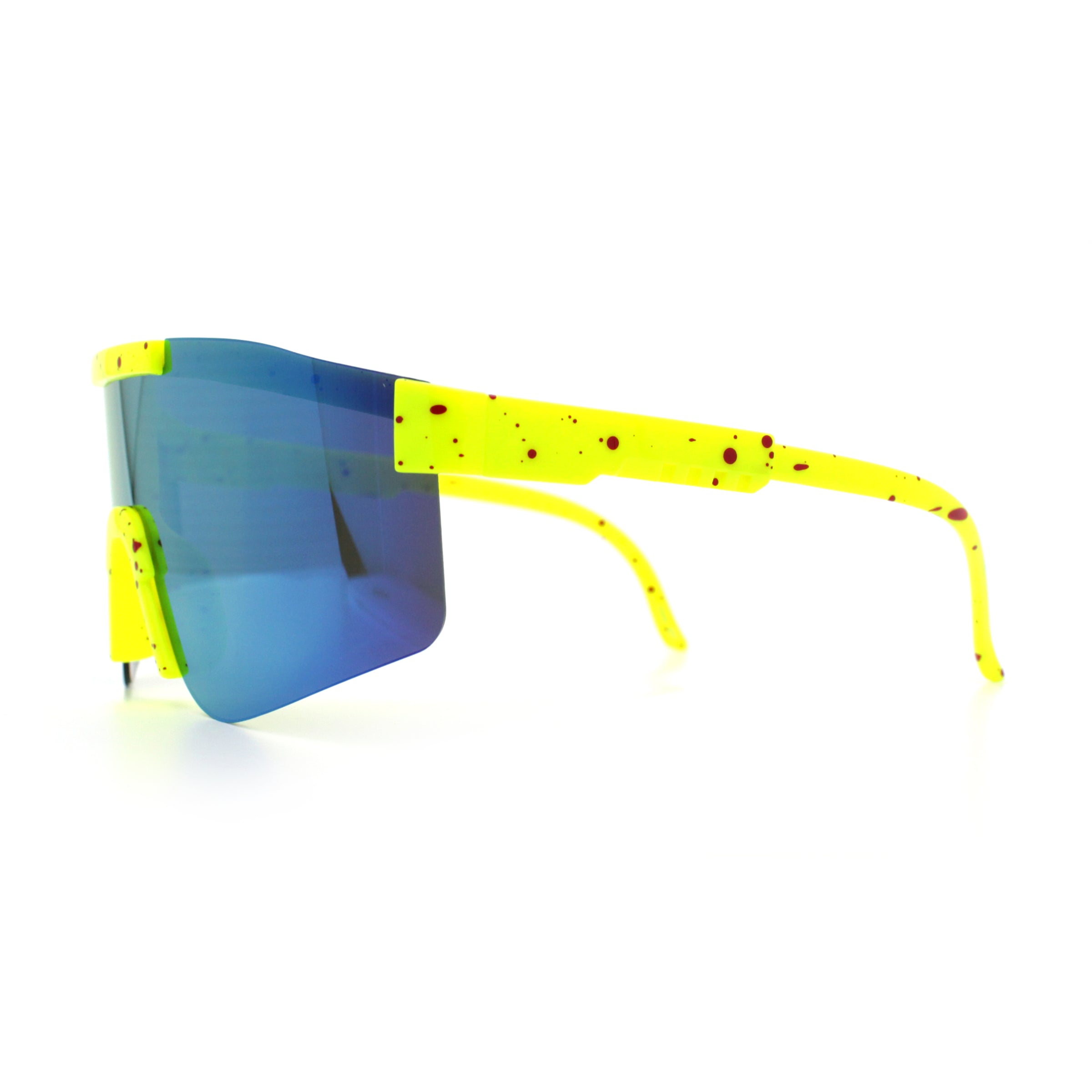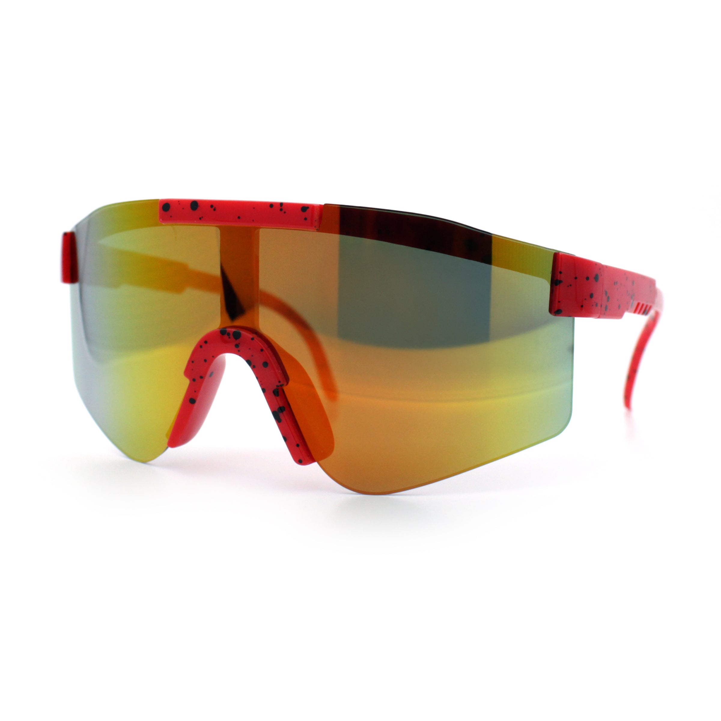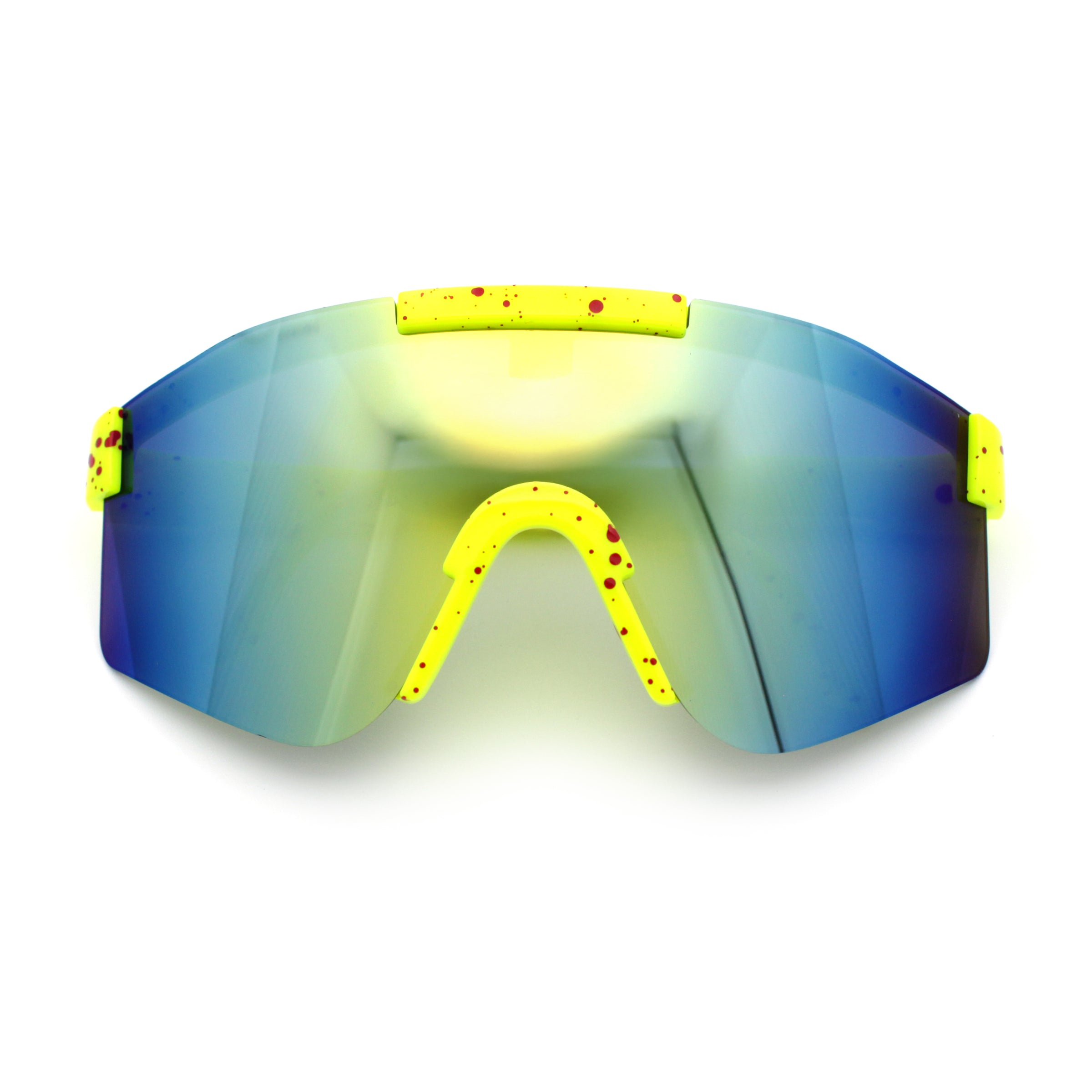 Looking for a more grown-up look for your little boy? Look no further than these trendy sport shield sunglasses! With their retro-inspired style, these shades will make your child look like a true MTB rider. And because they're made with color mirror 100% UV400 polycarbonate lenses, they'll provide your child with the protection they need from the sun's harmful rays. (d184)