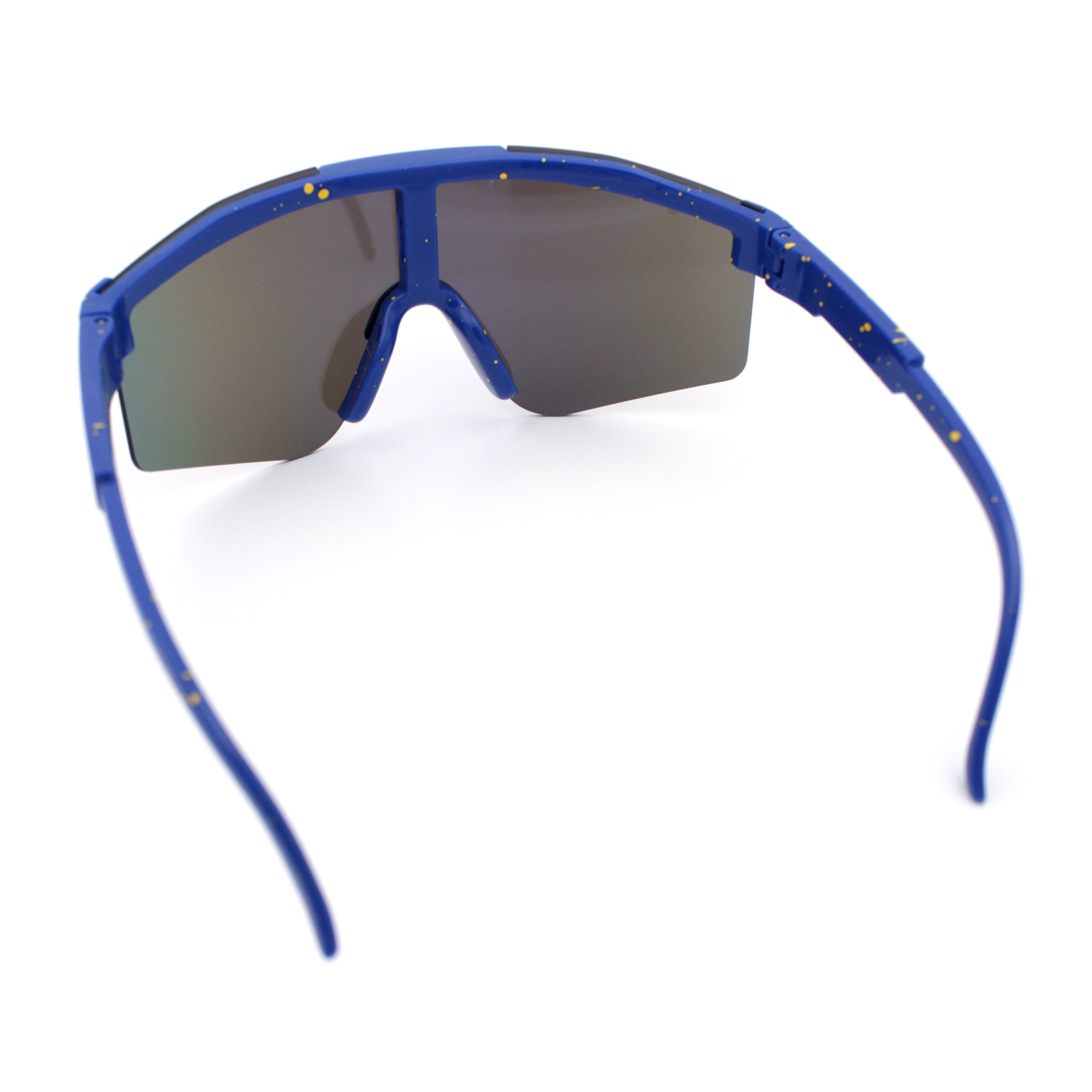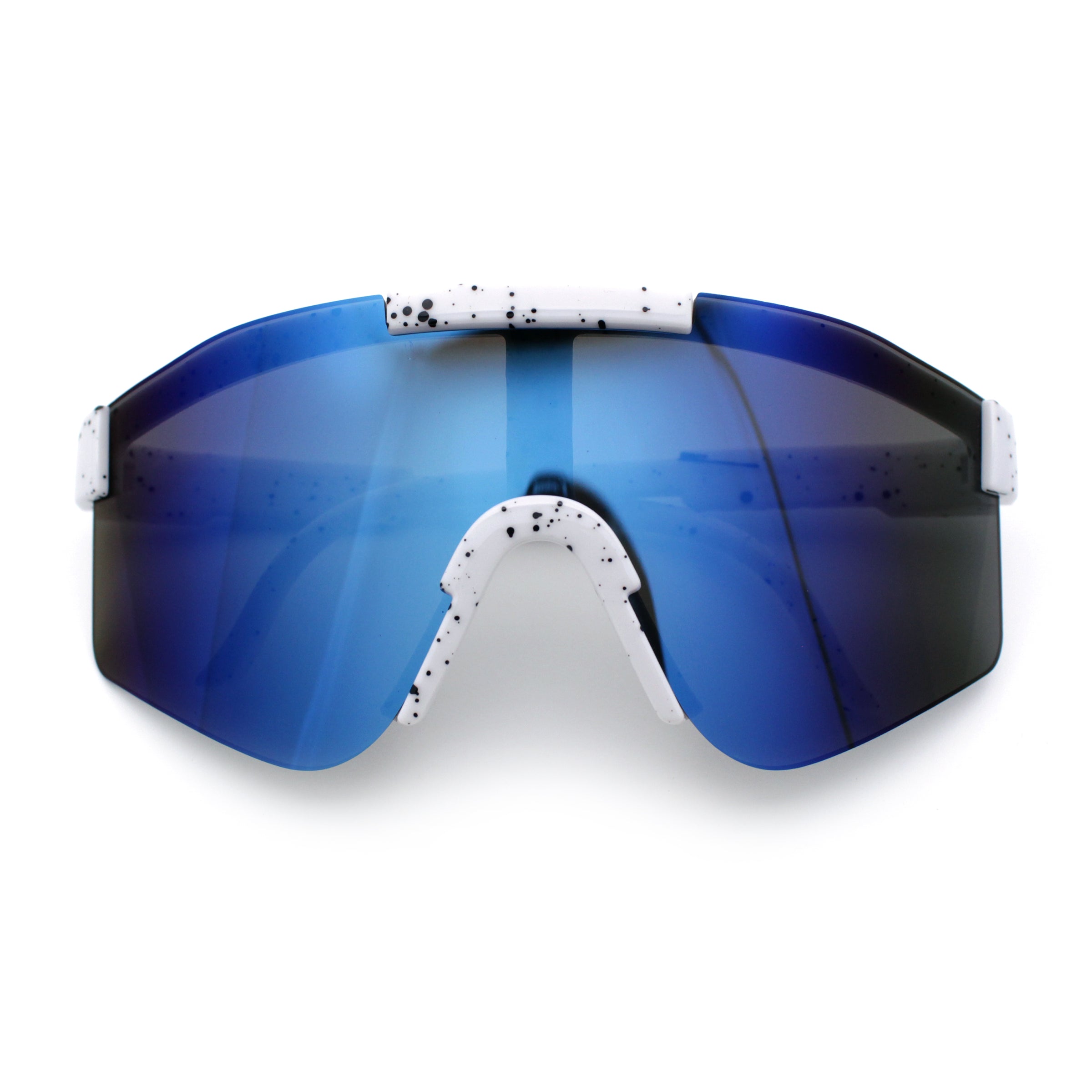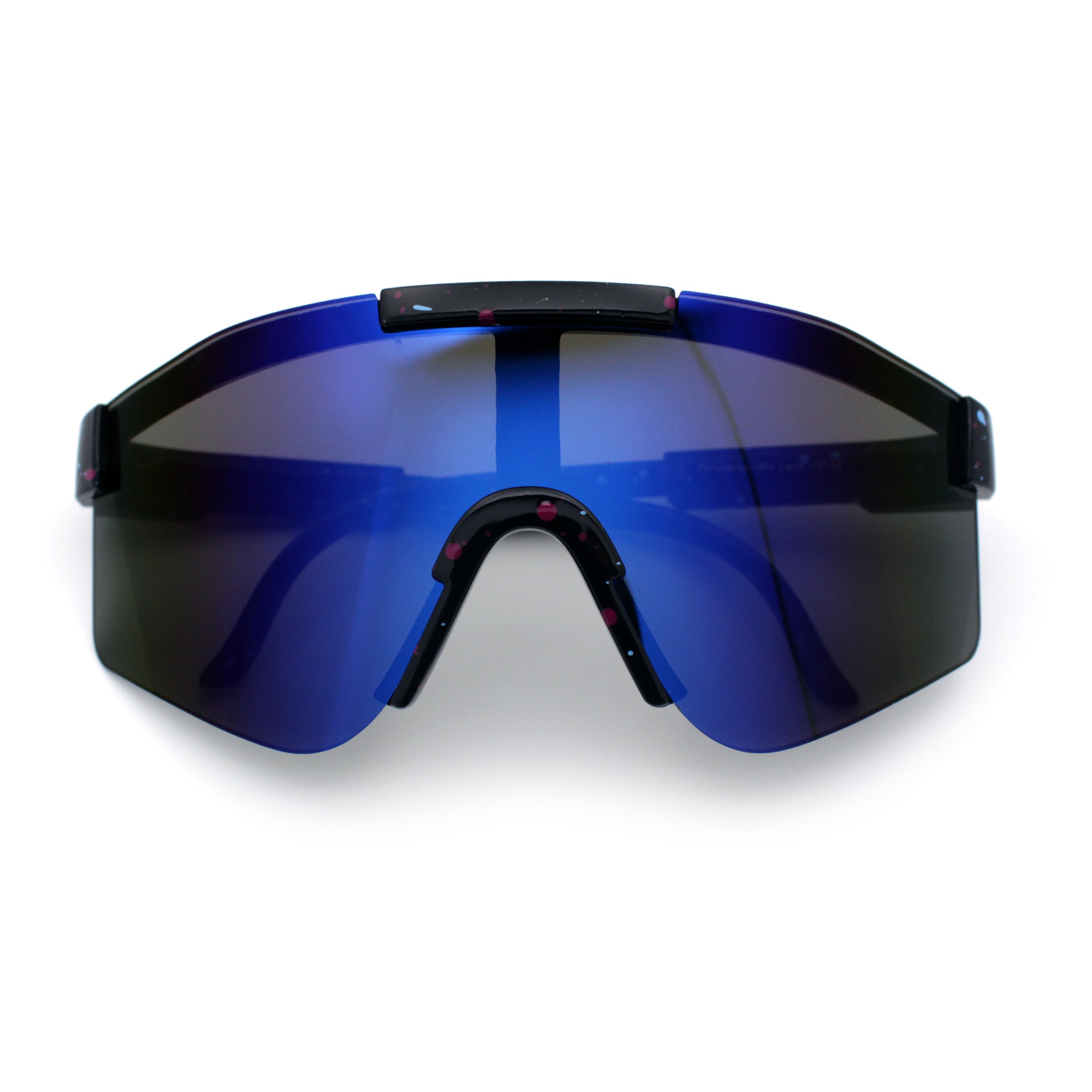 Looking for a more grown-up look for your little boy? Look no further than these trendy sport shield sunglasses! With their retro-inspired style, these shades will make your child look like a true MTB rider. And because they're made with color mirror 100% UV400 polycarbonate lenses, they'll provide your child with the protection they need from the sun's harmful rays. (d184)