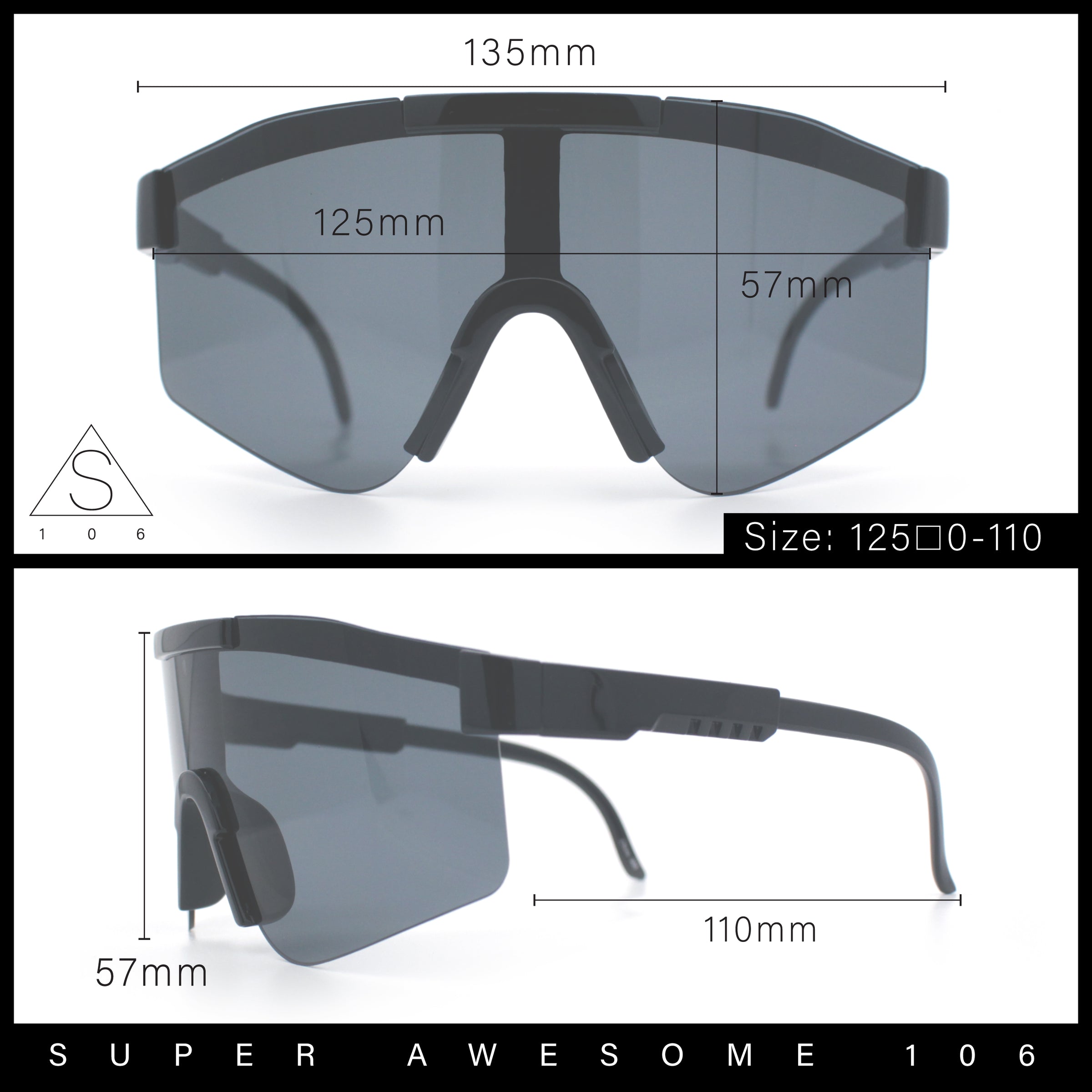 • Lens Width: 125mm / Lens Height: 57mm / Bridge Width: 0mm / Temple Length: 110mm