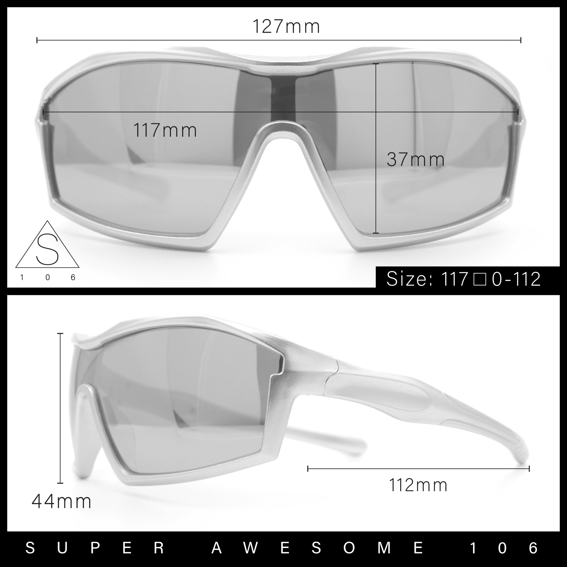 • Lens Width: 117mm / Lens Height: 37mm / Bridge Width: 0mm / Temple Length: 112mm