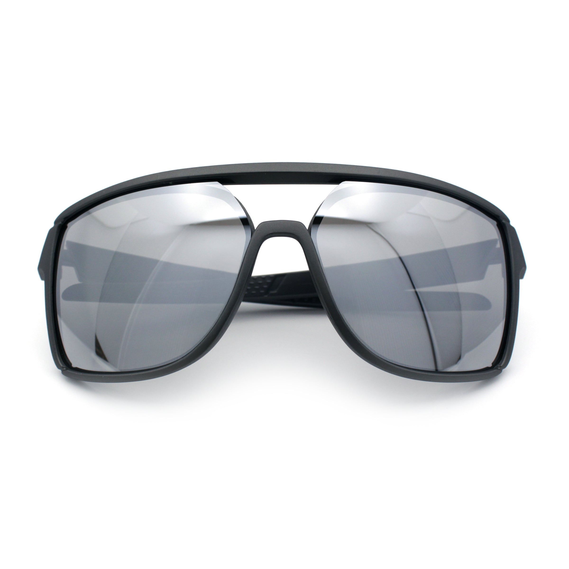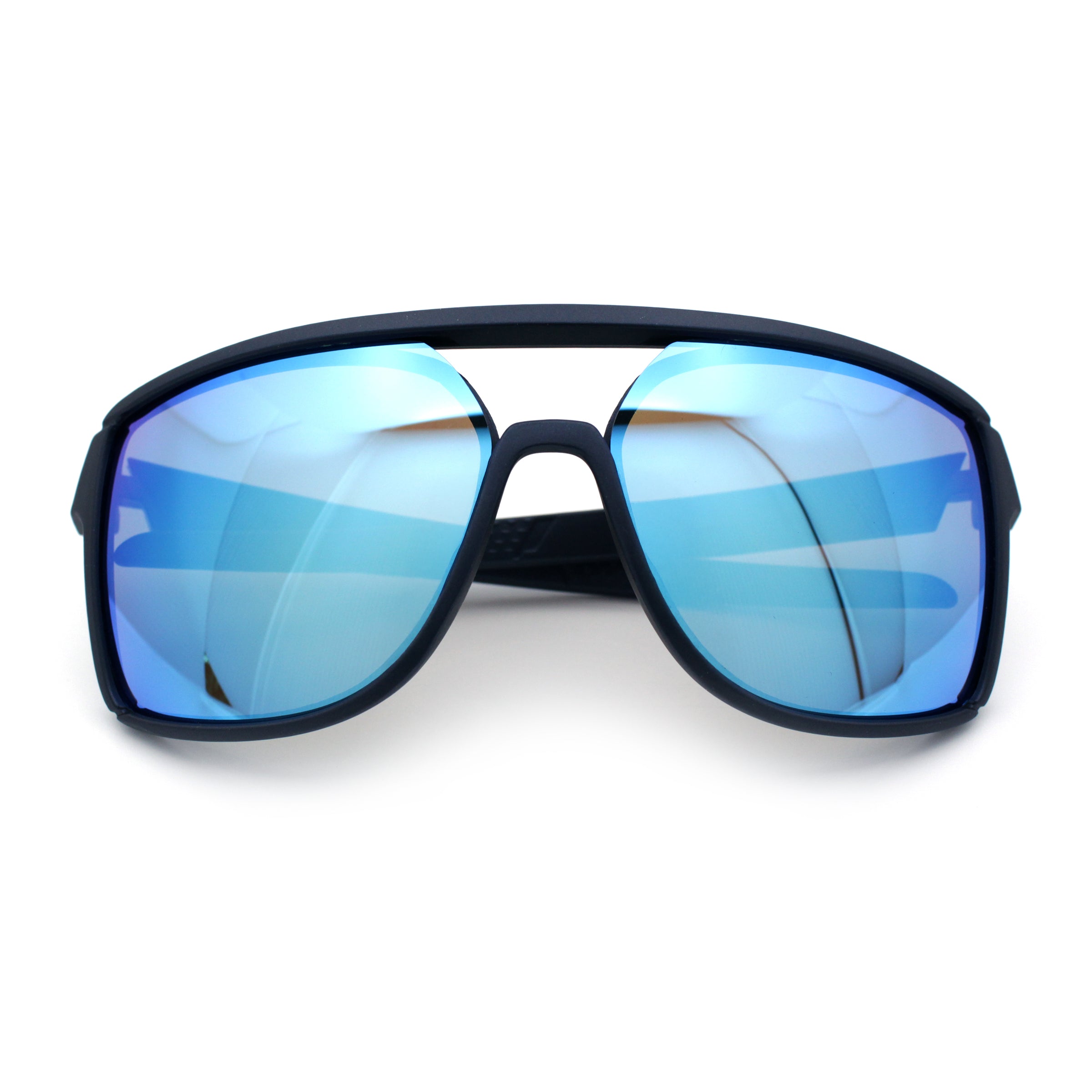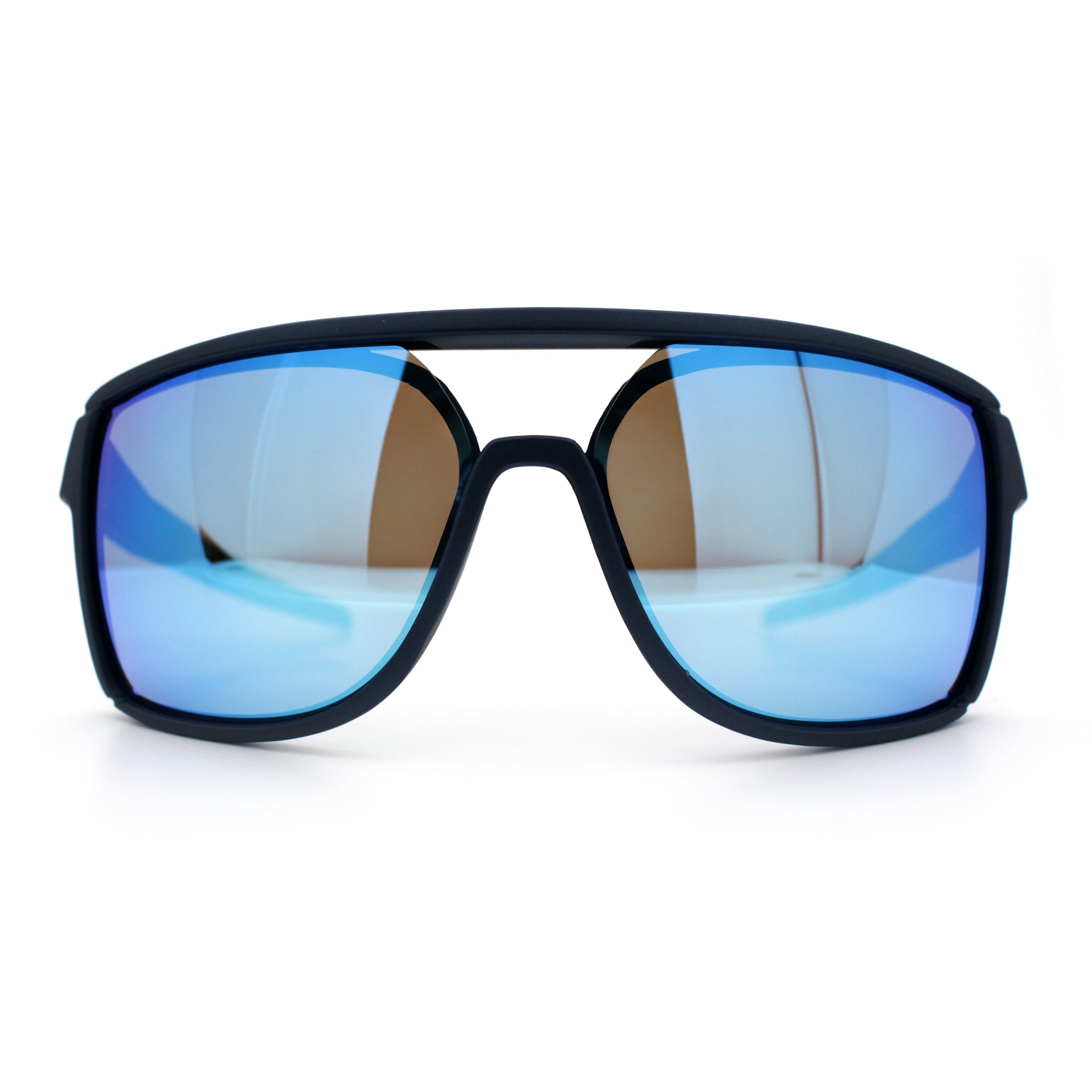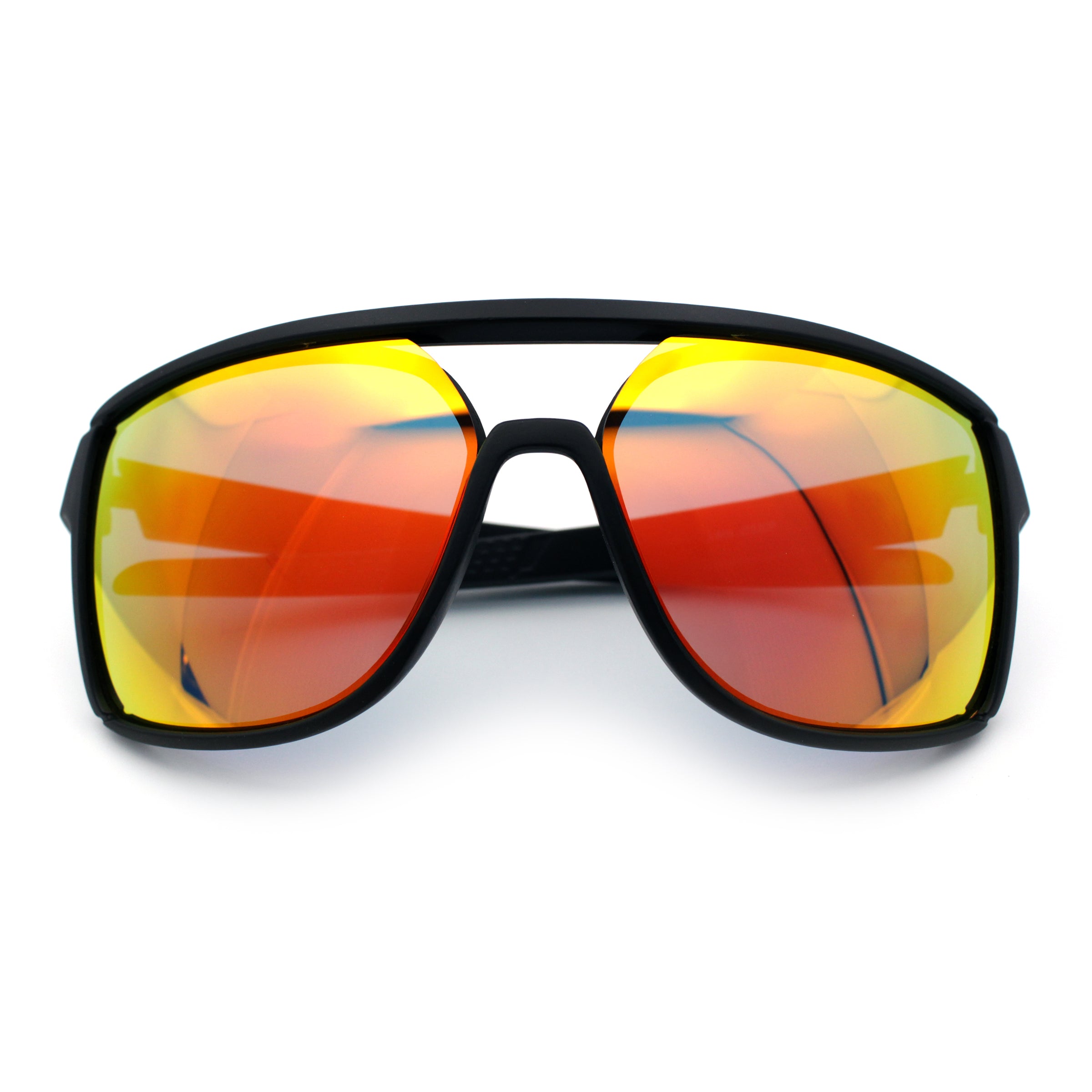 Mens Wrap Arm Oversized Sport Rectangle Mirror Lens Plastic Sunglasses