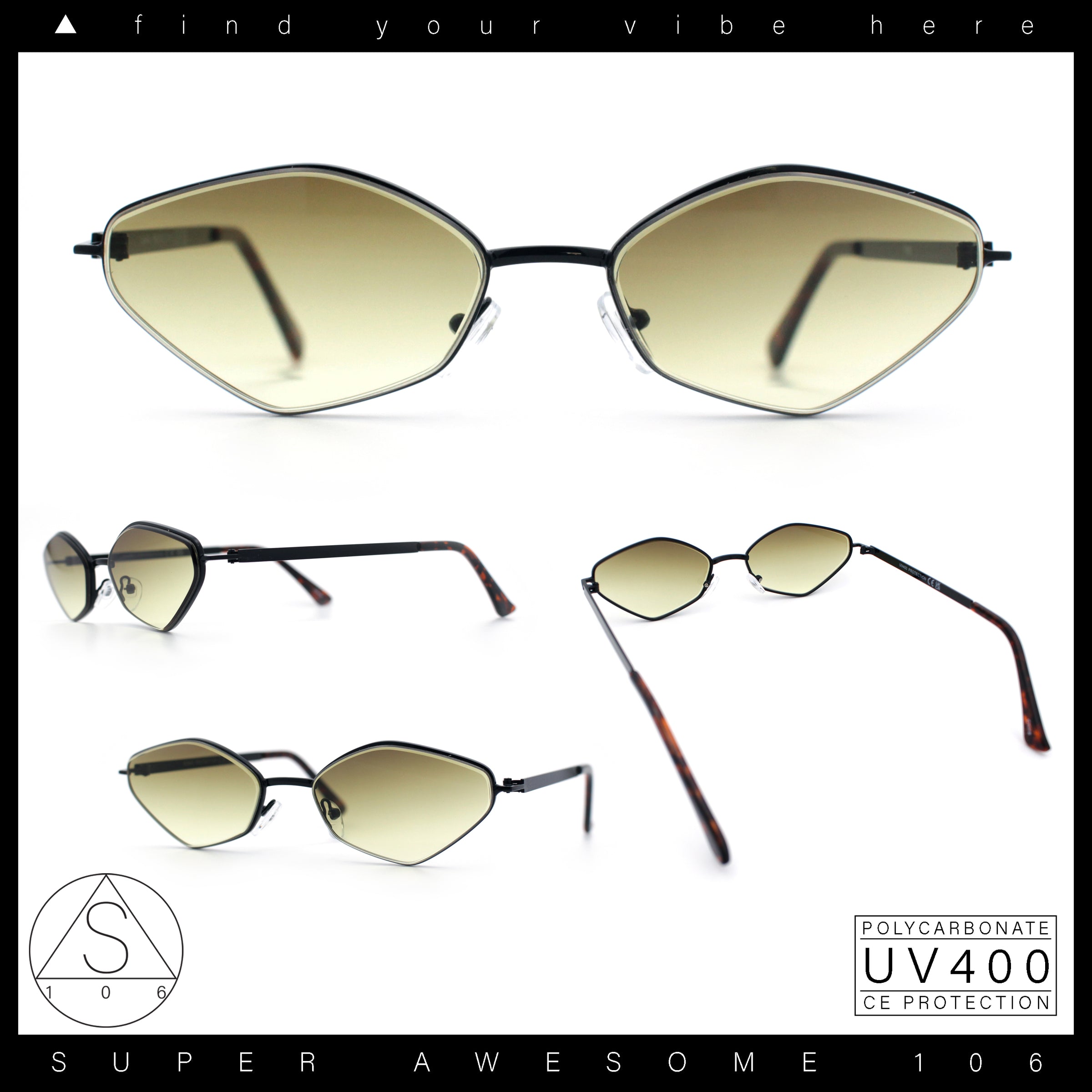 A definite trending item, these micro sunglasses feature a retro vintage style with a distinctive hustler diamond shape. The mid-temple frame boasts a fancy bevel and is fitted with 100% UV400 polycarbonate lenses. Reinforced metal hinges ensure enhanced durability. (d267)