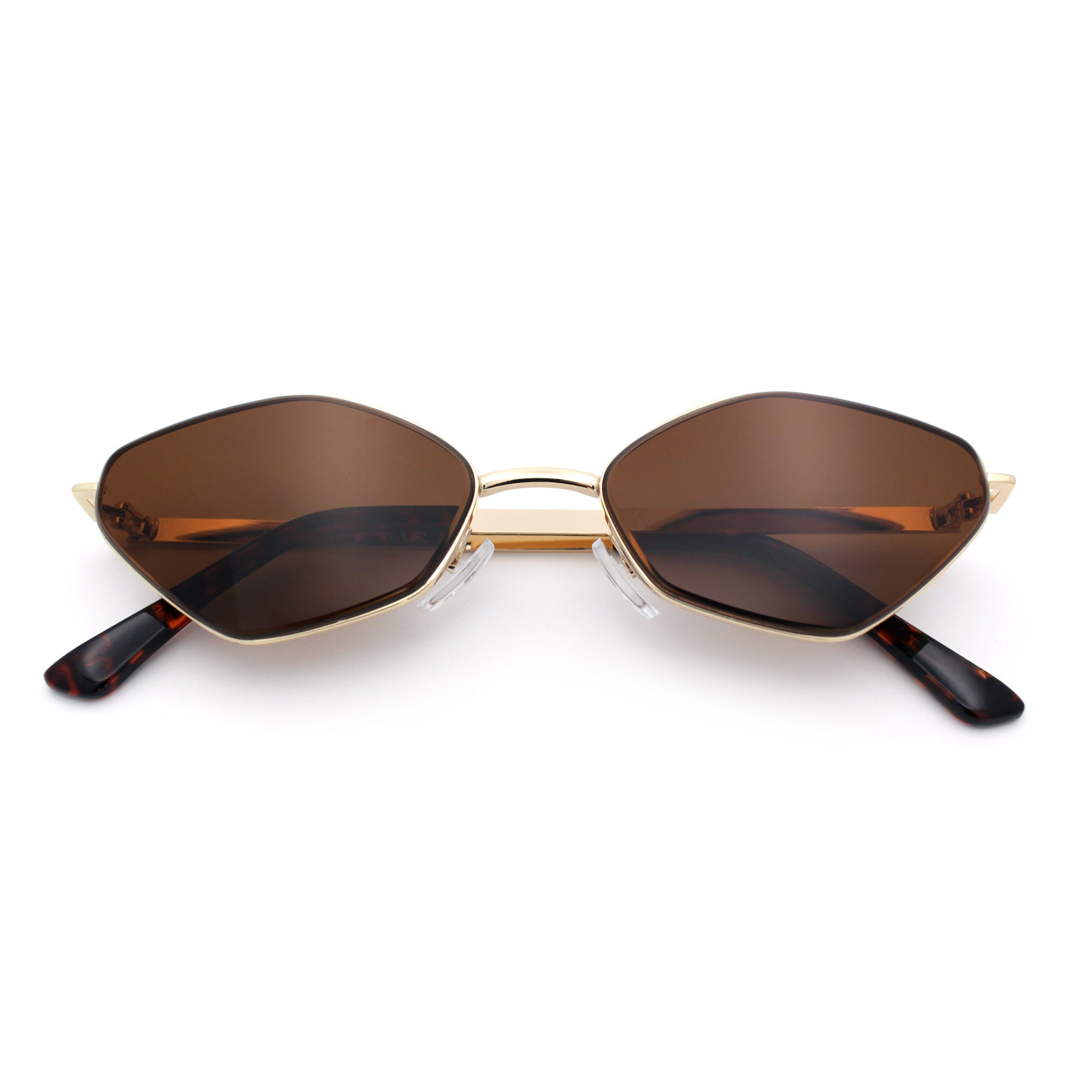 Diamond Shape Hustler Fashion Trendy Small Lens Metal Rim Sunglasses